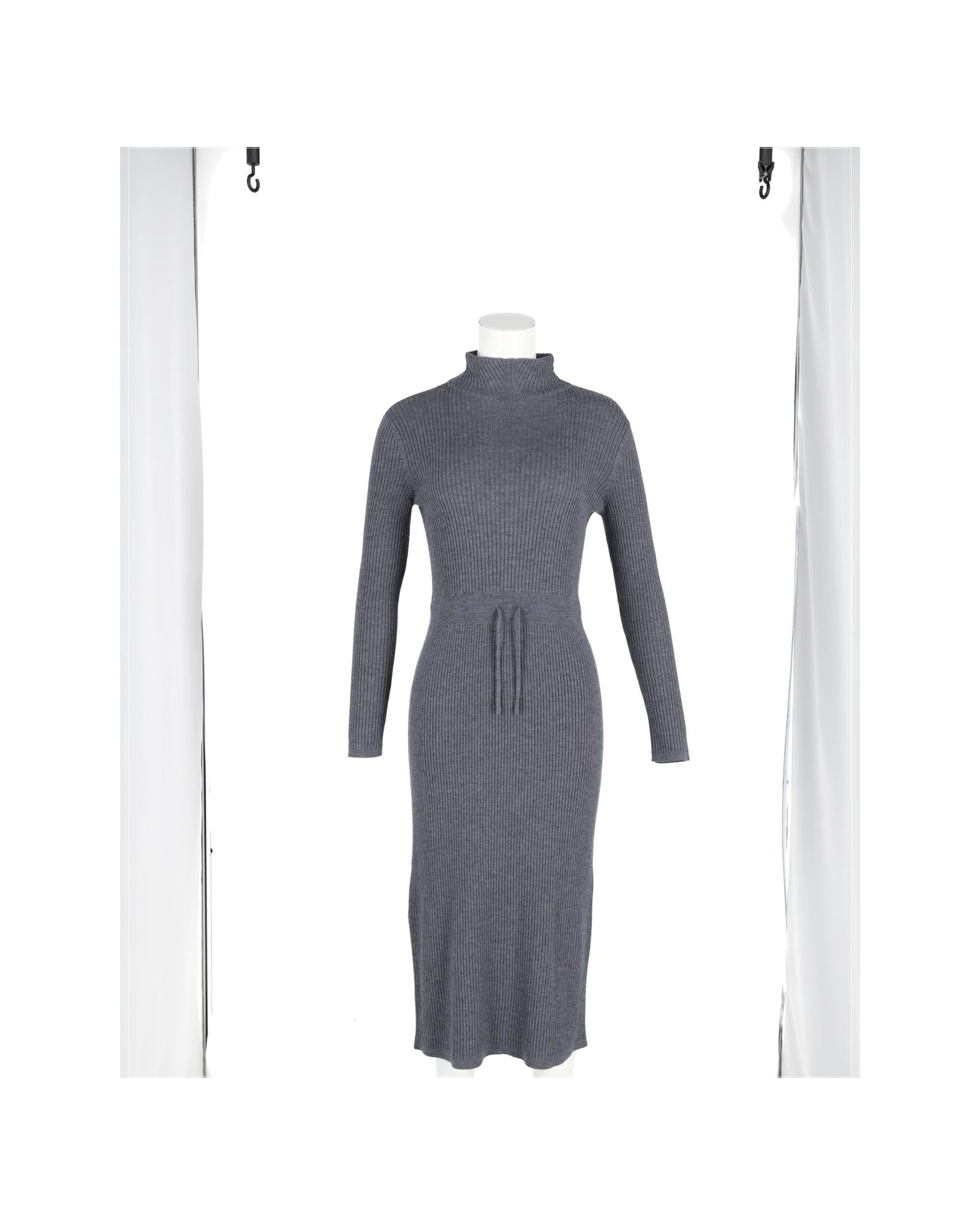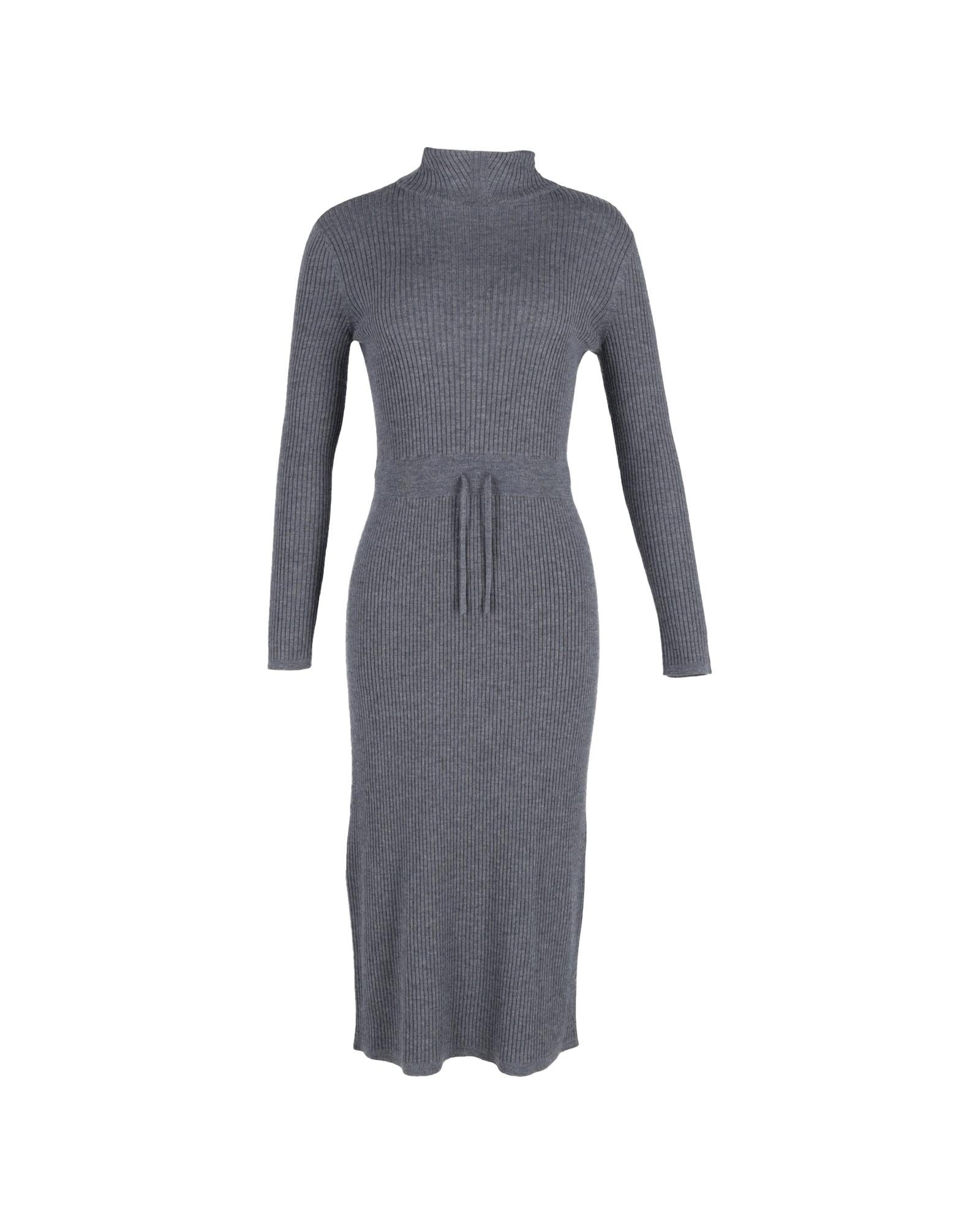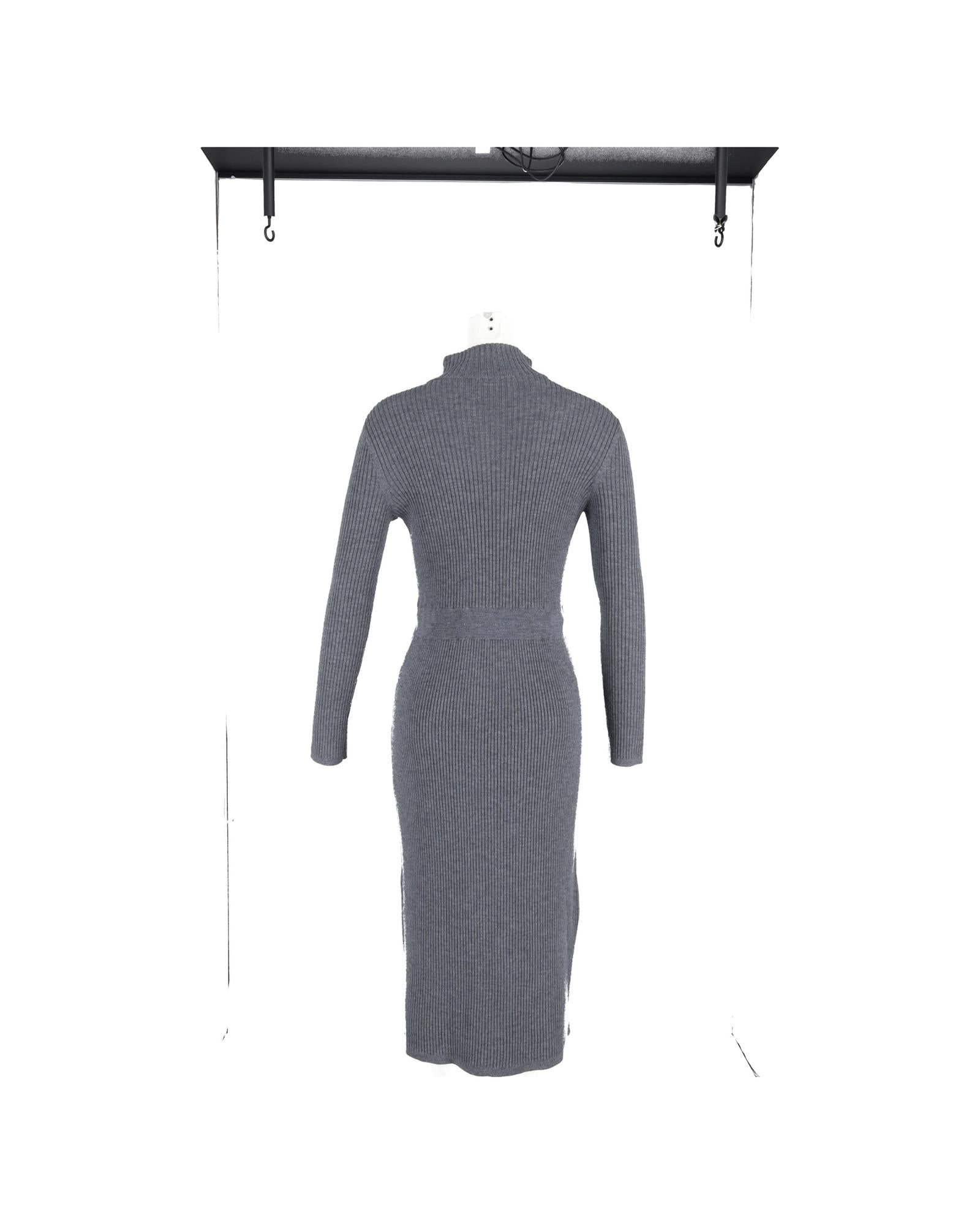 Pre-owned Ribbed Knit Mock Neck Midi Dress