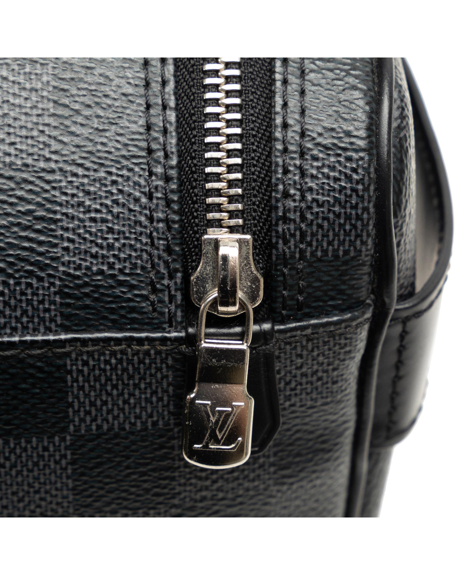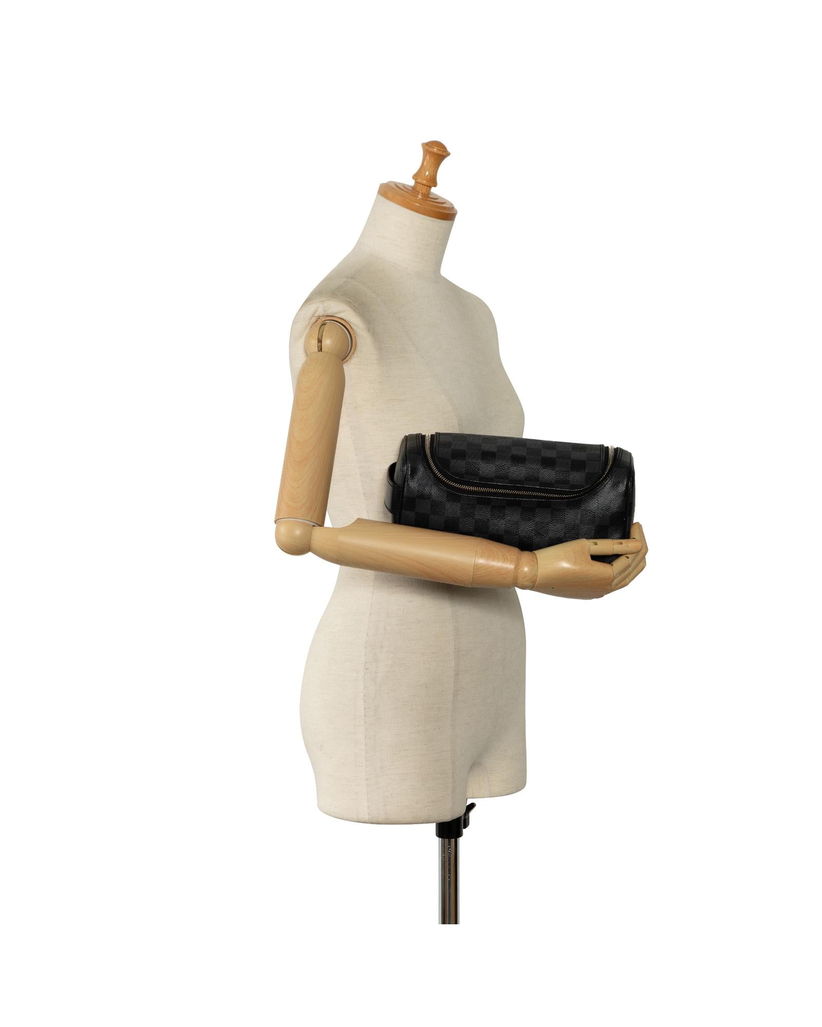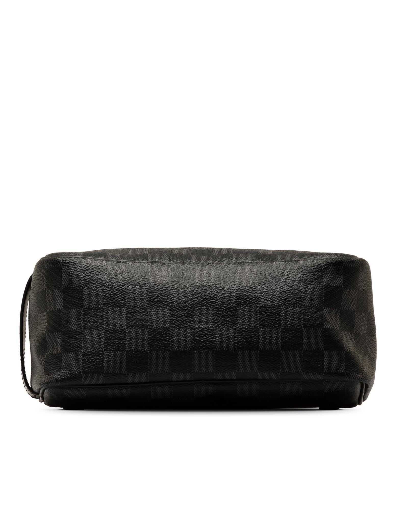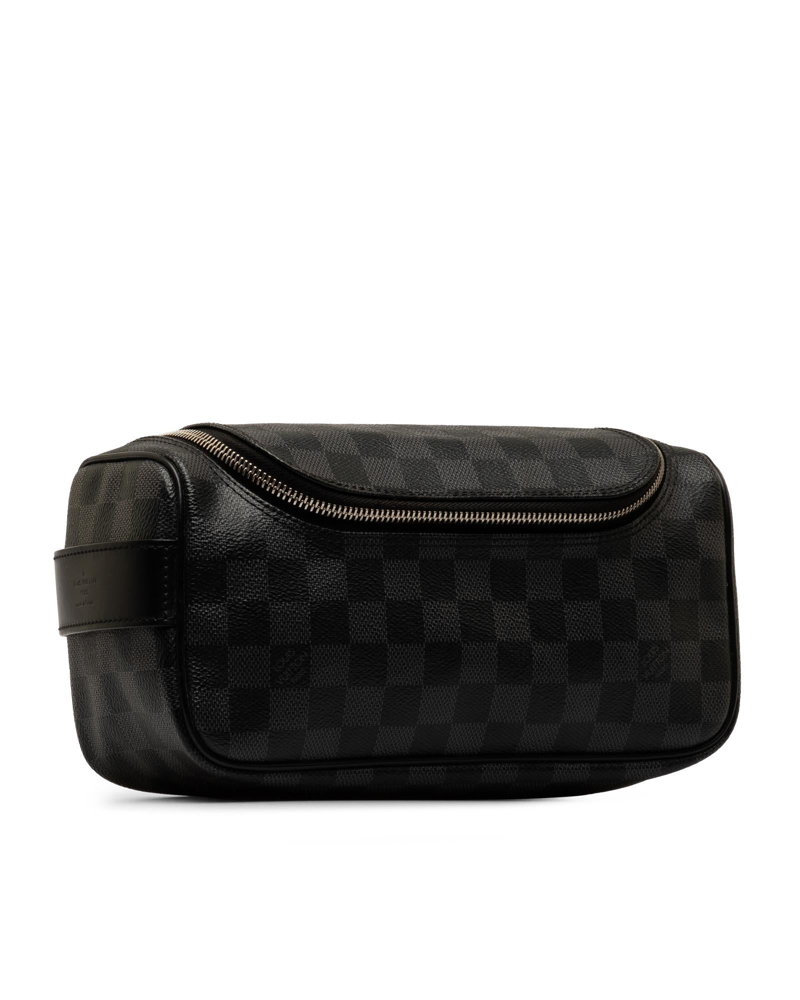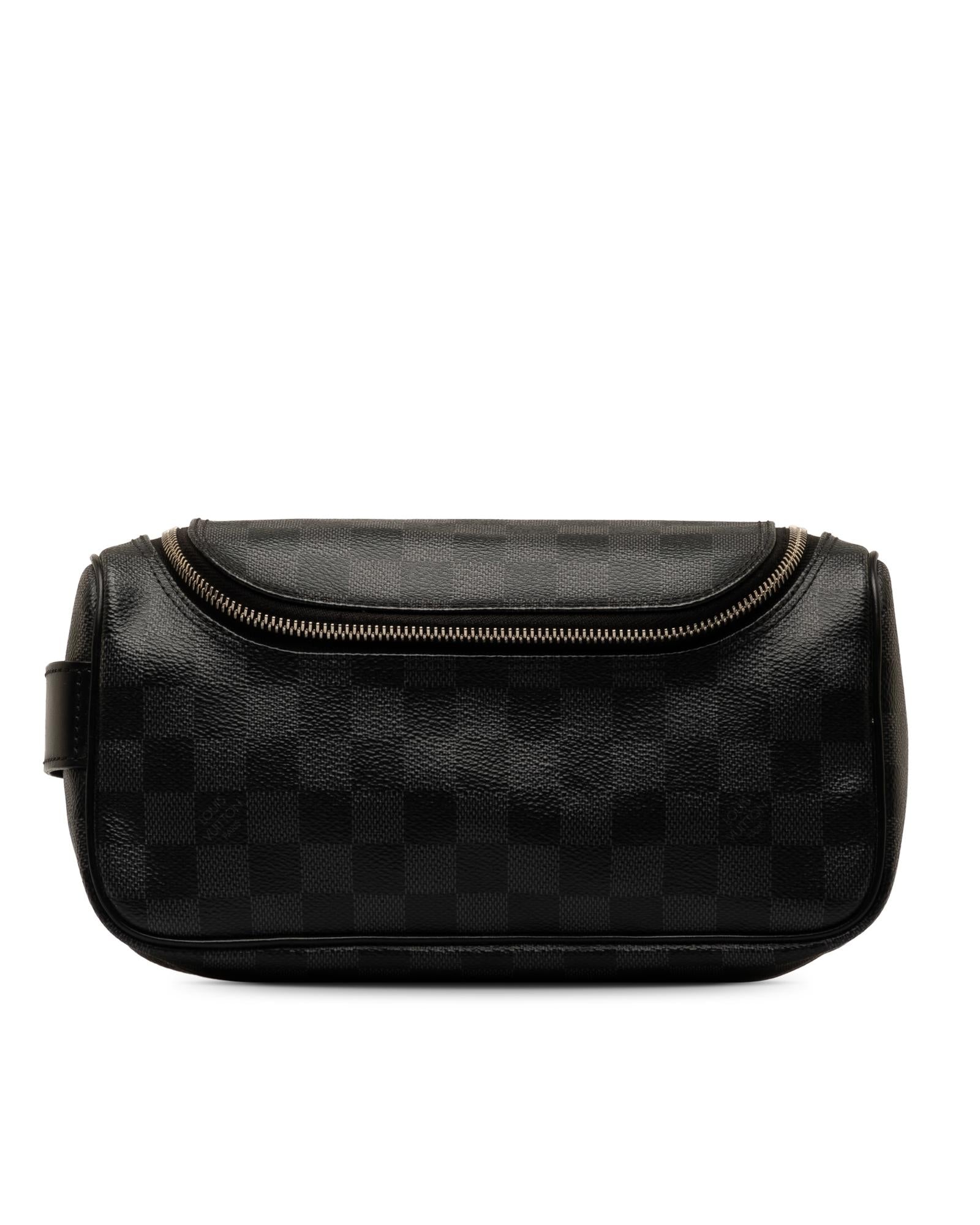 The Toiletry Pouch features a damier canvas body a top zip-around closure and an interior zip pocket.
