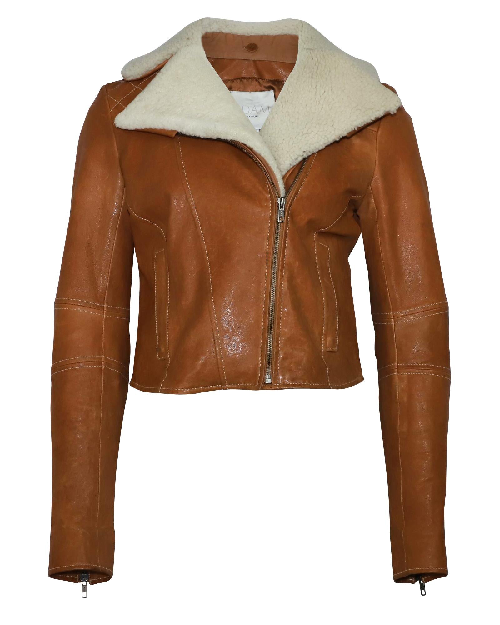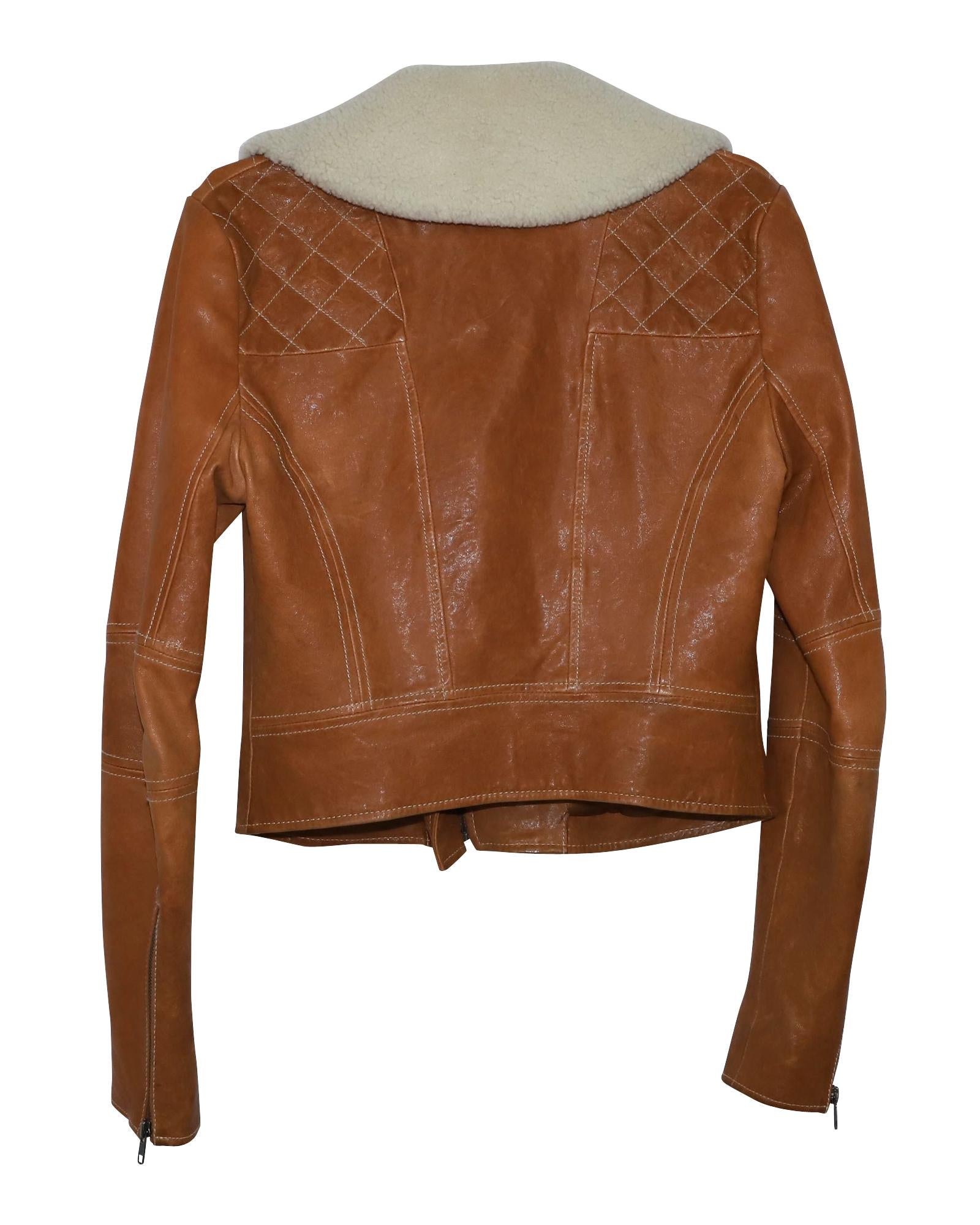 Pre-owned Cropped Leather Jacket Sherpa Collar