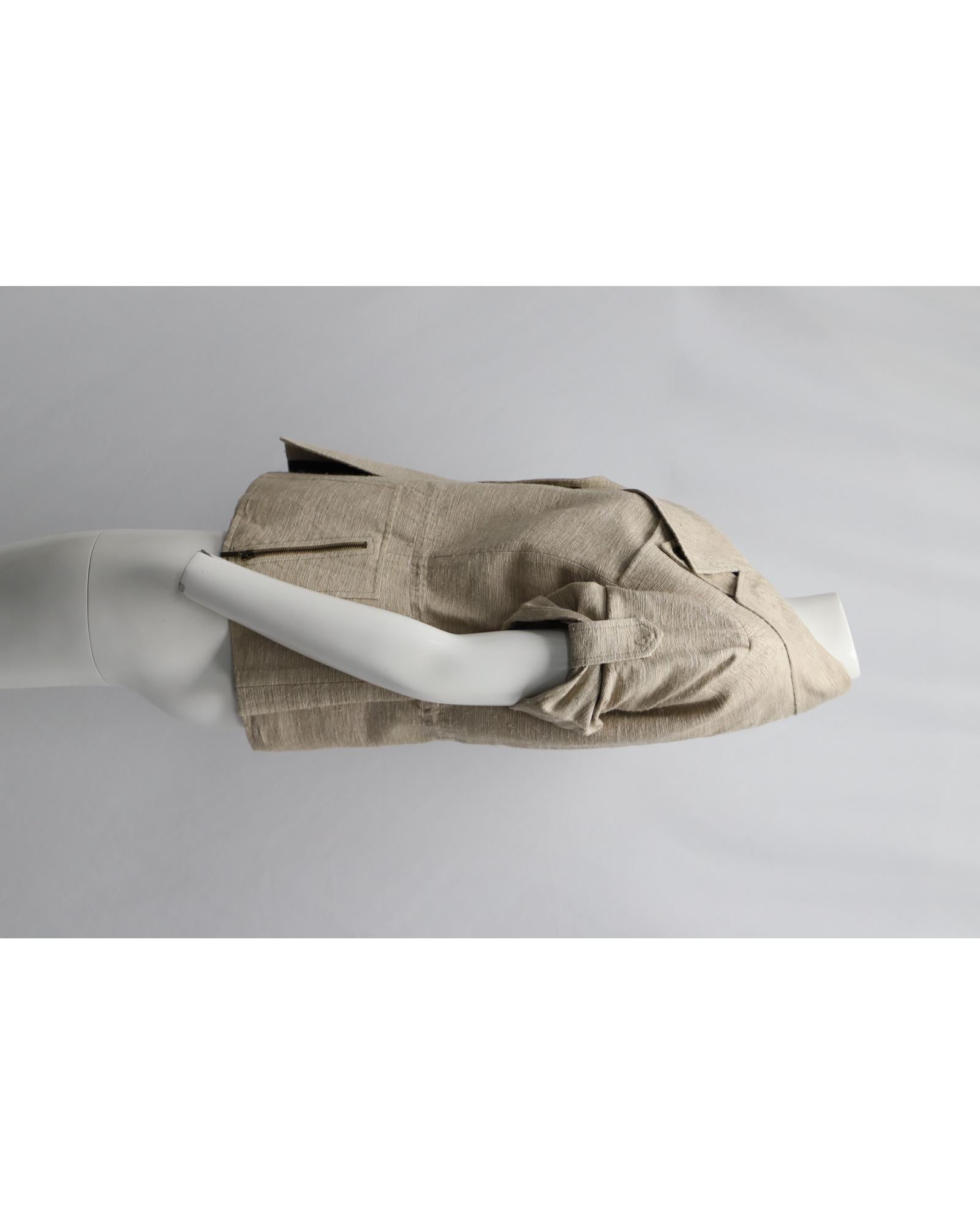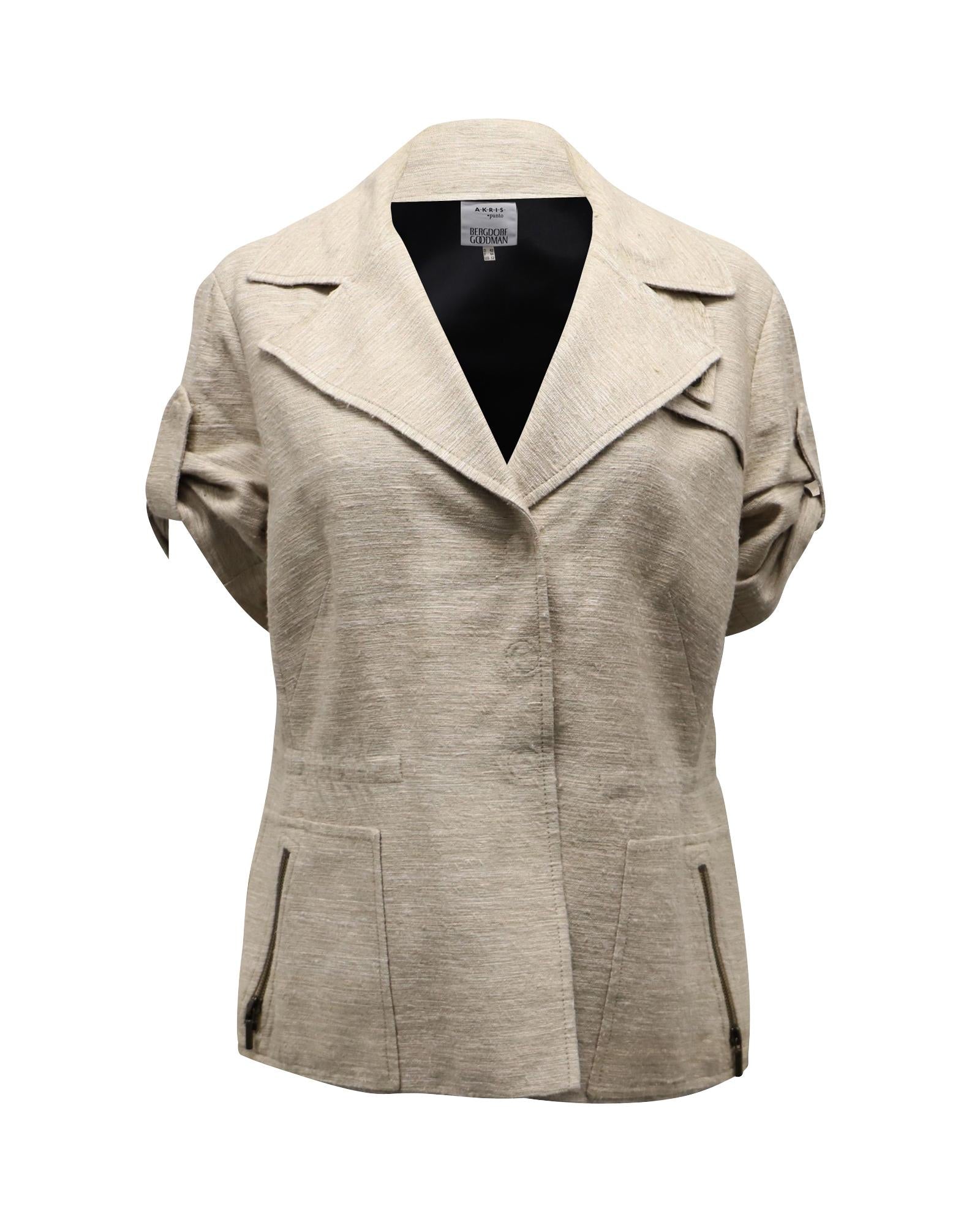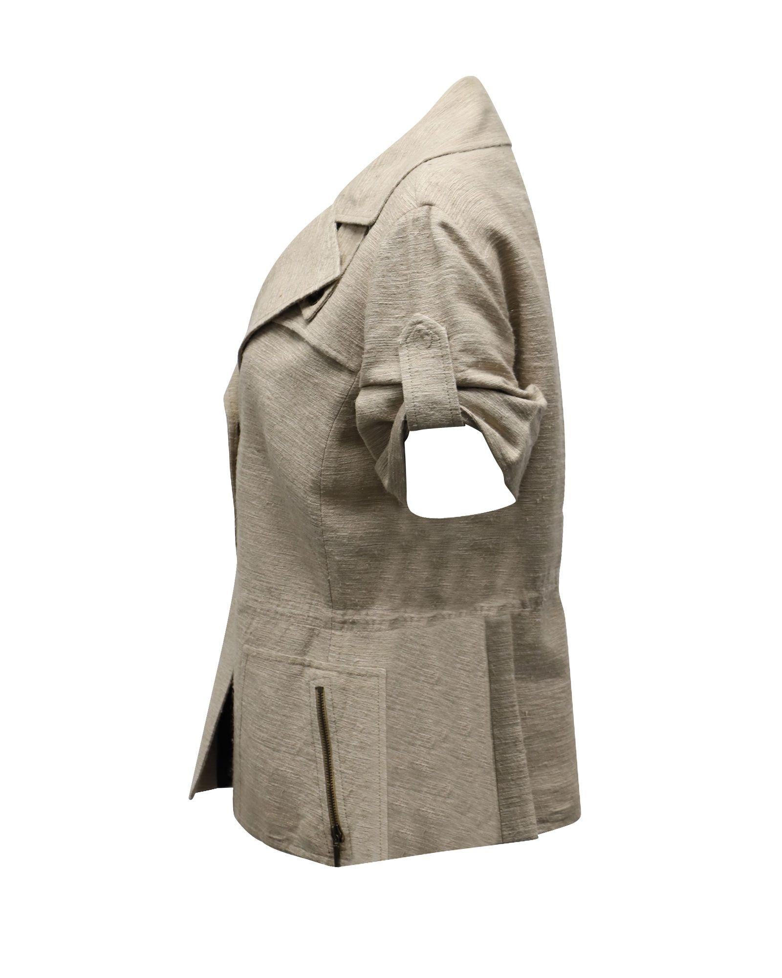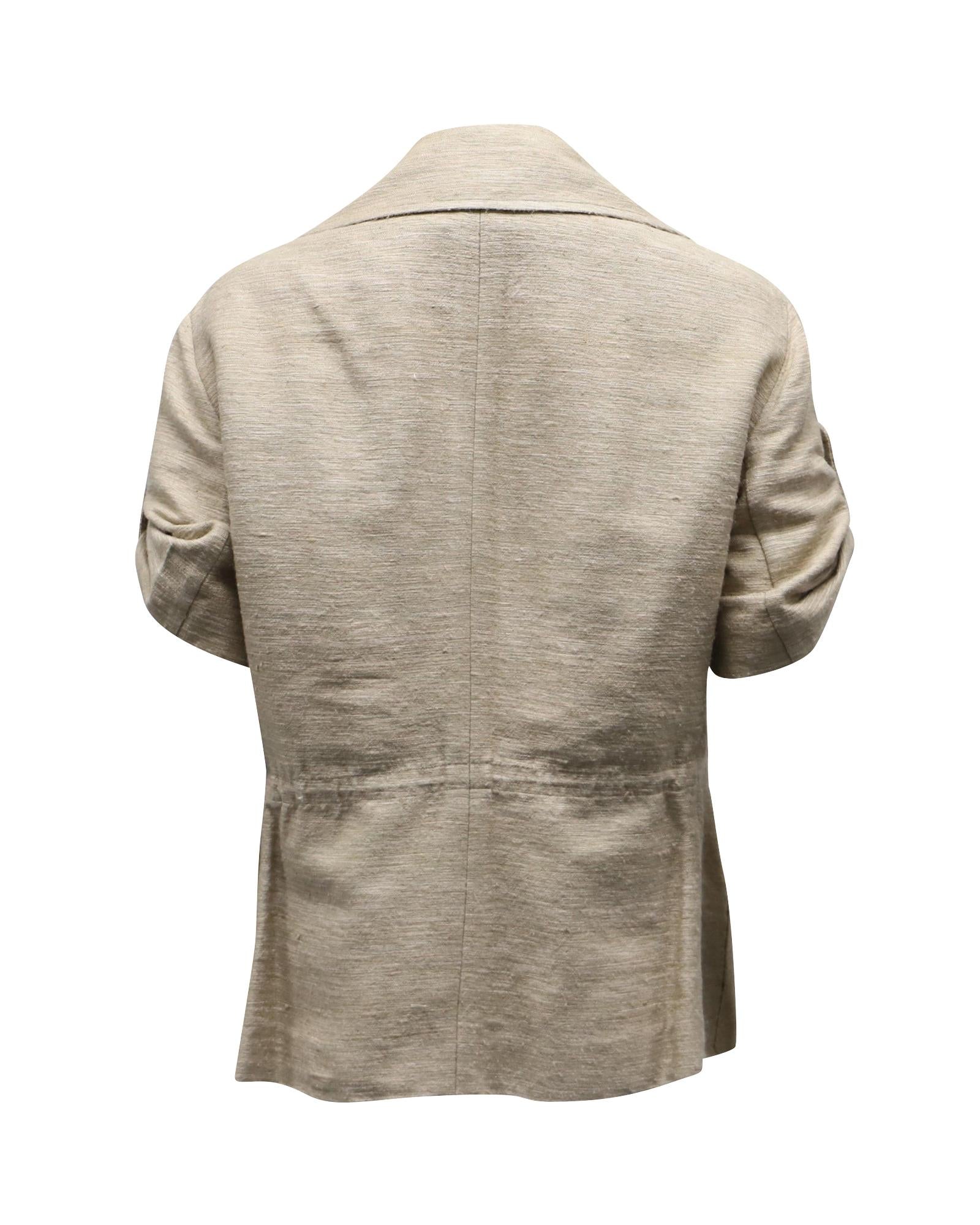 Pre-owned Short Sleeve Linen Jacket Zip Pockets