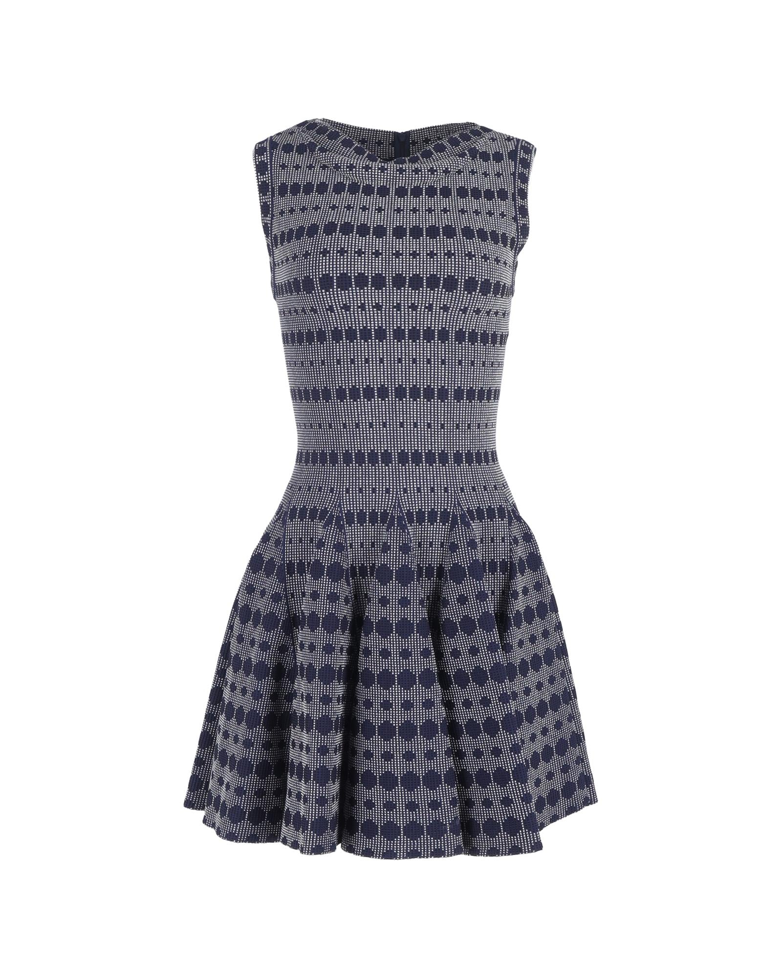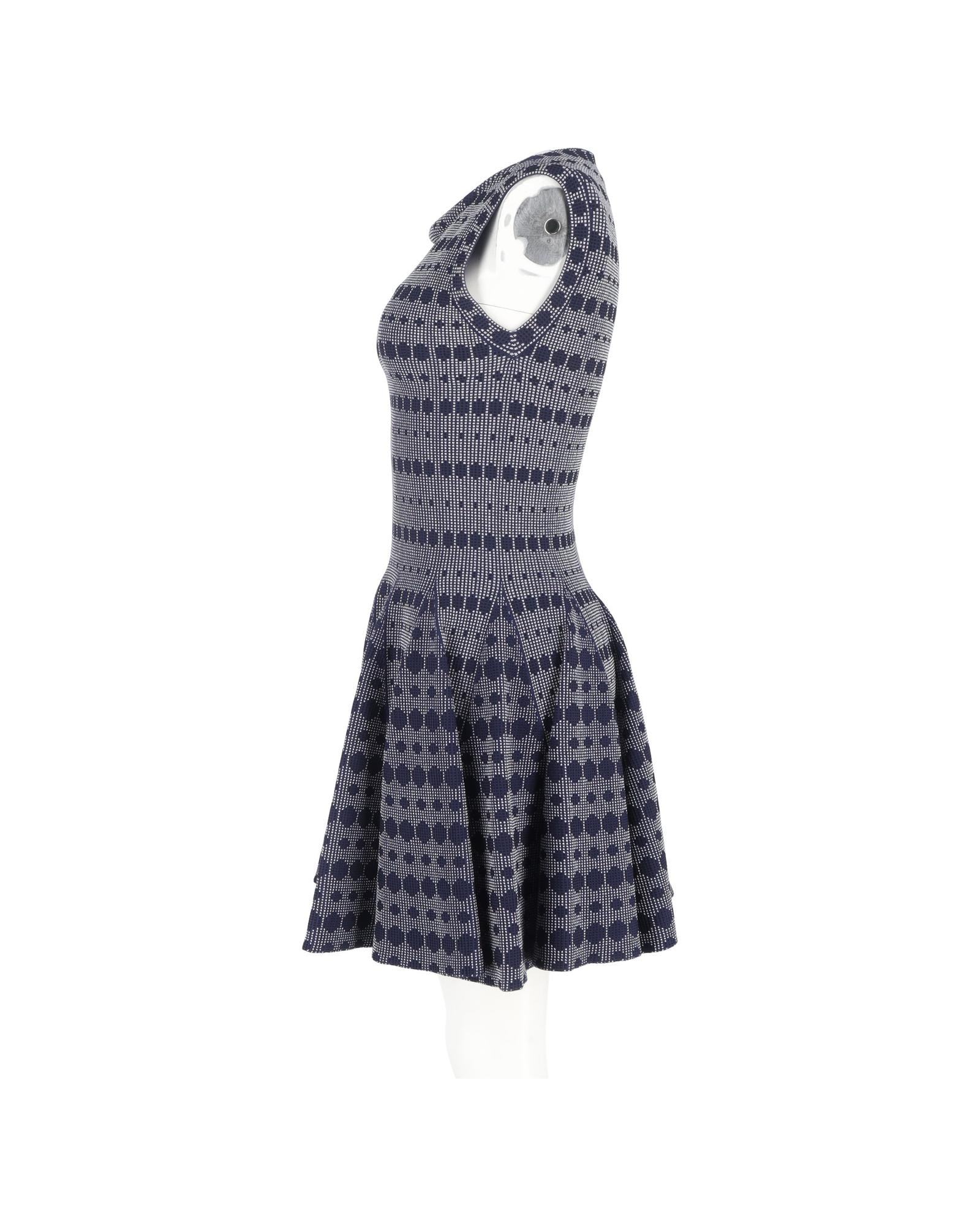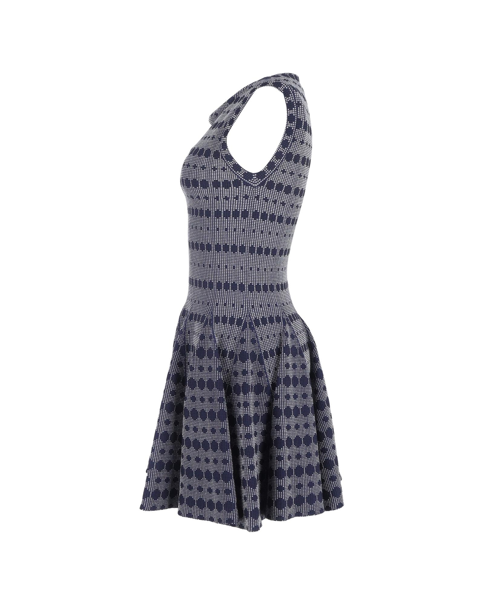 - Alaia Polka Dot Mini Skater Dress in Navy Blue Viscose