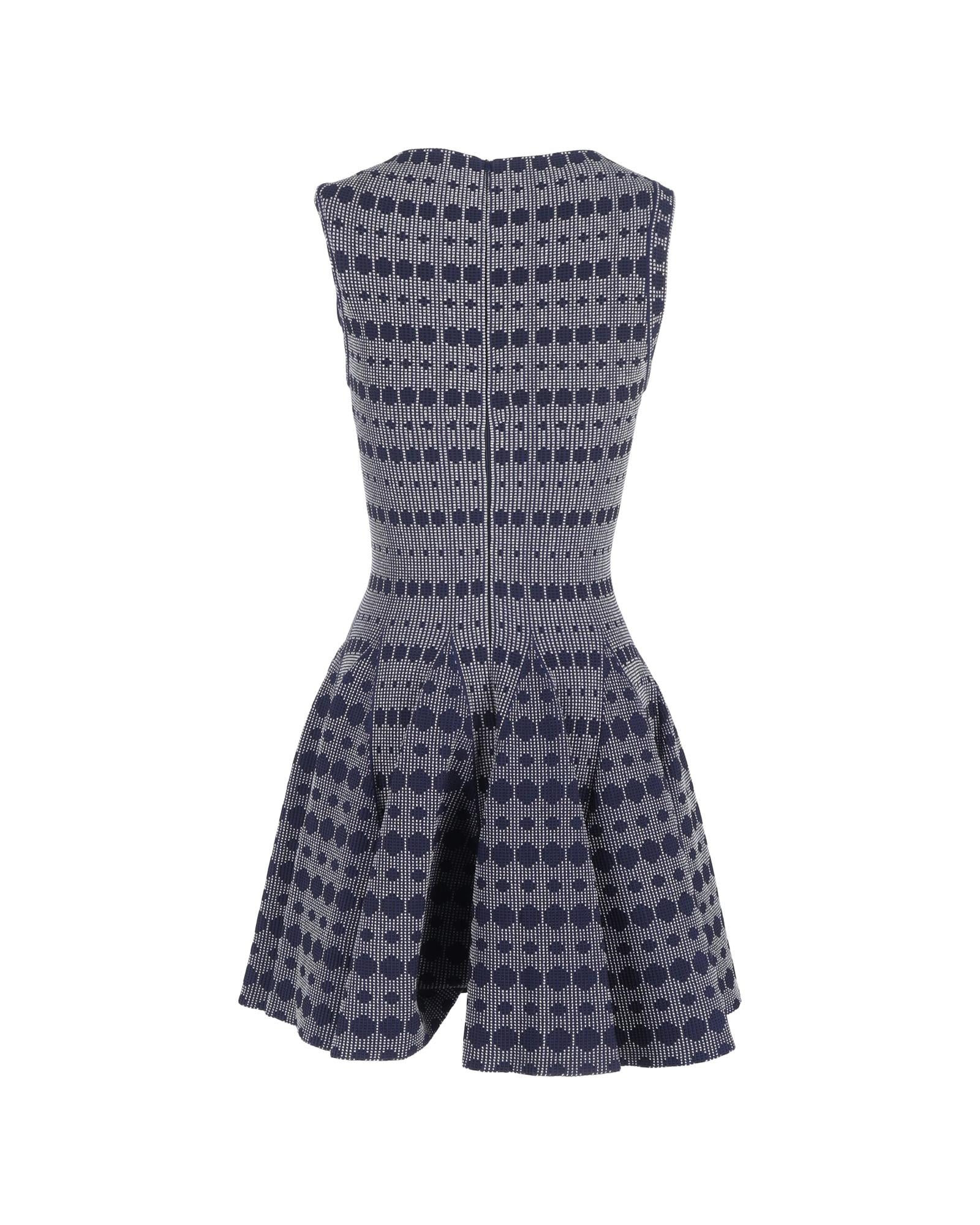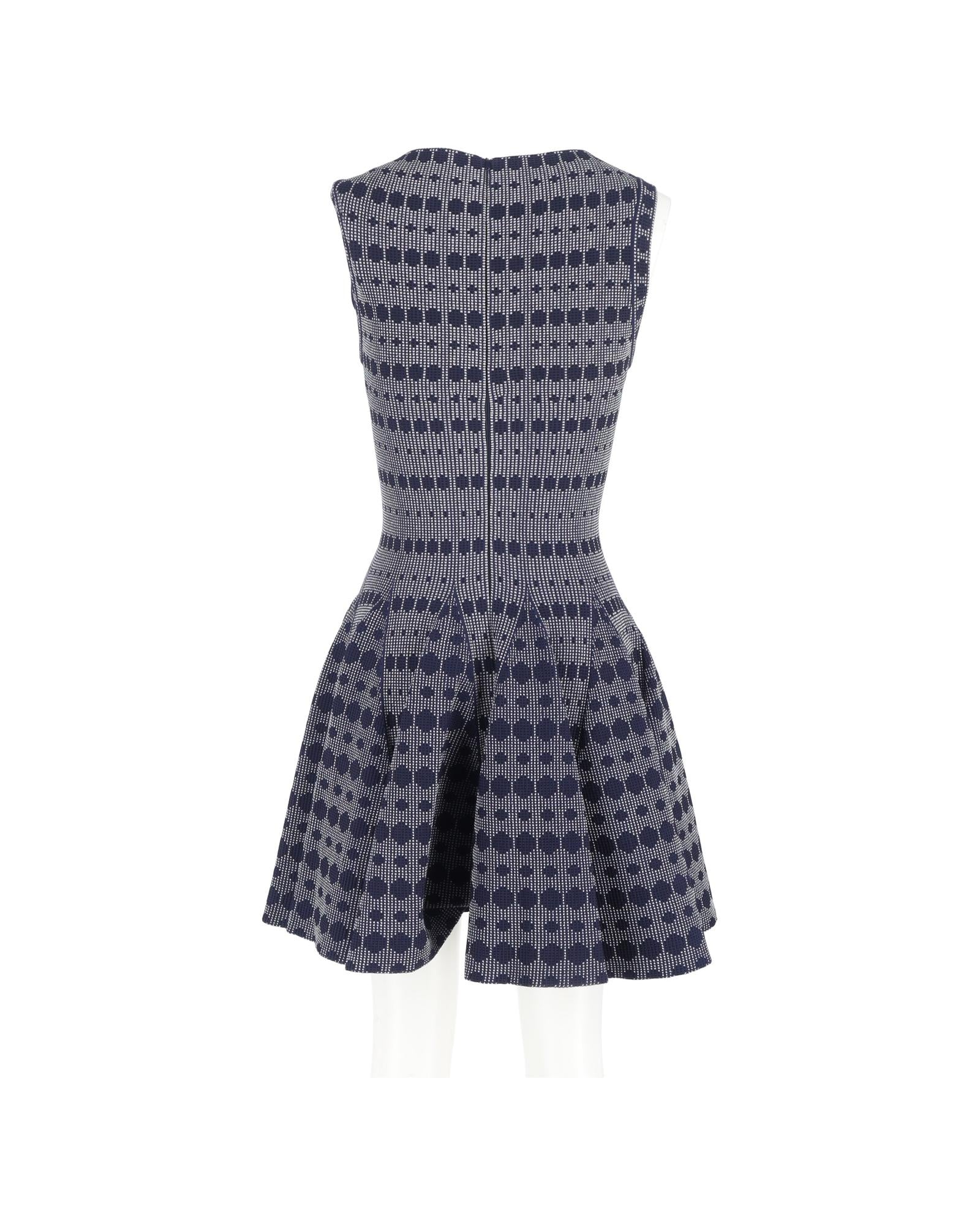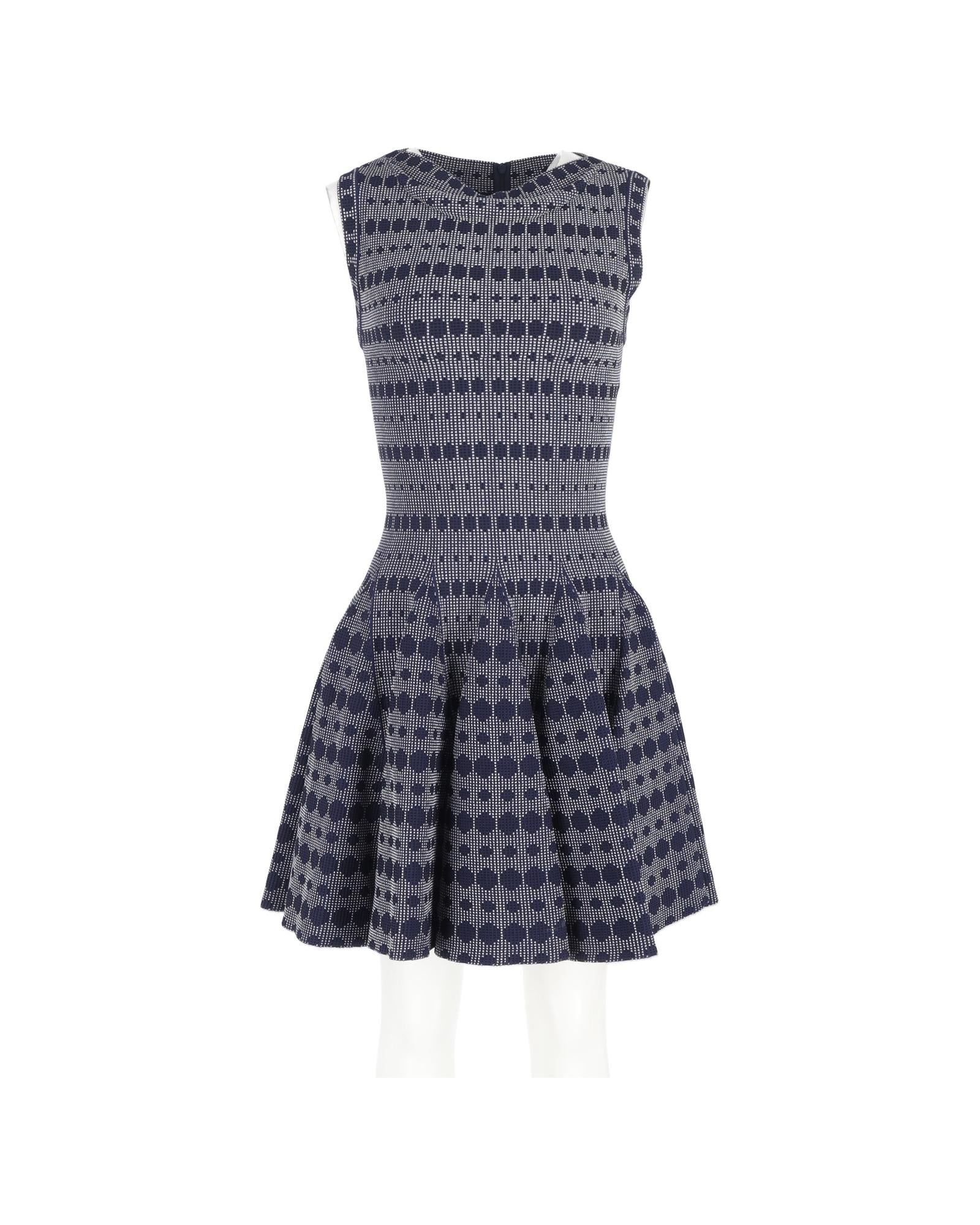 - Alaia Polka Dot Mini Skater Dress in Navy Blue Viscose