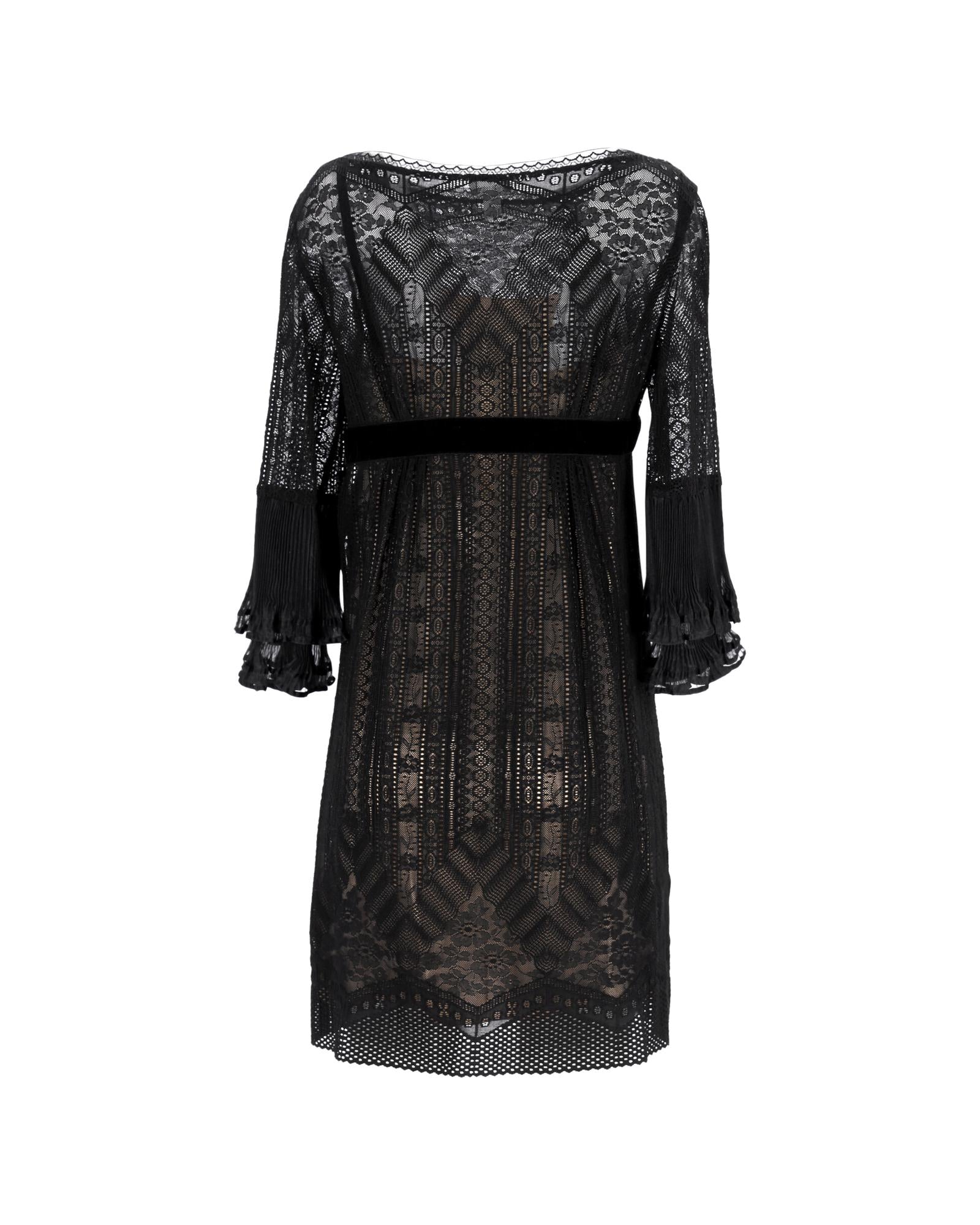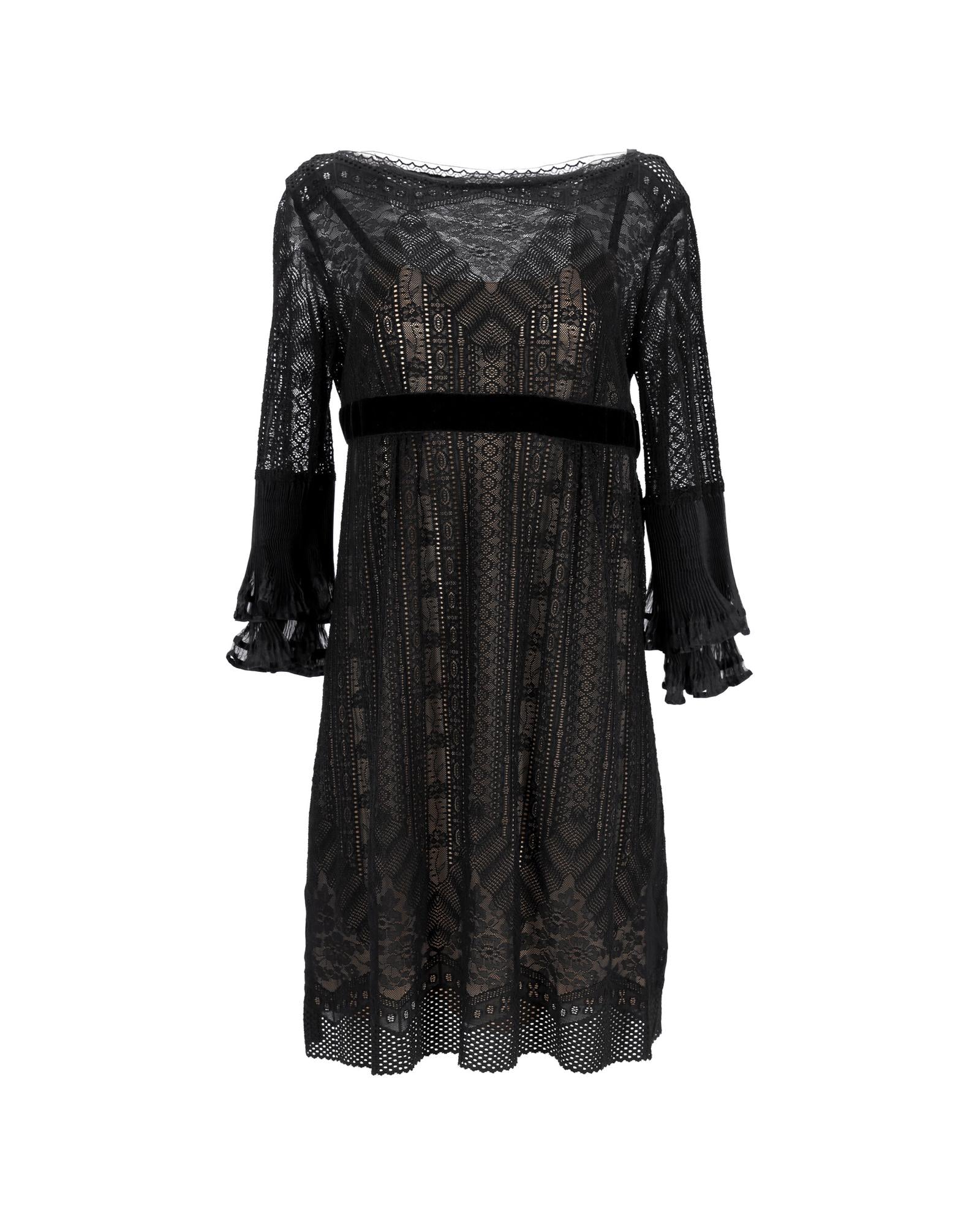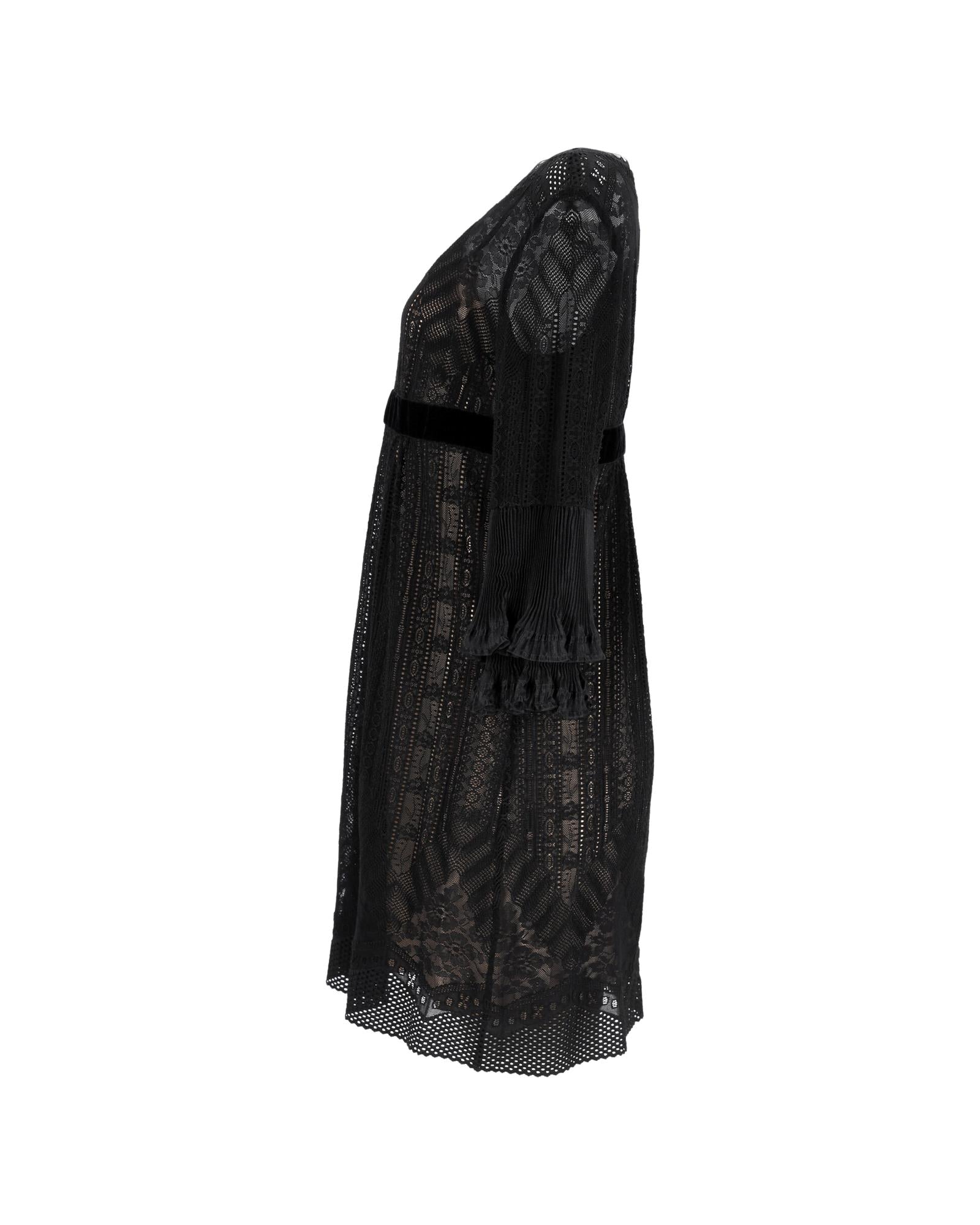 - Philosophy by Alberta Ferretti Mini Lace Long Sleeve Dress in Black Polyester