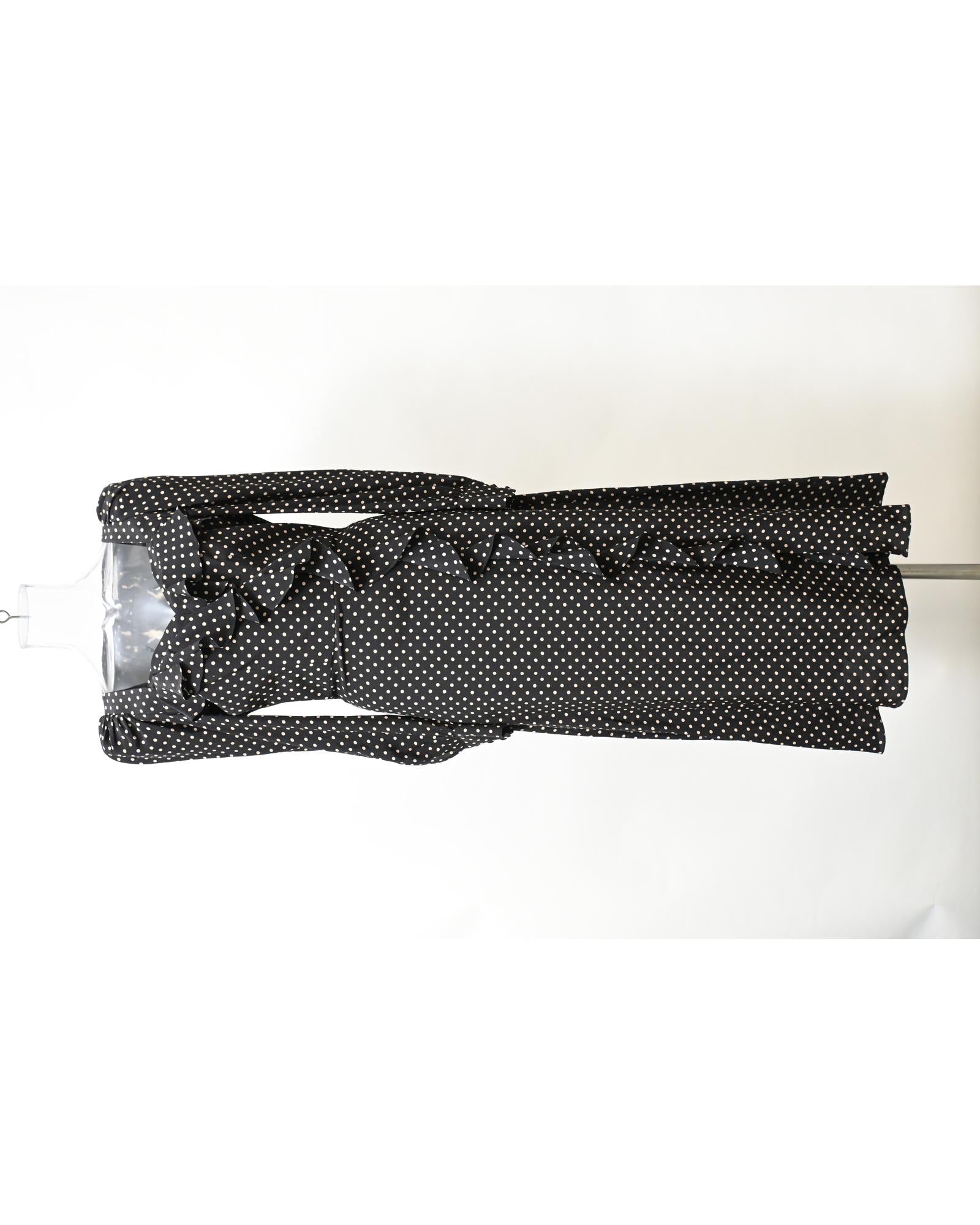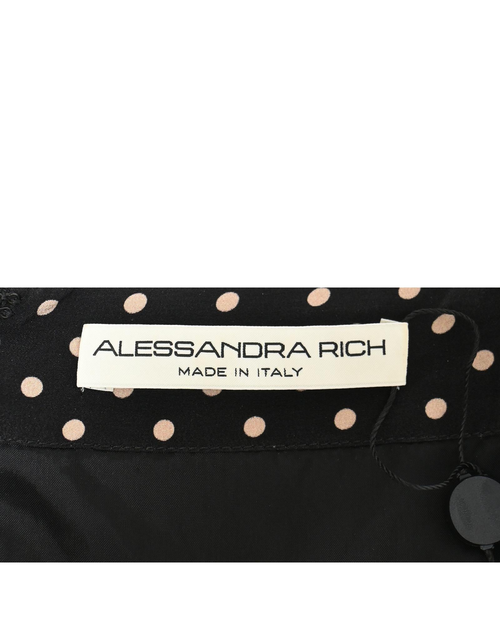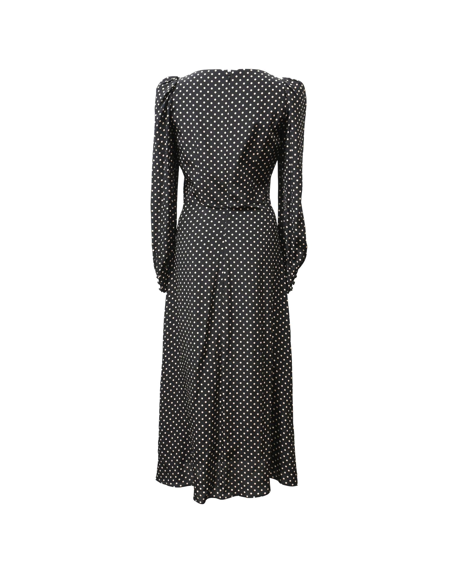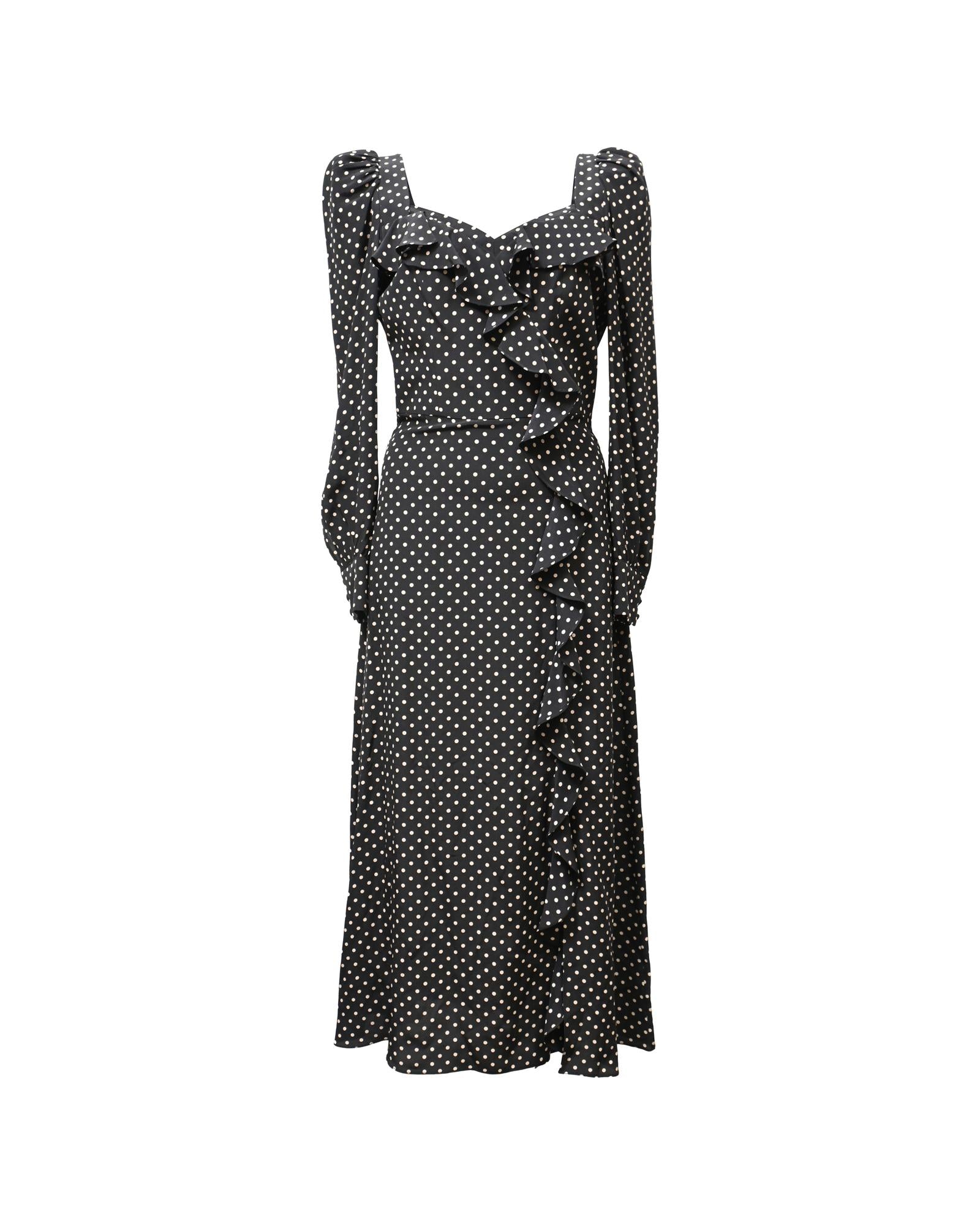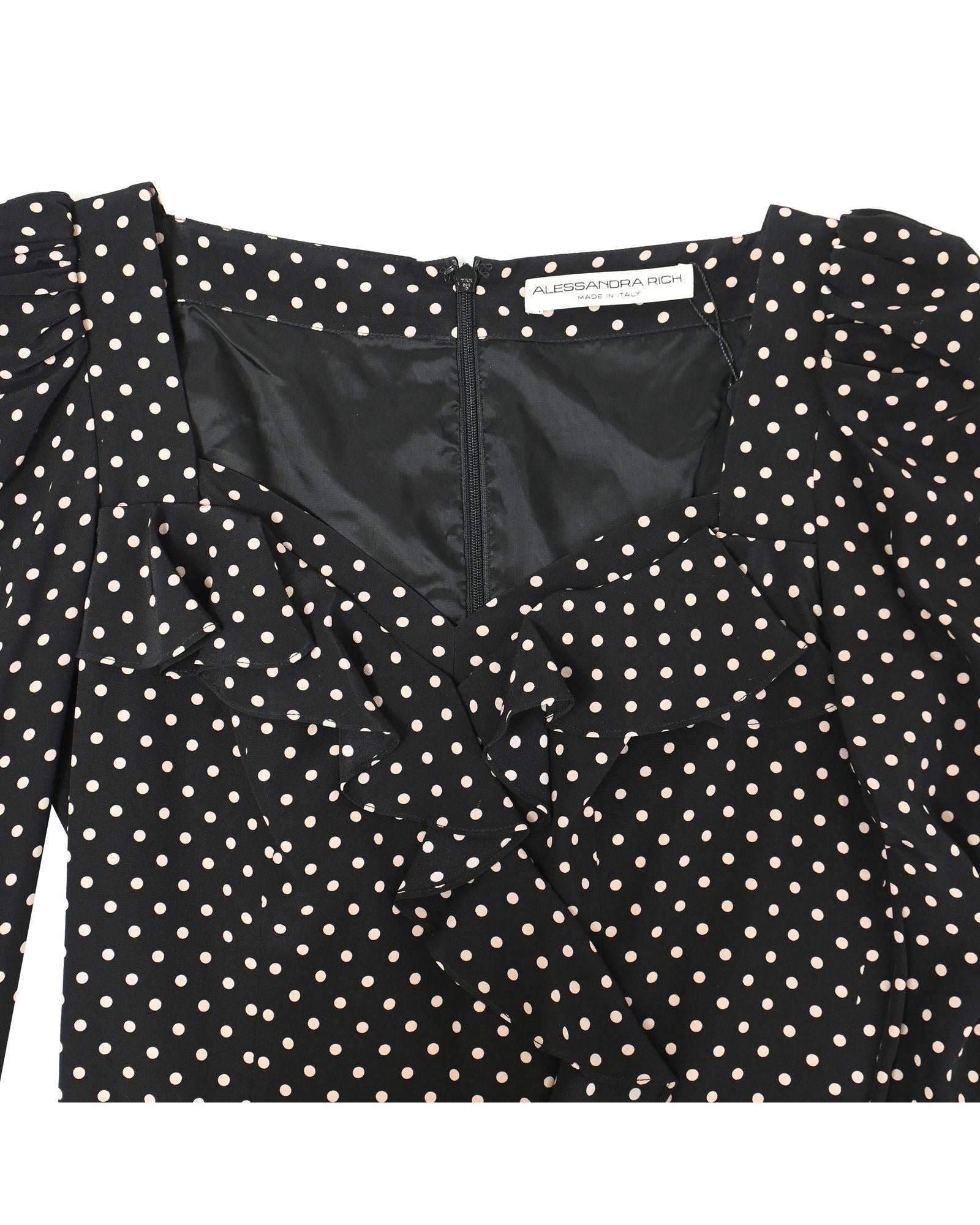 - Alessandra Rich Ruffled Polka Dot Midi Dress in Black Silk