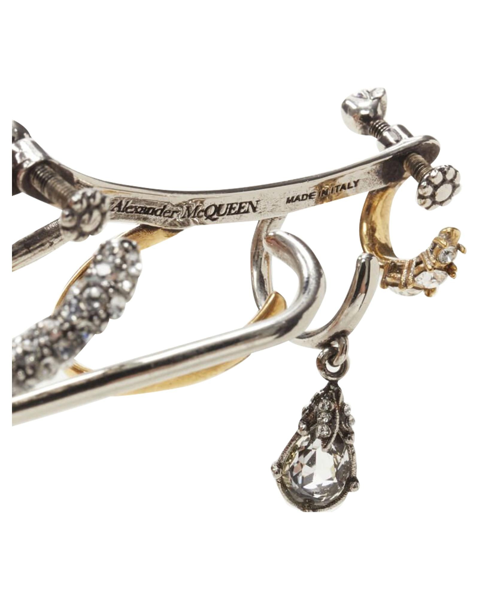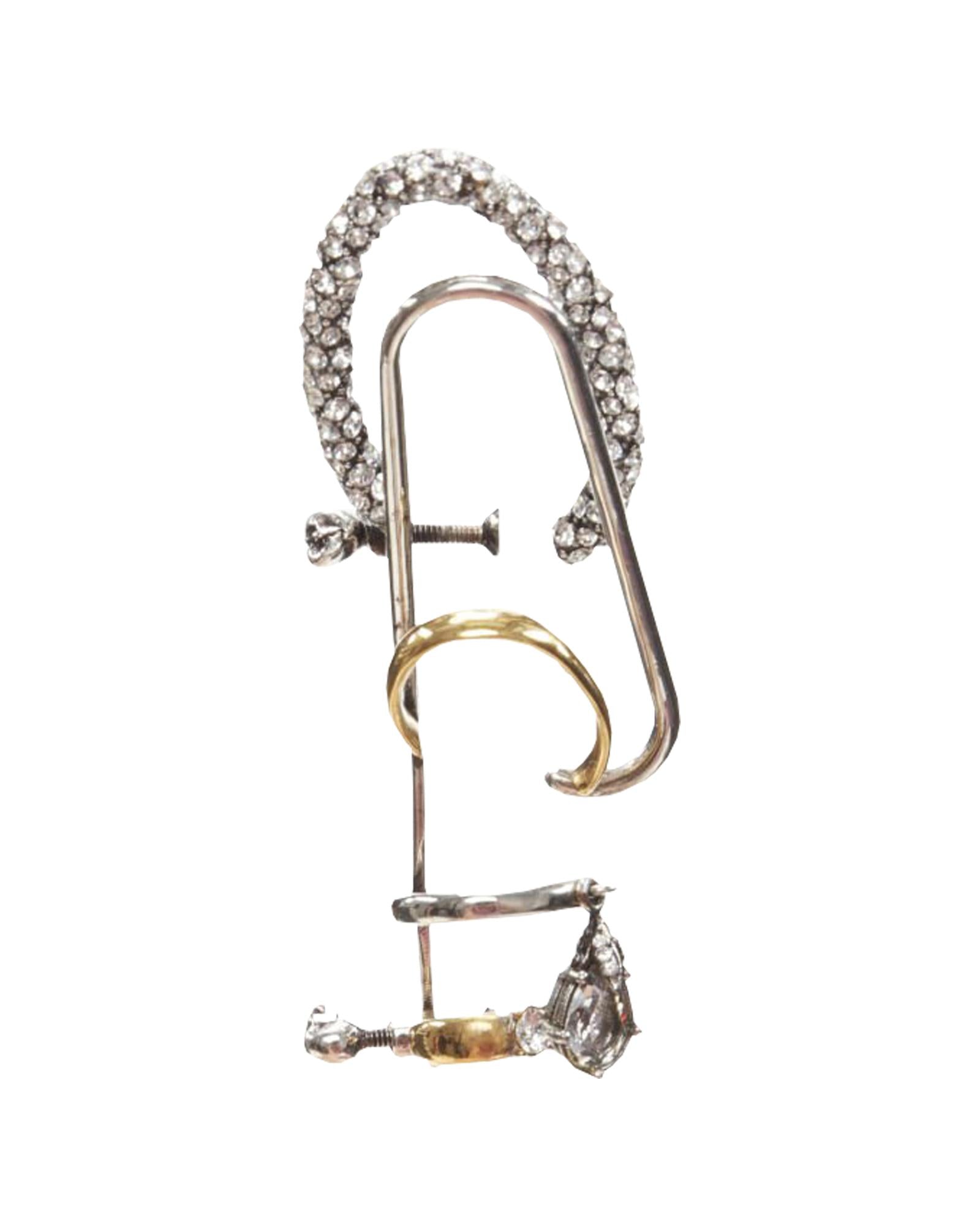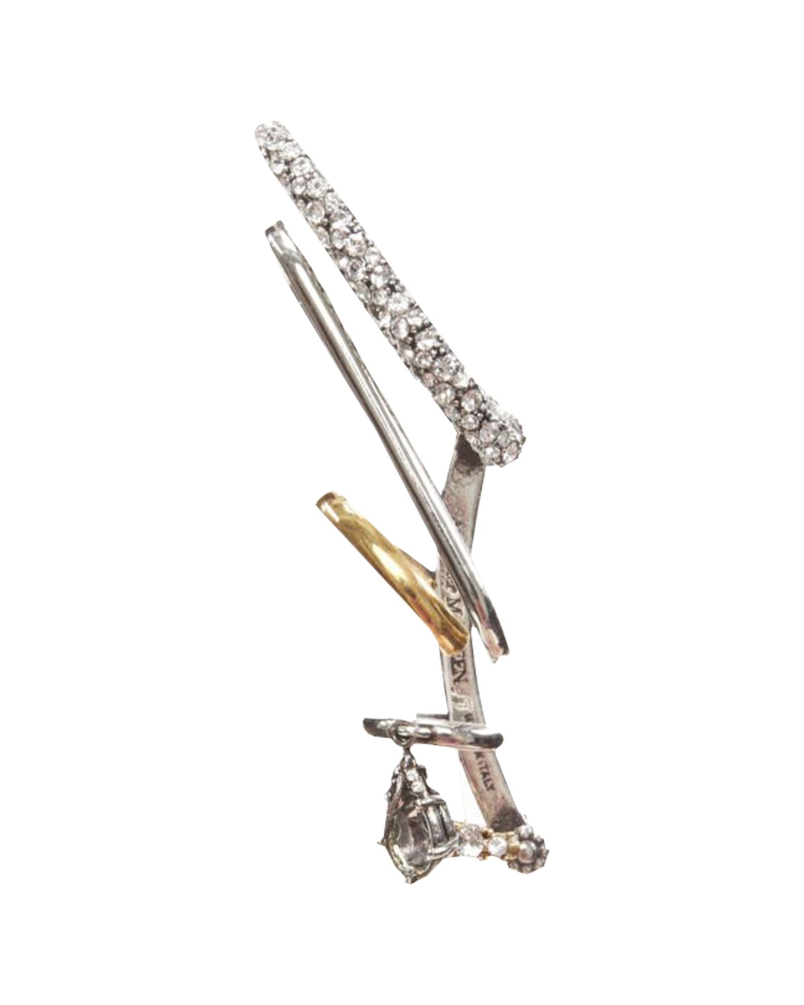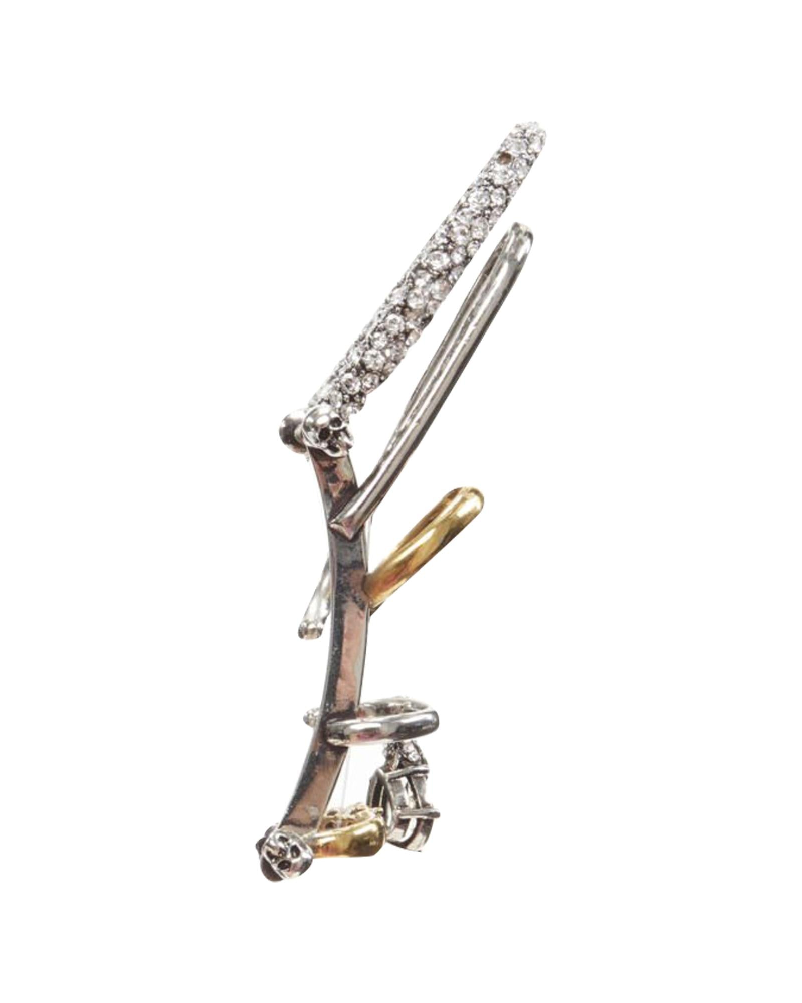 Pre-owned Articulated Ski Lift Brooch Pin with Simulated Stones and Skull Details