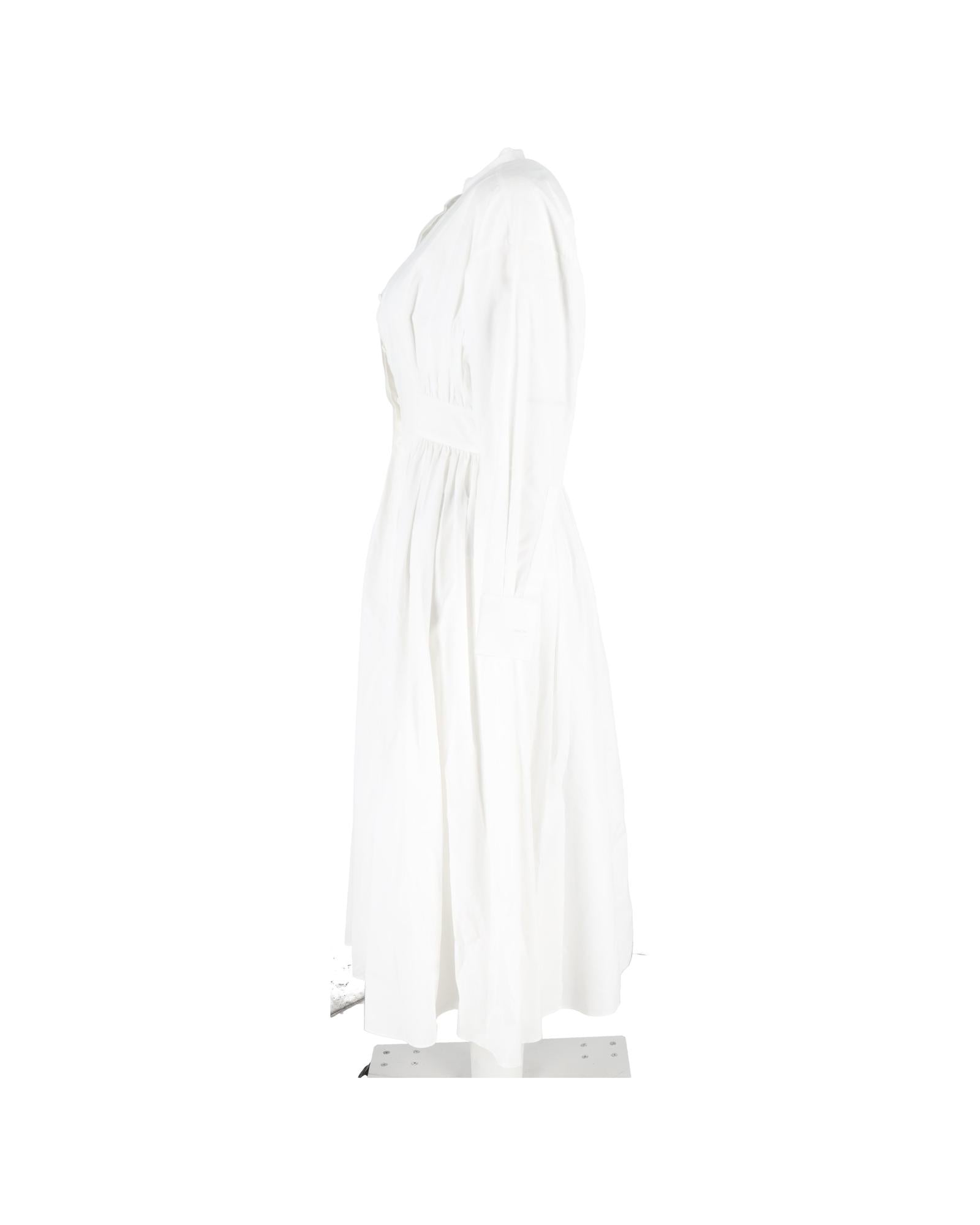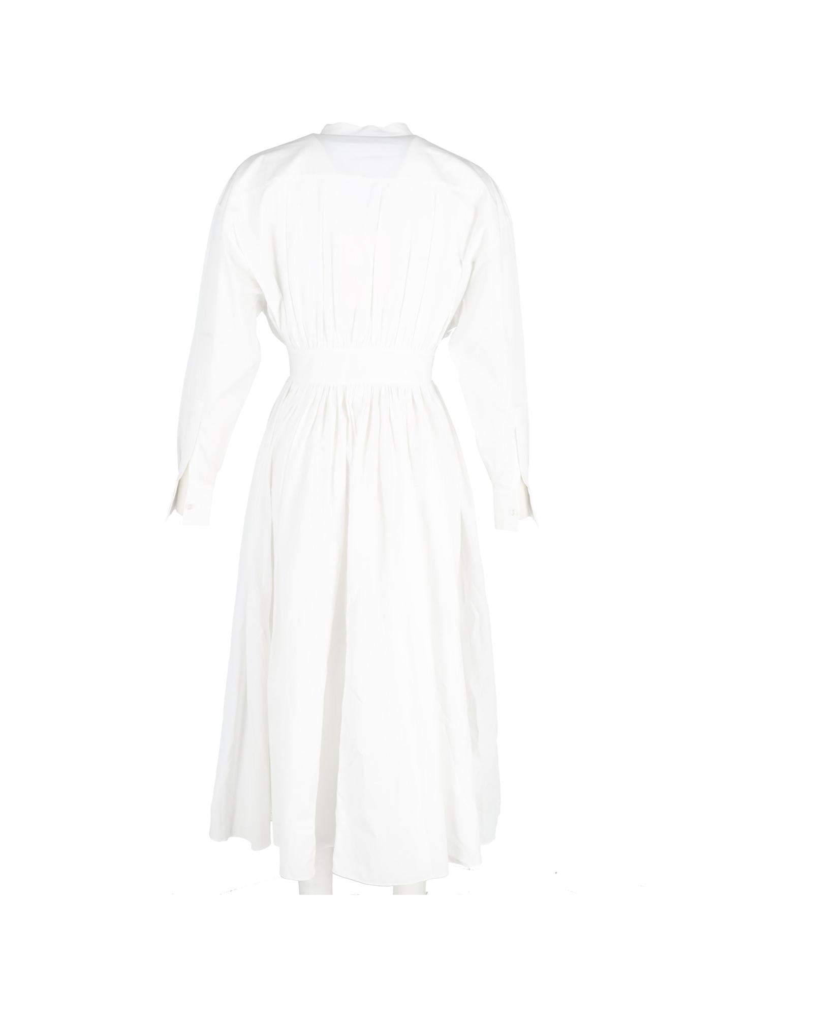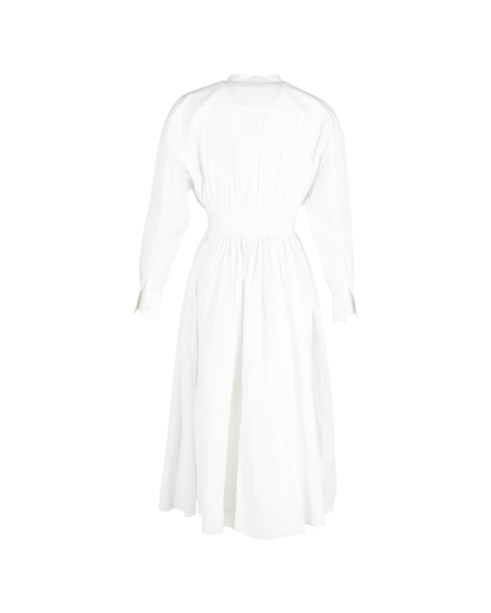 - Up Long Sleeve Shirt Dress in White Cotton