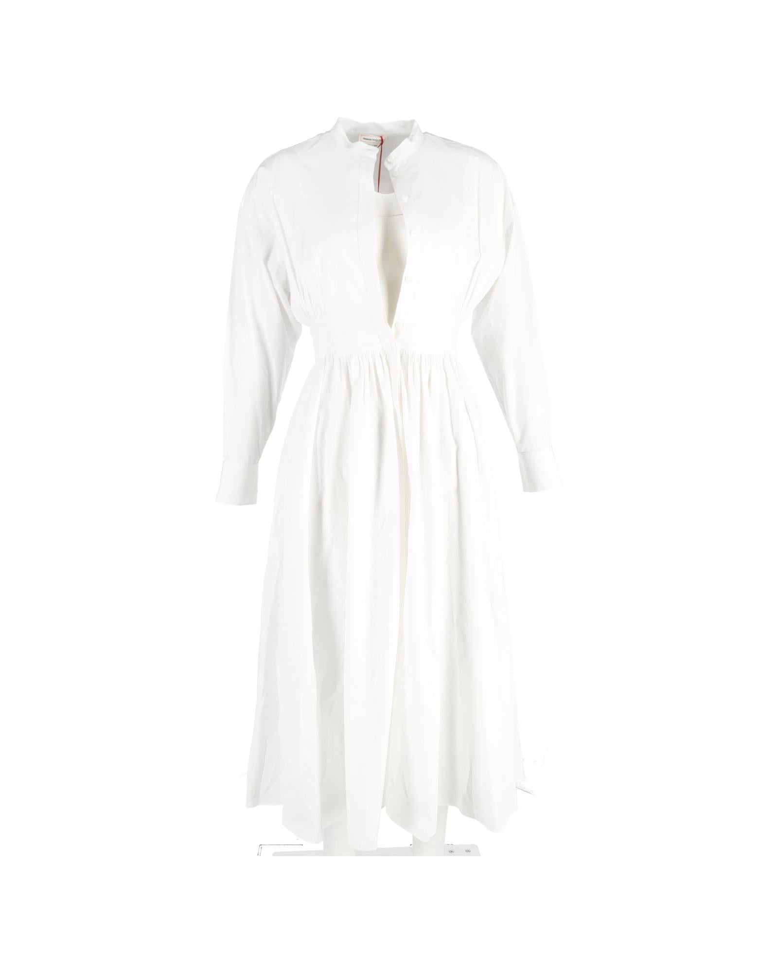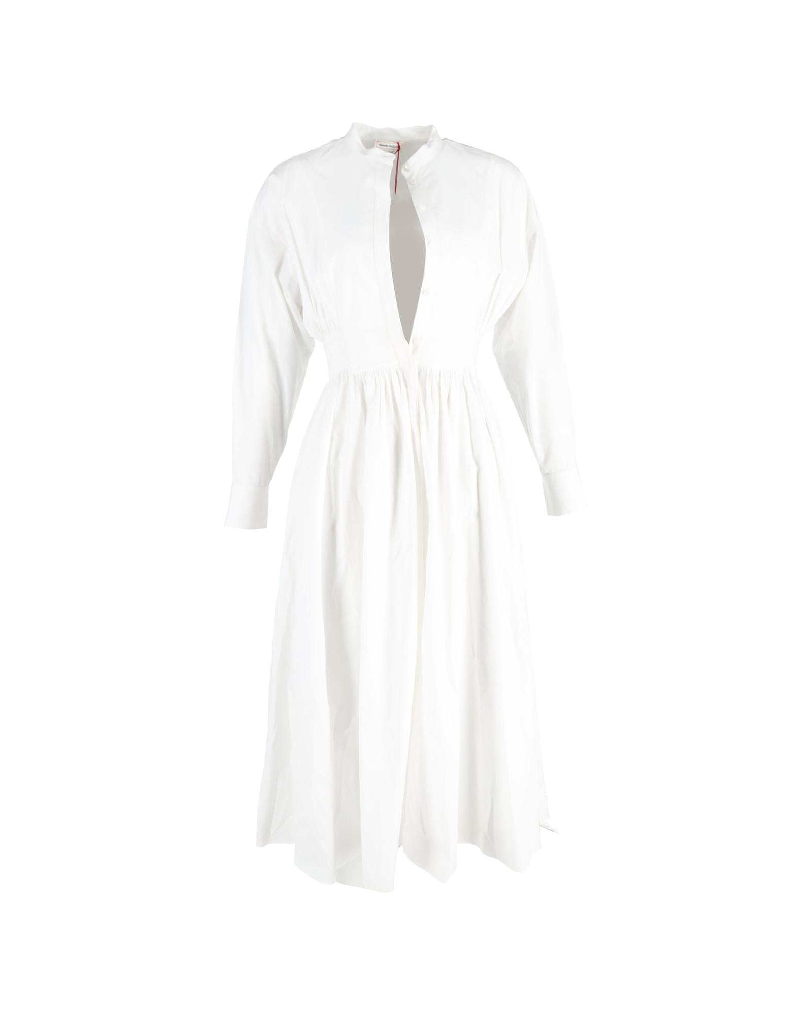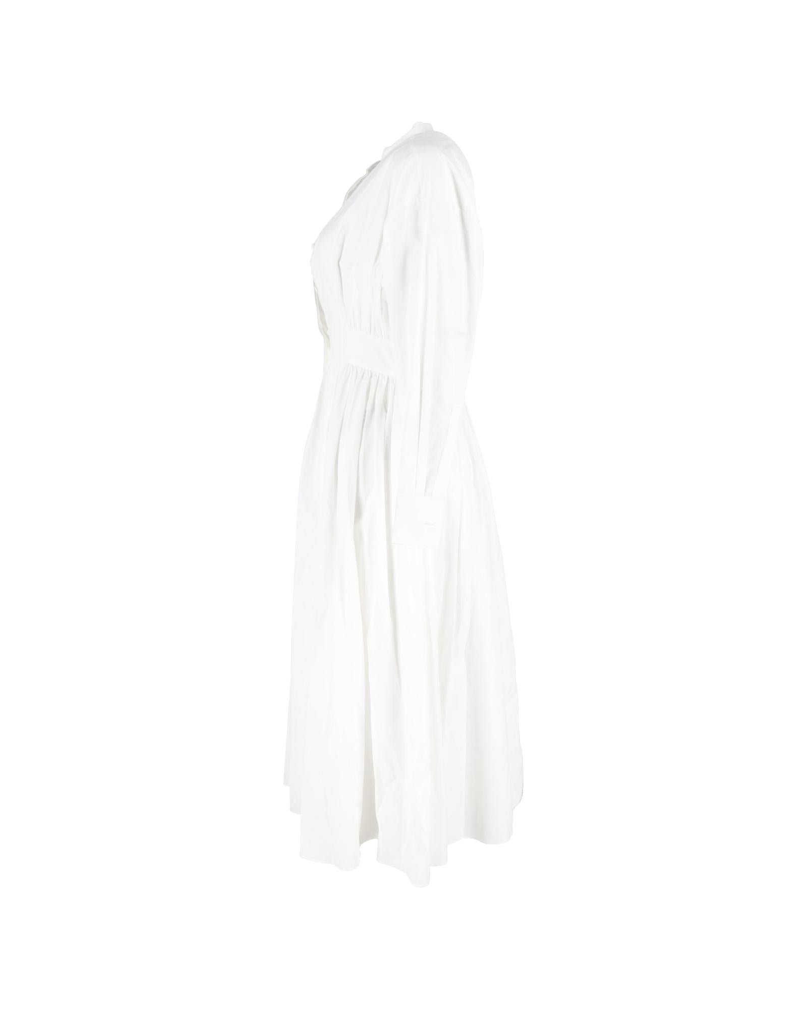 - Up Long Sleeve Shirt Dress in White Cotton
