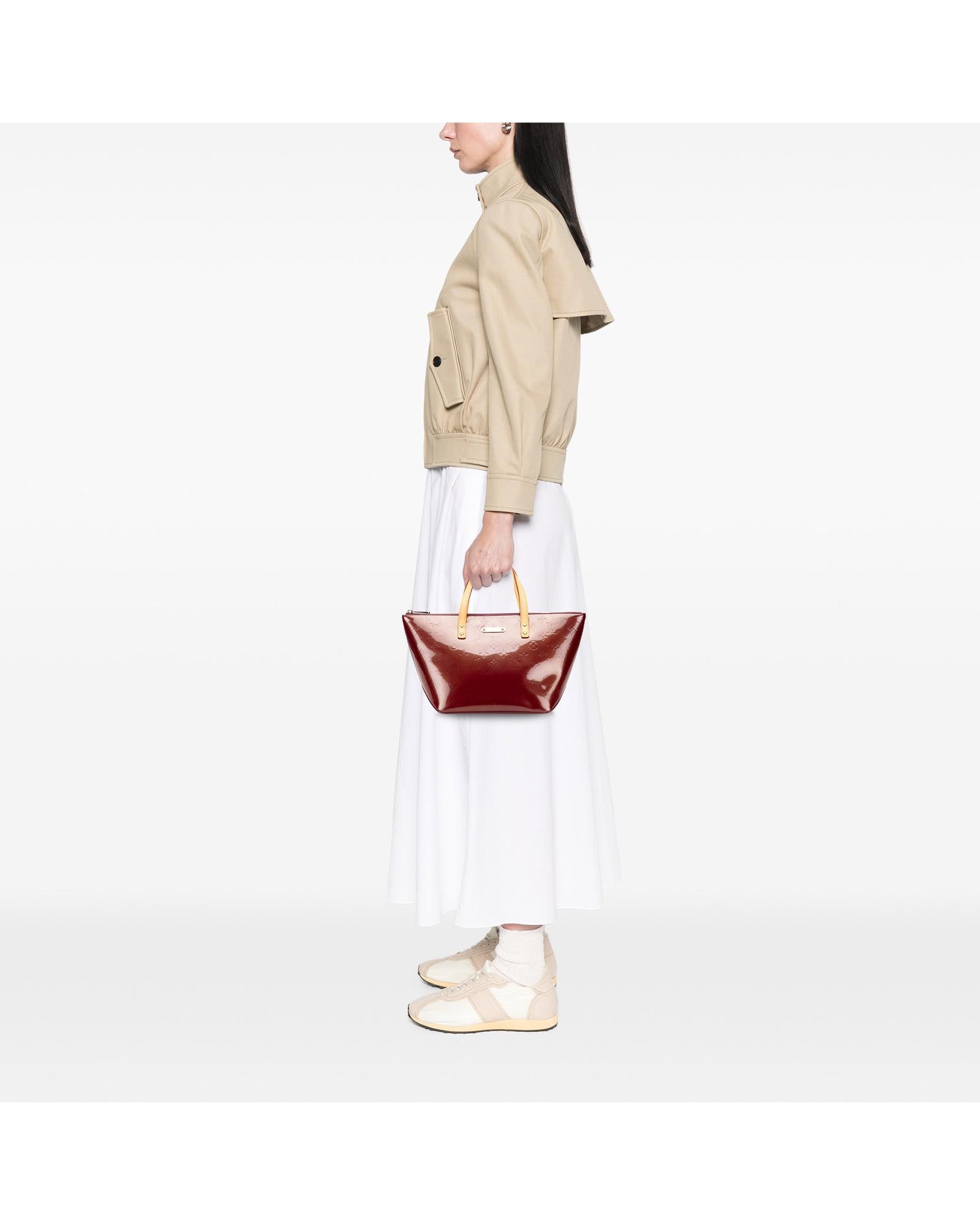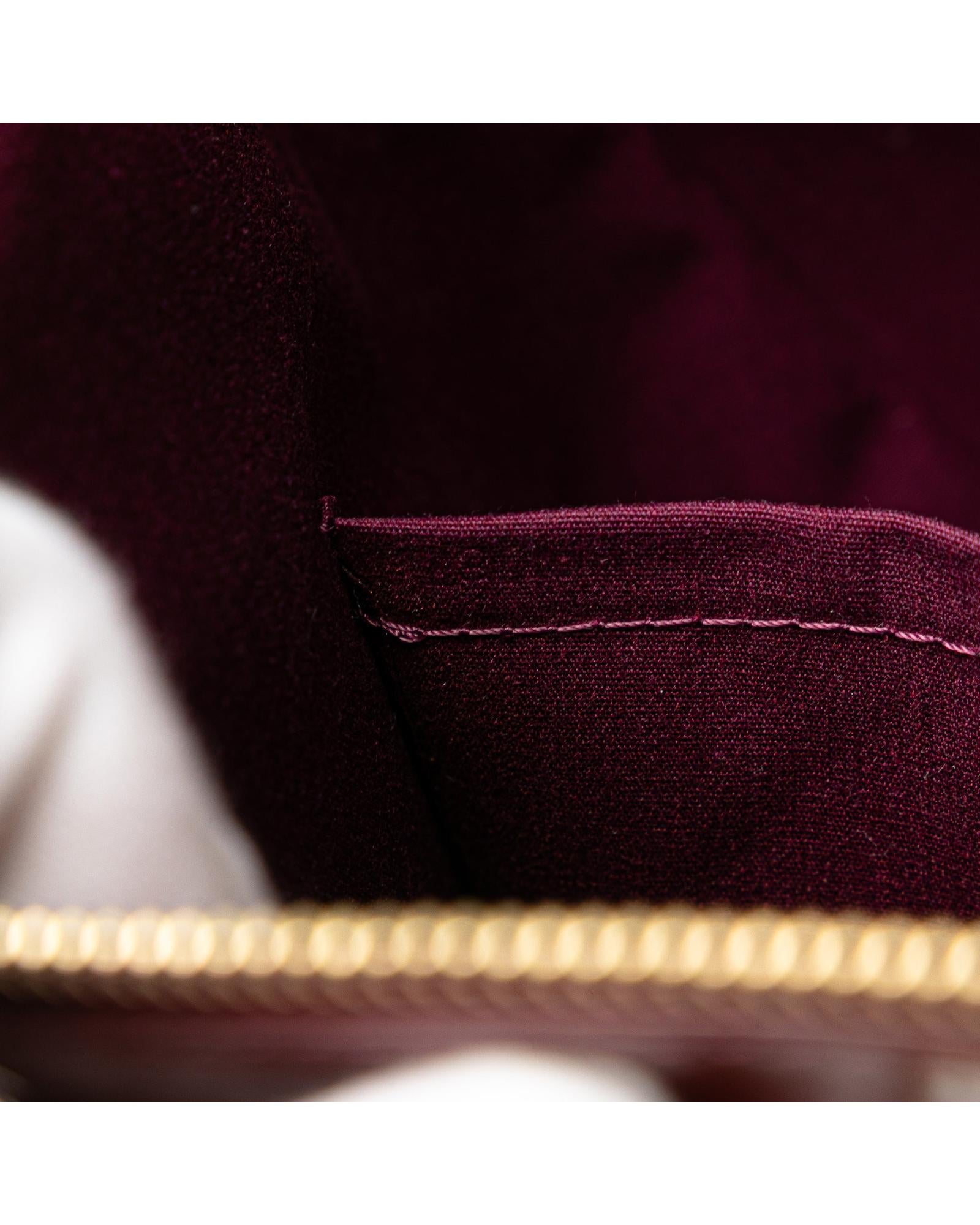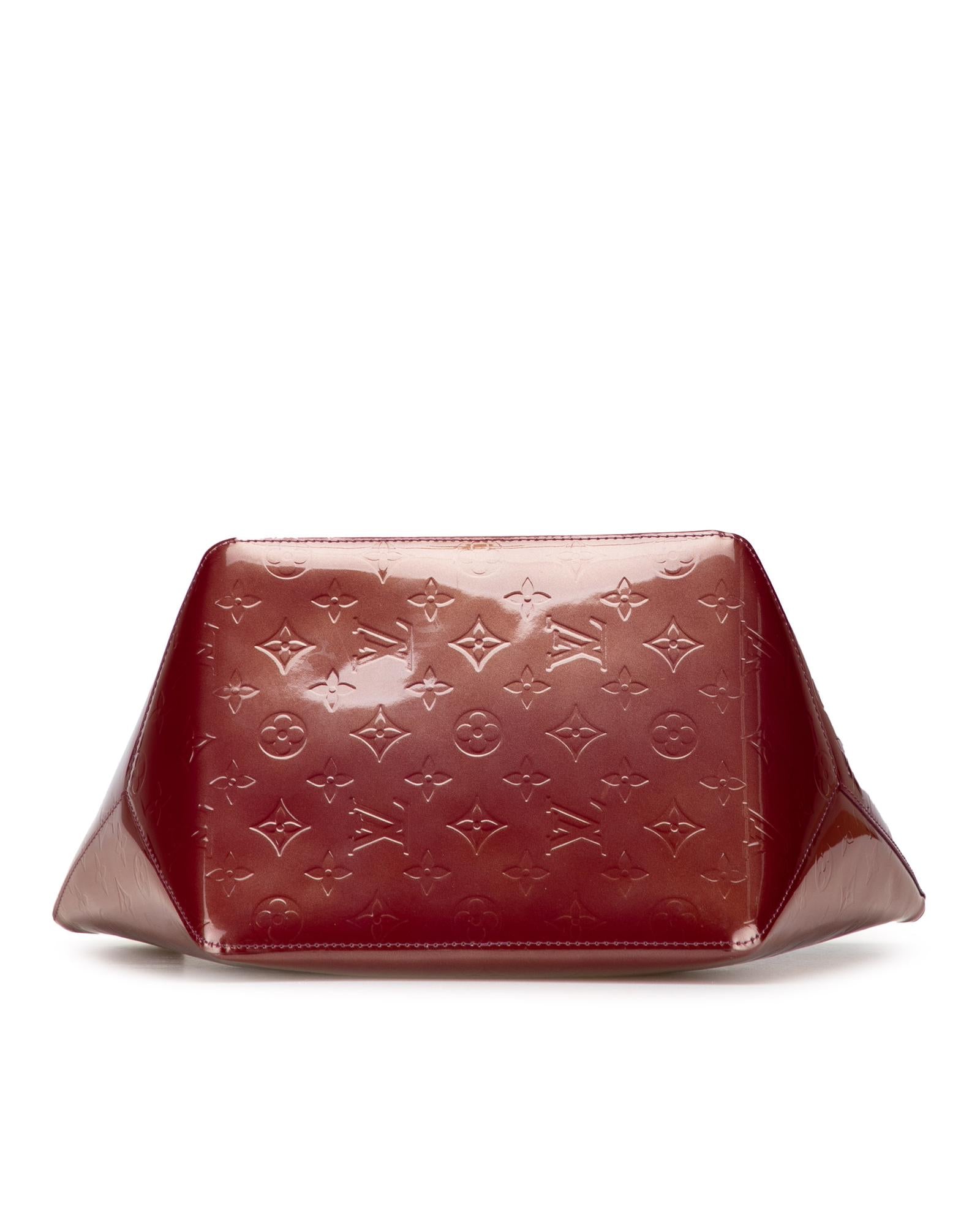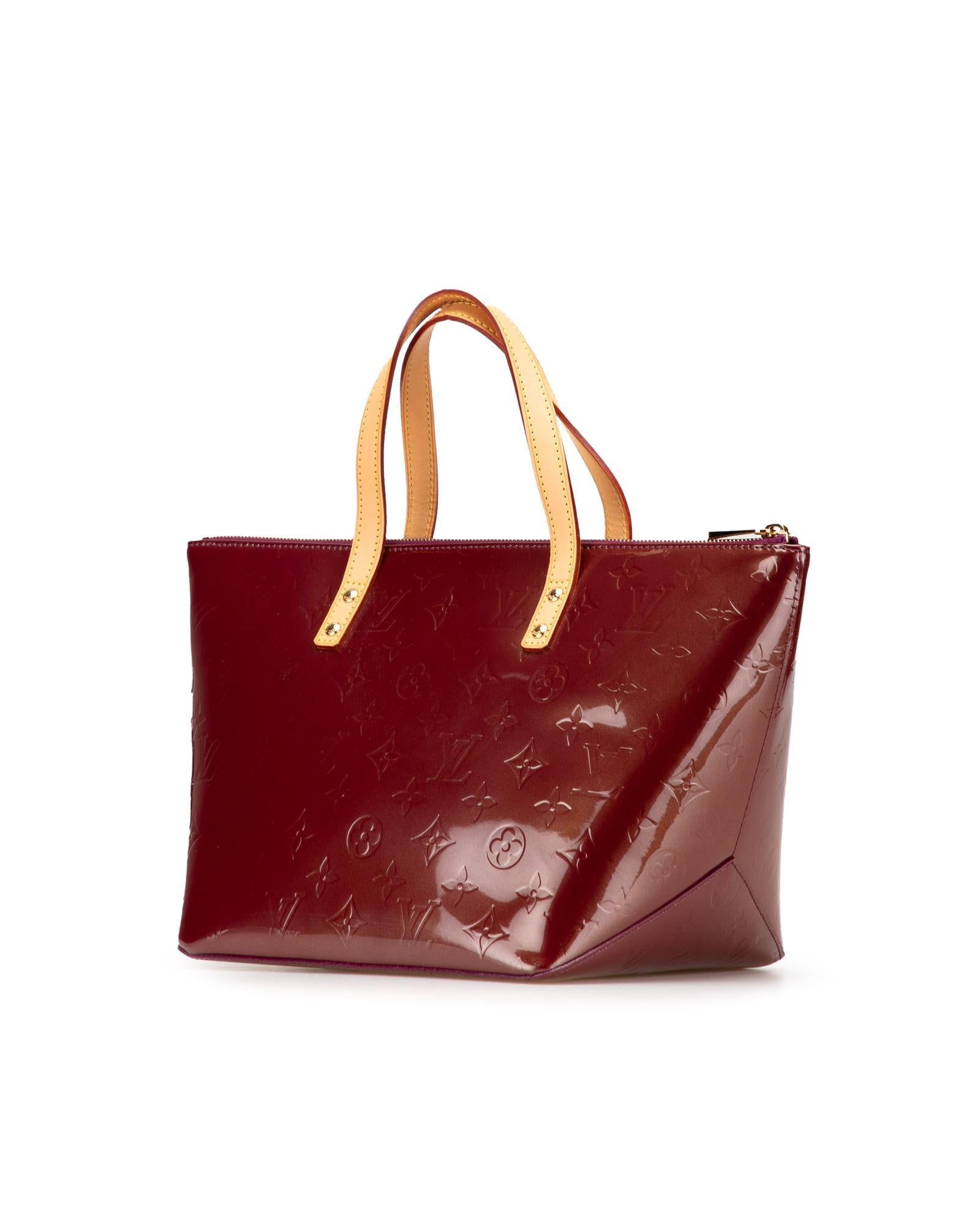 The Bellevue PM features a vernis leather body flat vachetta leather handles a top zip closure and interior slip pocketsBrand: Louis Vuitton Vintage