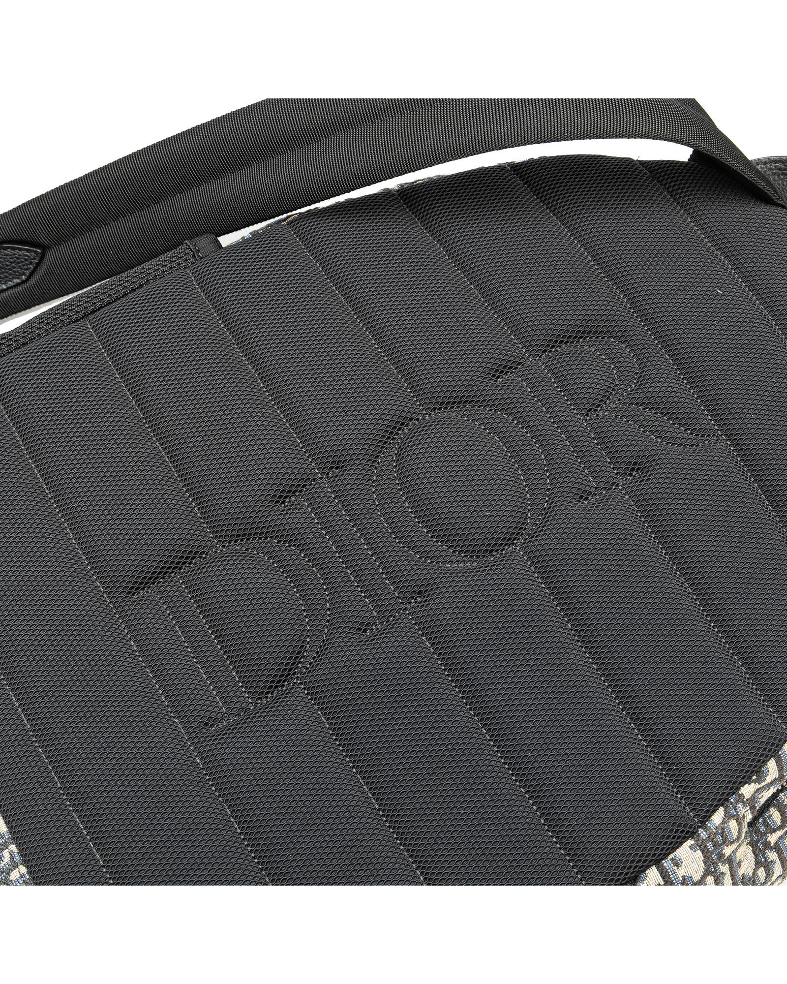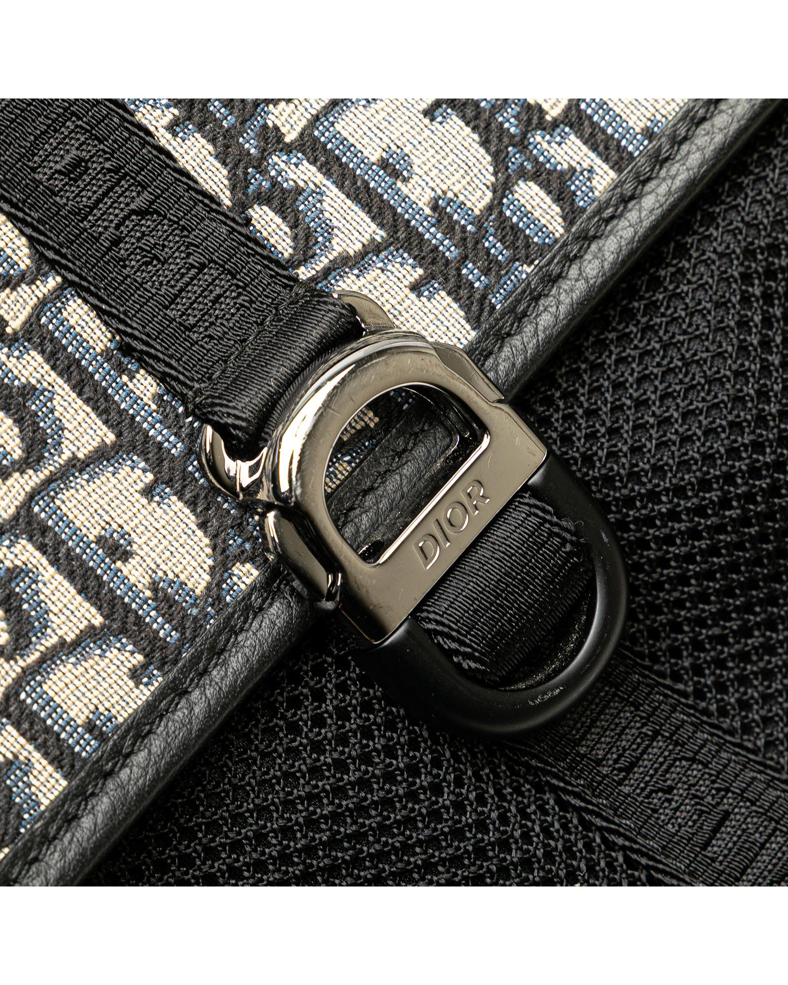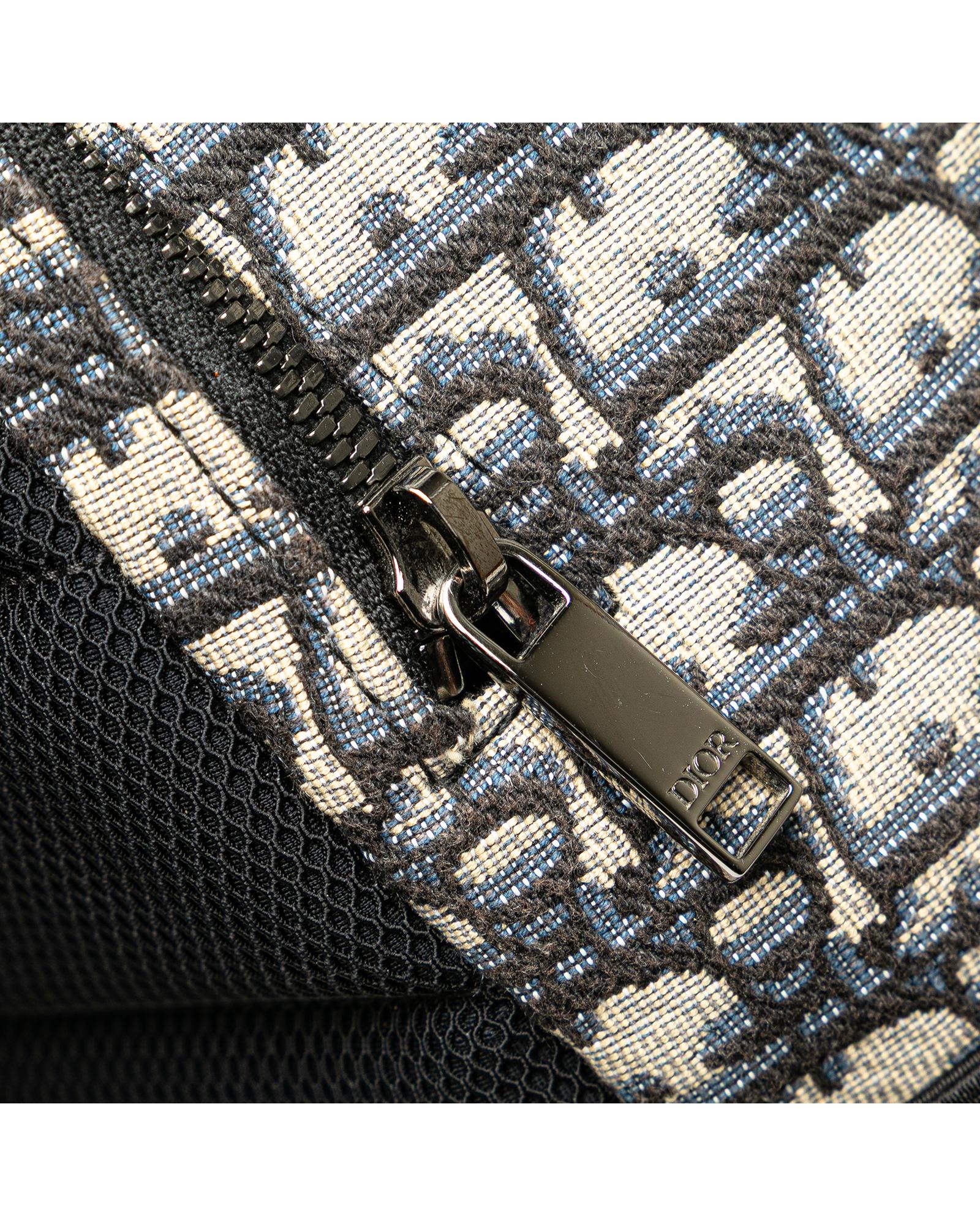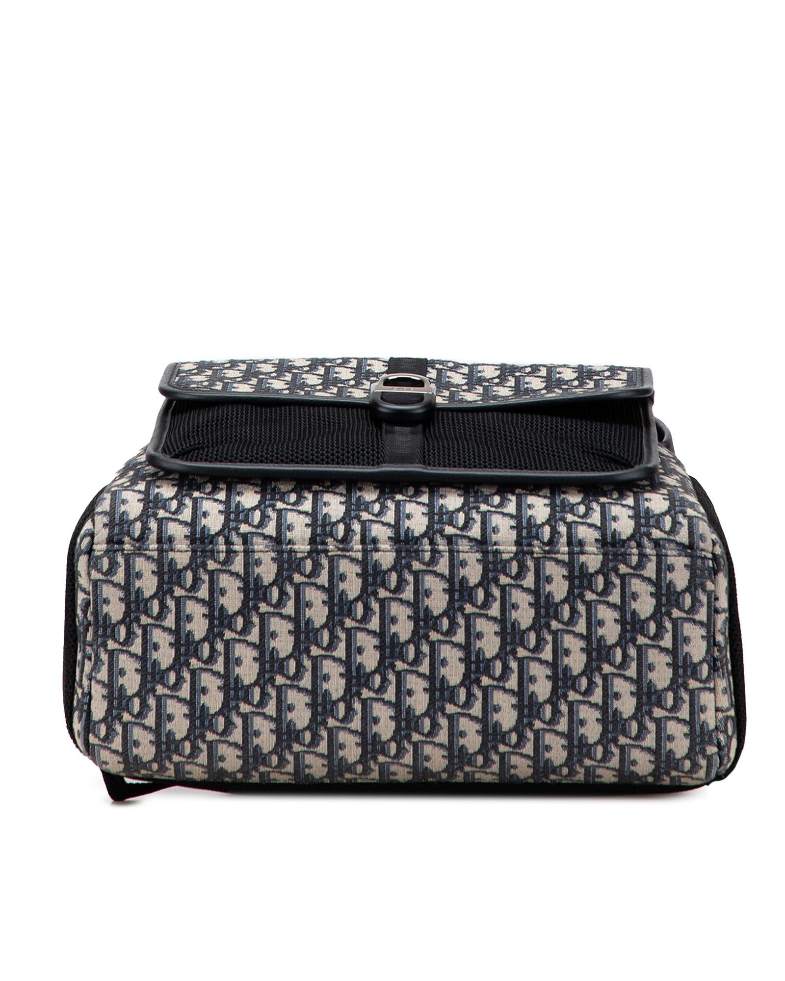 This backpack features a canvas body with leather trim a flat leather top handle adjustable flat back straps a top zip closure a top zip compartment for a laptop exterior side and front zip pockets and an interior slip pocket.