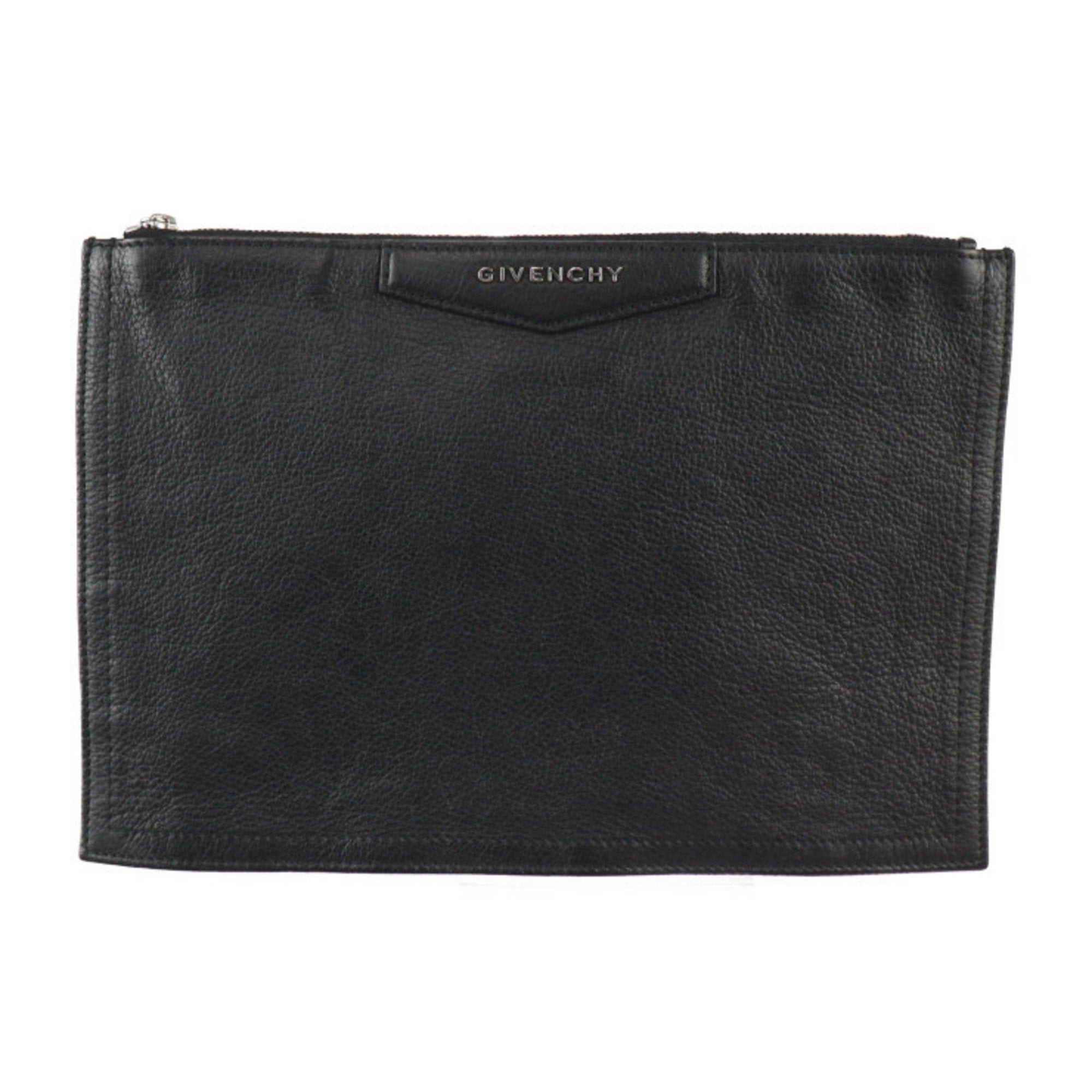 Brand: Givenchy Model: Color: Black Material: Leather Inclusions: / Dimensions: 19cm x 28cm Serial number: NA Country of origin: Italy Condition: AB - good condition. The Givenchy black leather clutch is an elegant and versatile accessory designed for both men and women. Known for their minimalist sophisticated design Givenchy products often exude a modern urban aesthetic. The black leather clutch is likely to feature the brand's distinctive detailing and craftsmanship offering a stylish and timeless option for a variety of occasions. The exterior is lightly striped. The interior has a slight stain. Despite this the item is in very good condition. We recommend that you look at all the pictures before making your purchase to ensure that you are satisfied with the condition of the item.