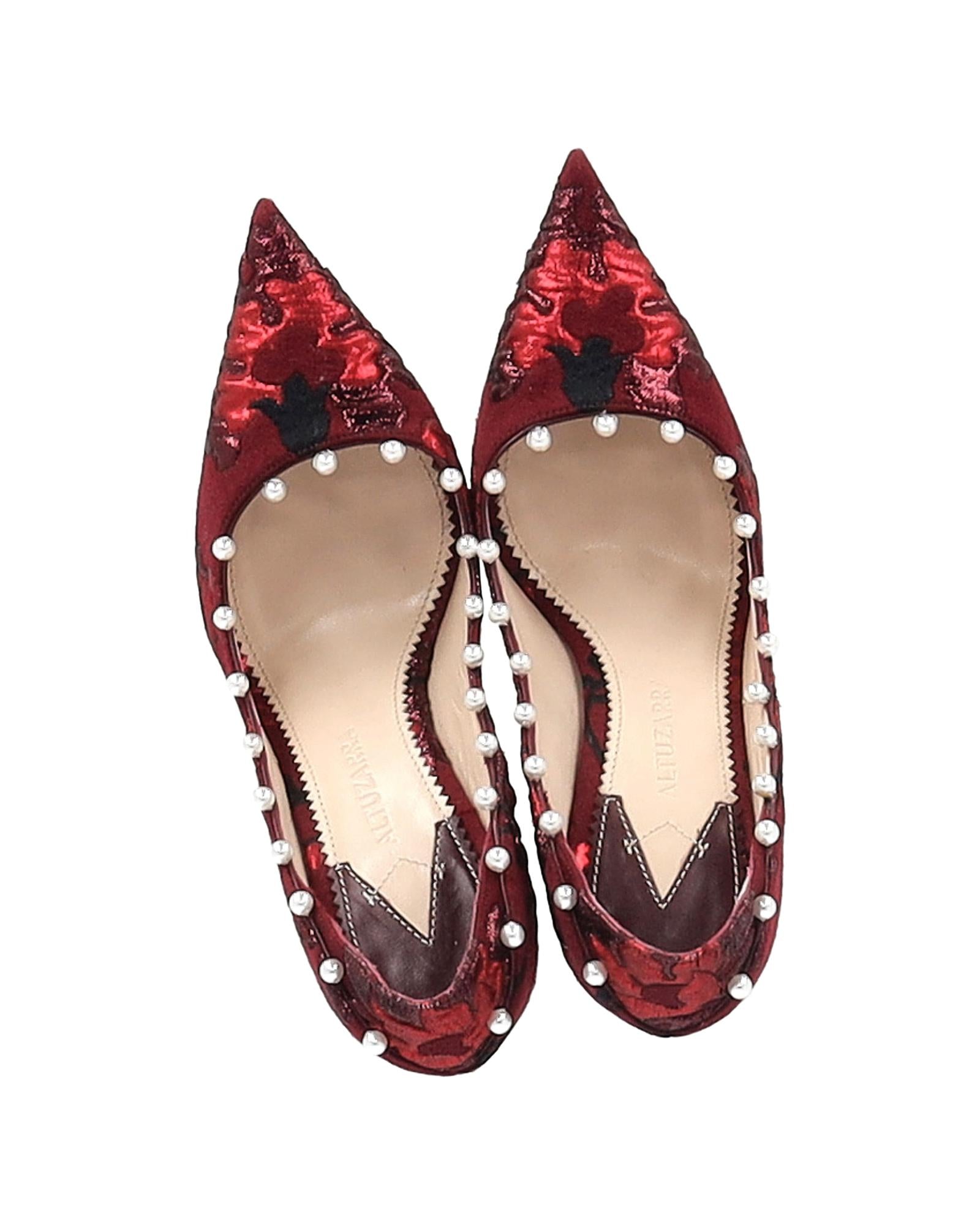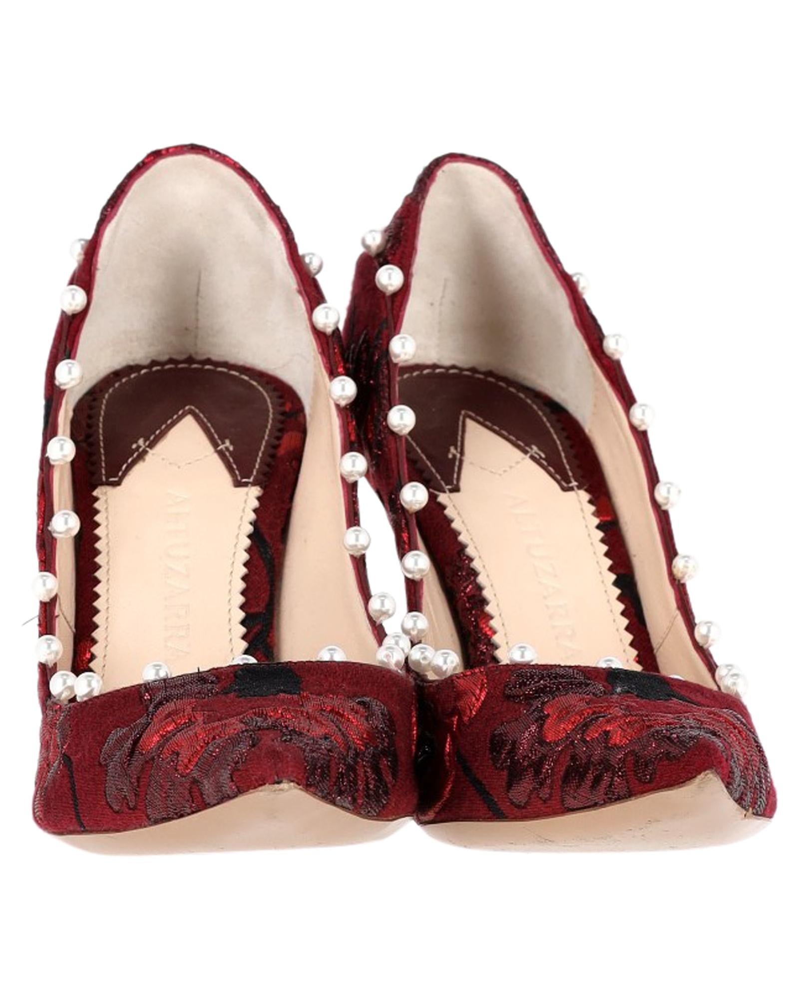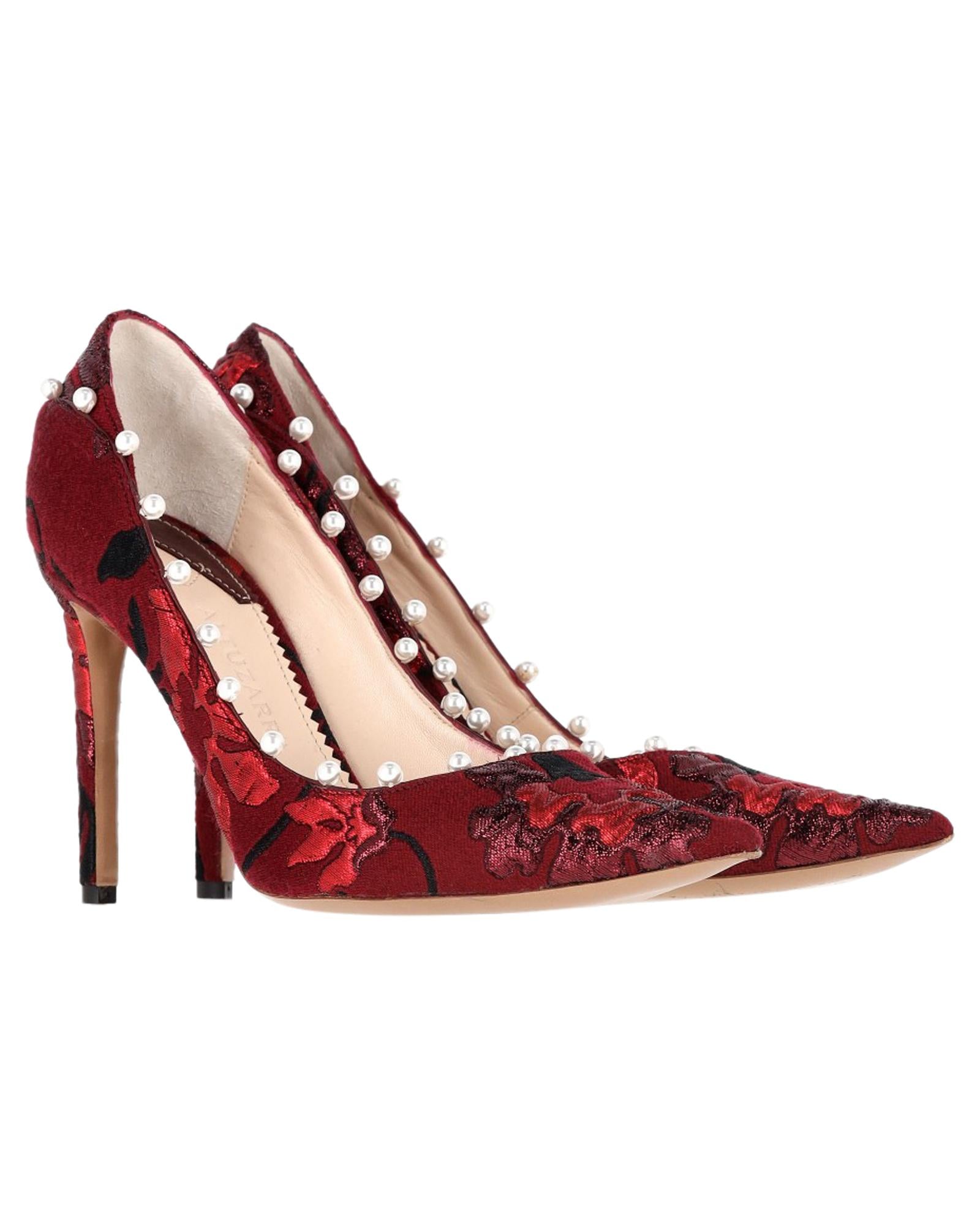 - Aquazzura Pearl Embellished Pumps in Red Cotton