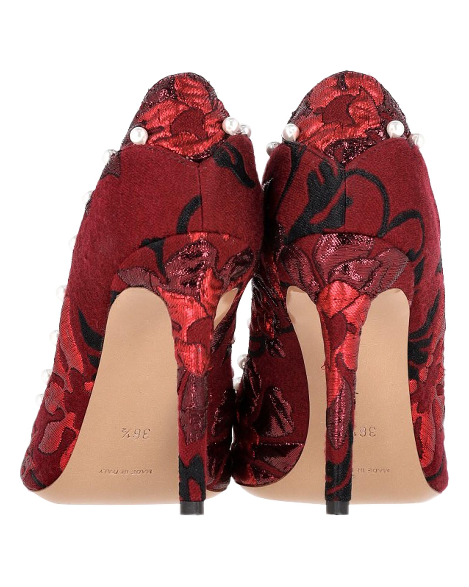 Pre-owned Floral Brocade Pumps Pearl Detail