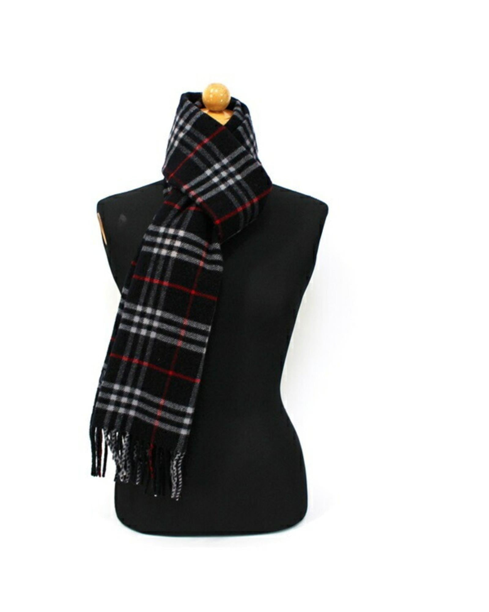 Pre-owned Luxurious Woven Scarf with Classic Plaid Design and Fringe Detail