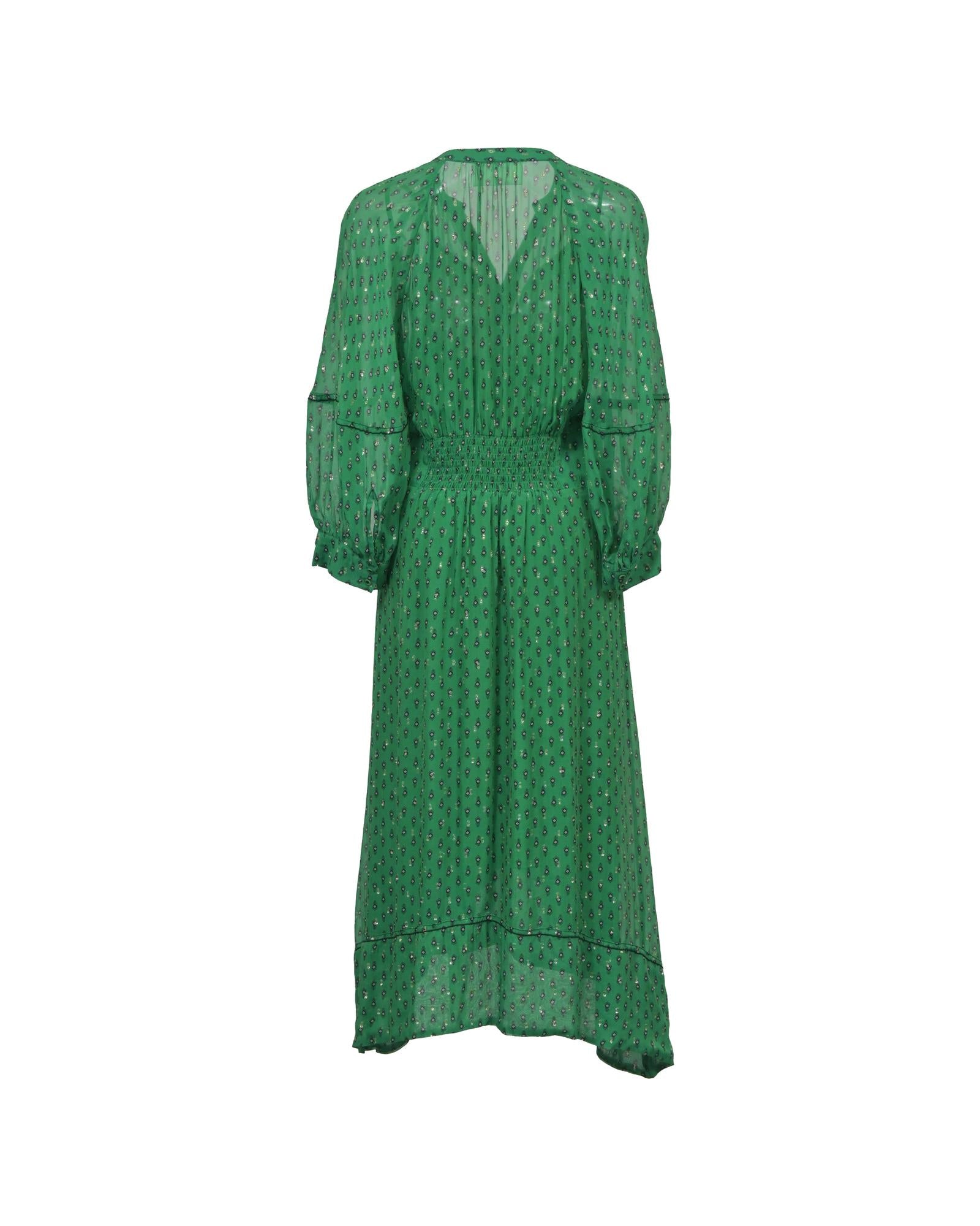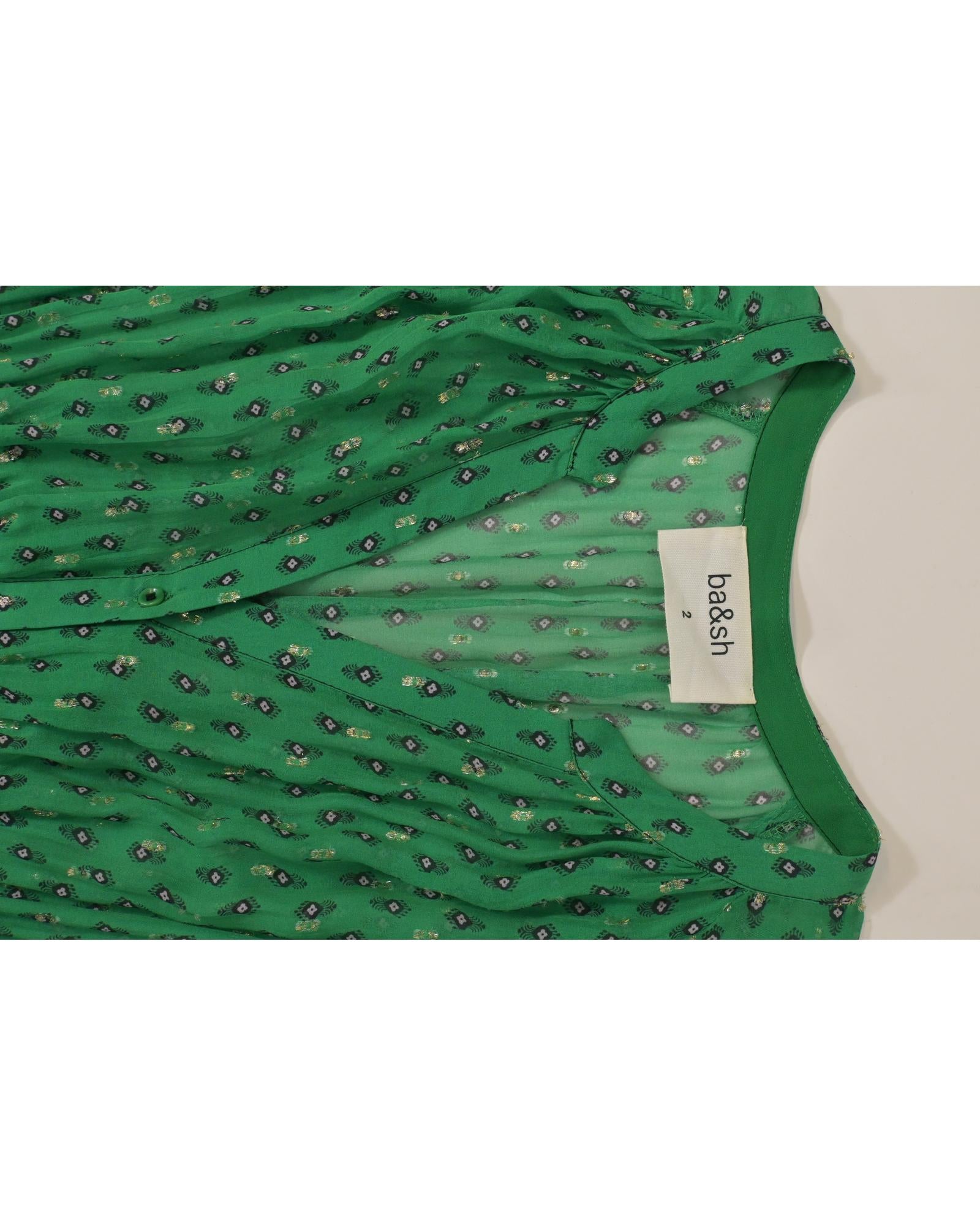 - Ba&Sh Cyana Printed Midi Dress in Green Polyester