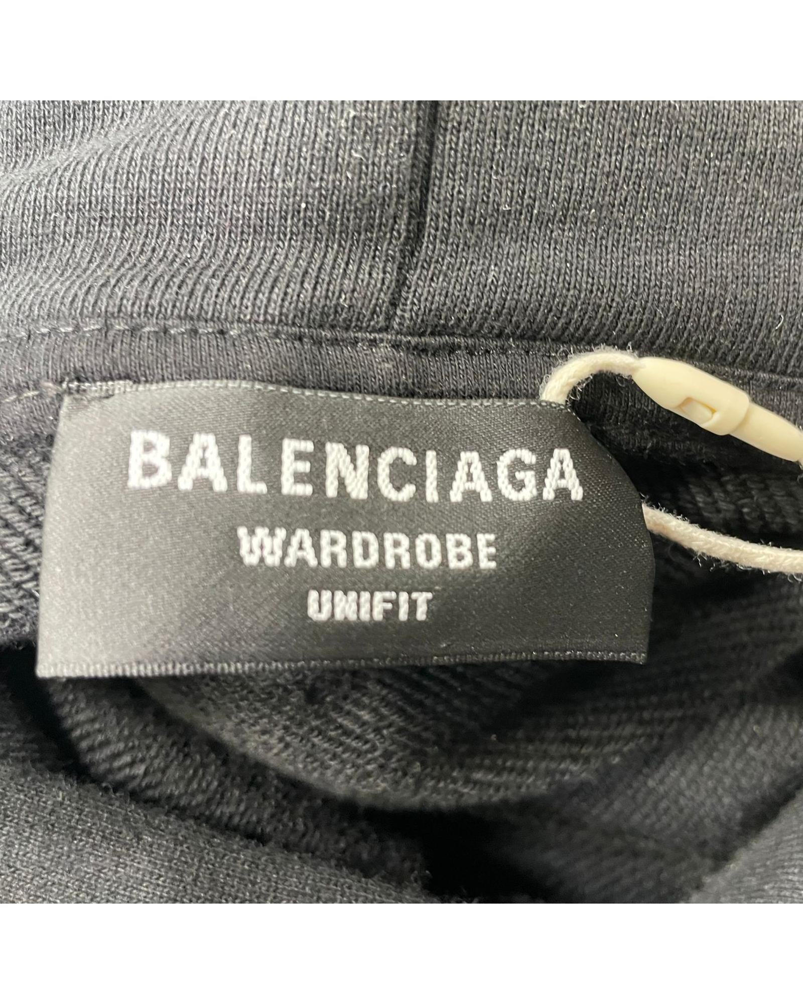 - Balenciaga Back Flip Logo Hoodie in Black Cotton