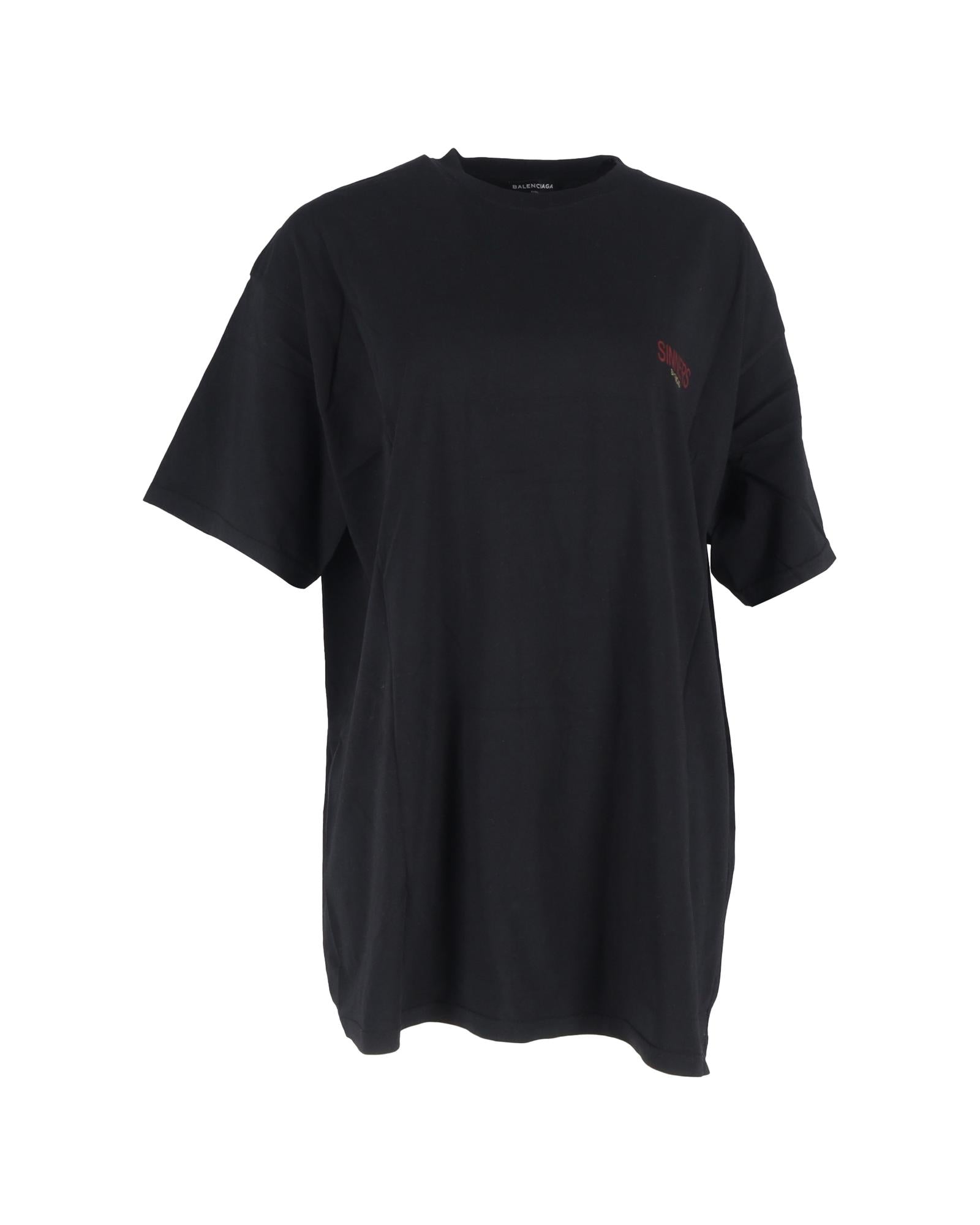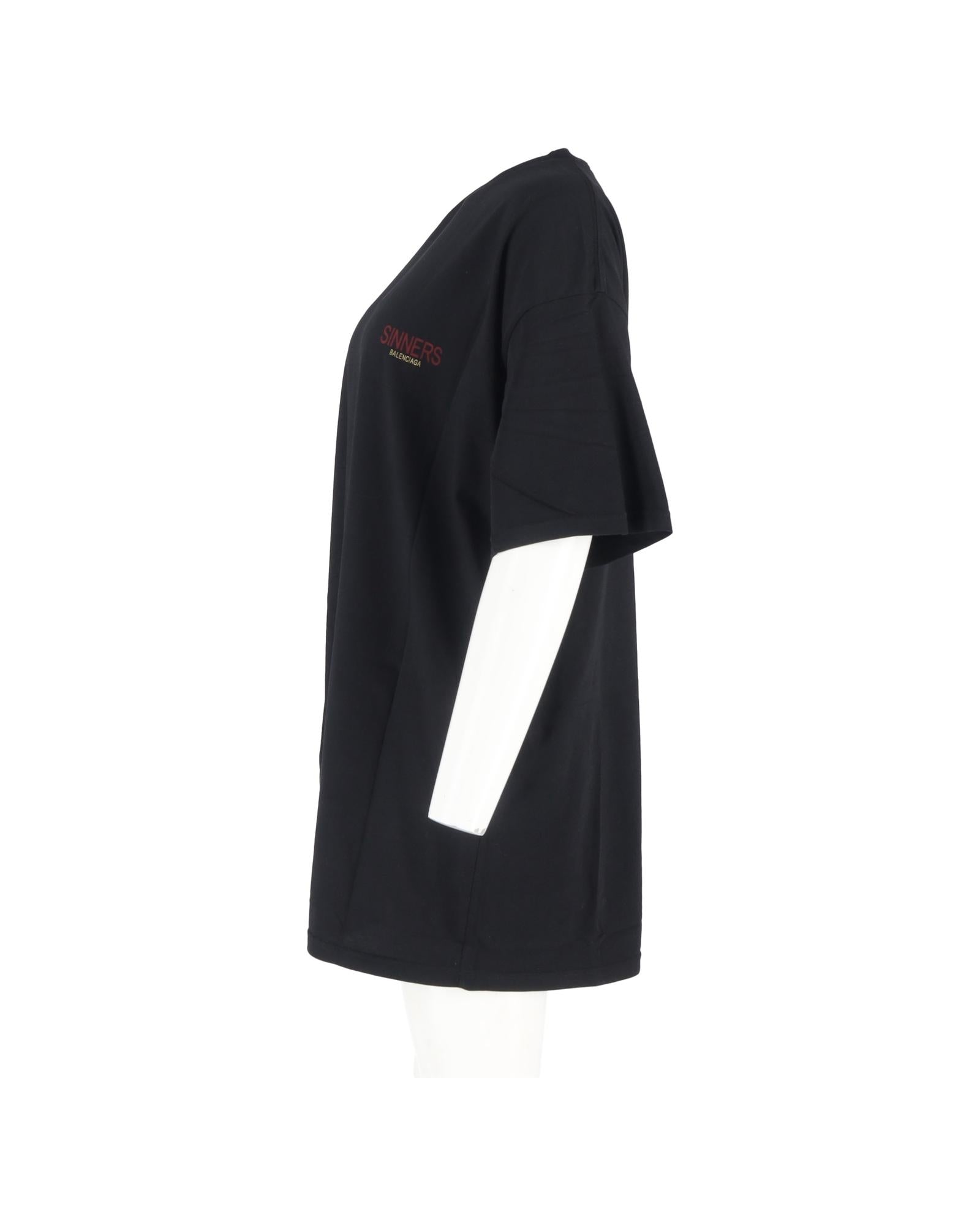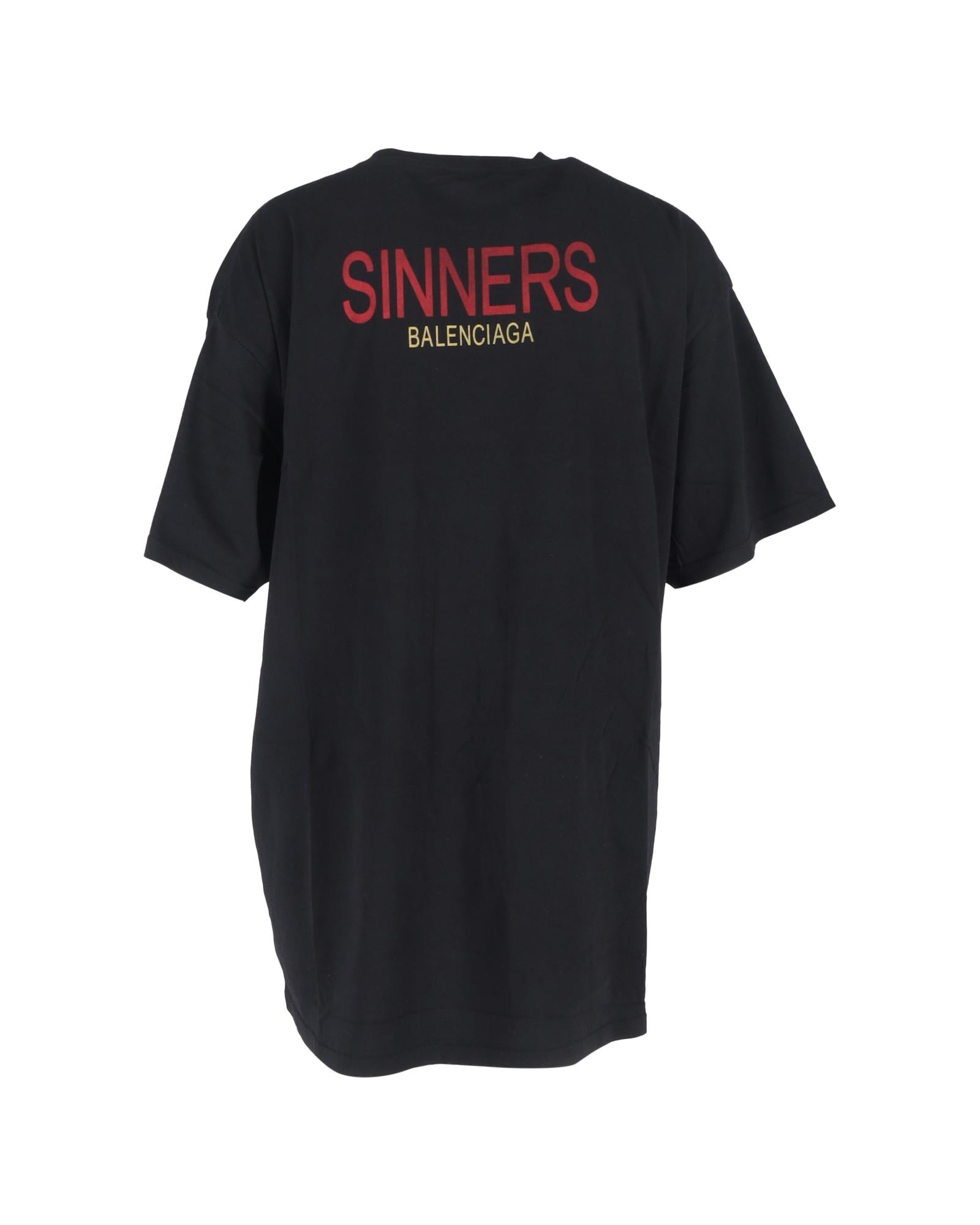 • Balenciaga Sinners Print Logo Tee in Black Cotton
