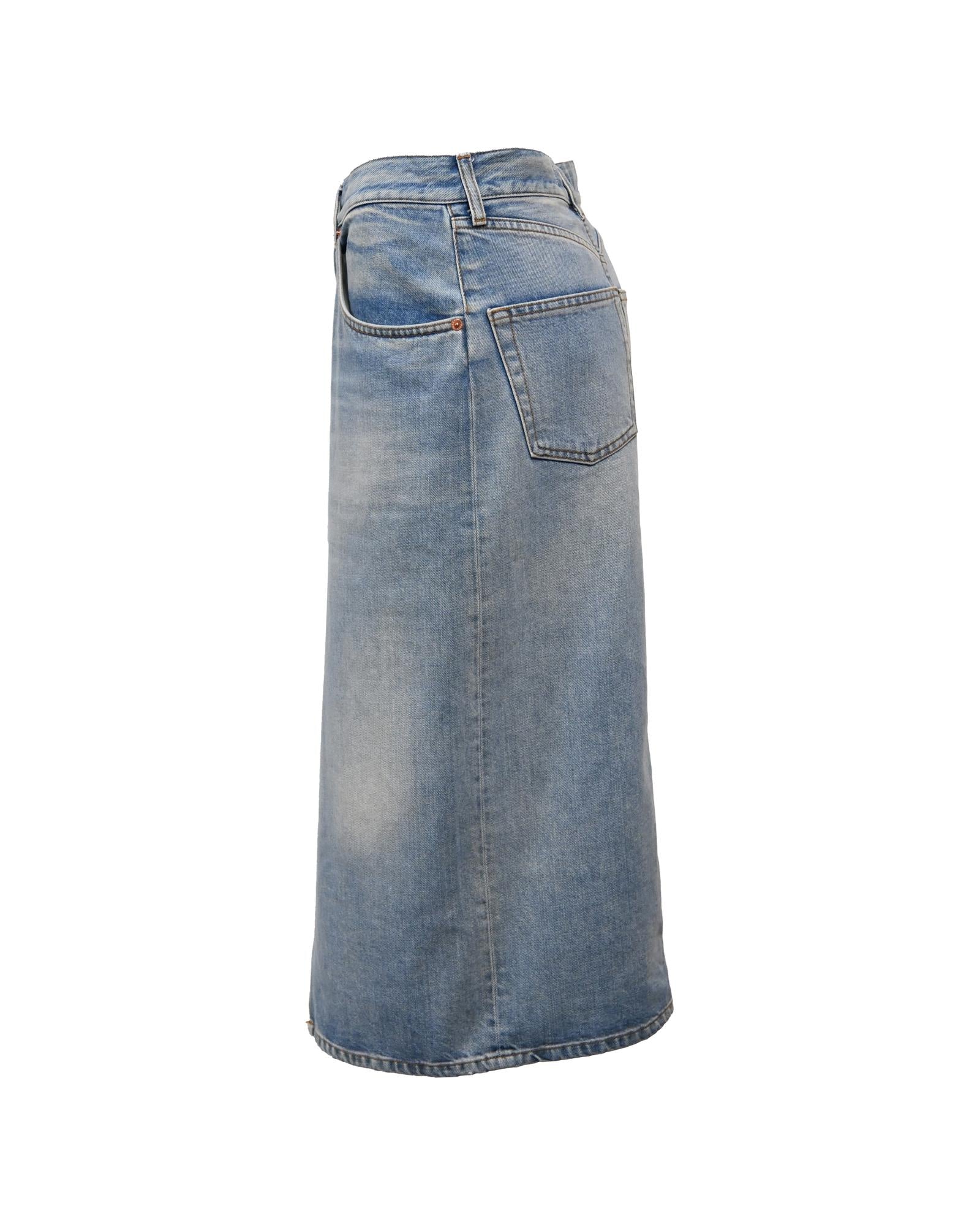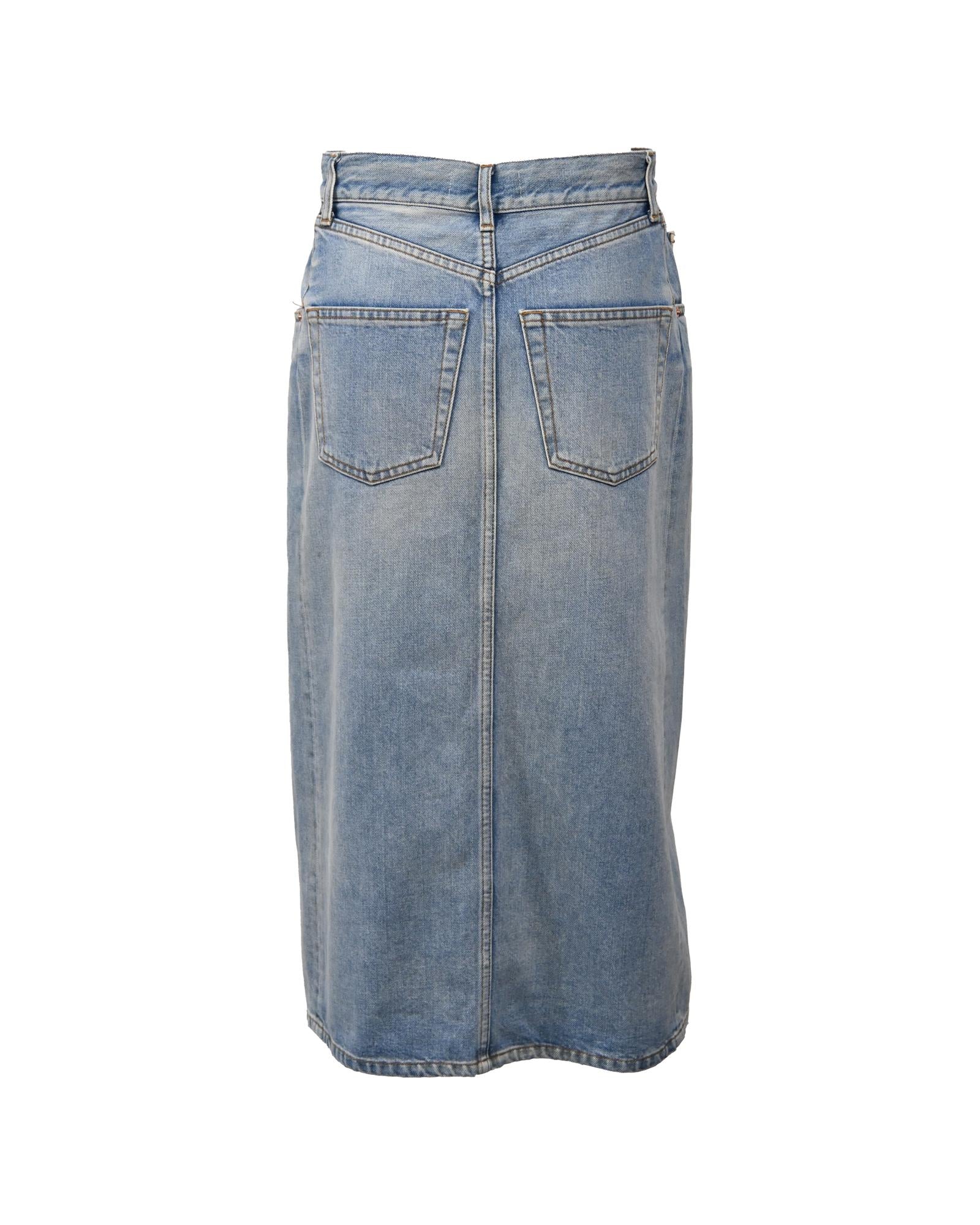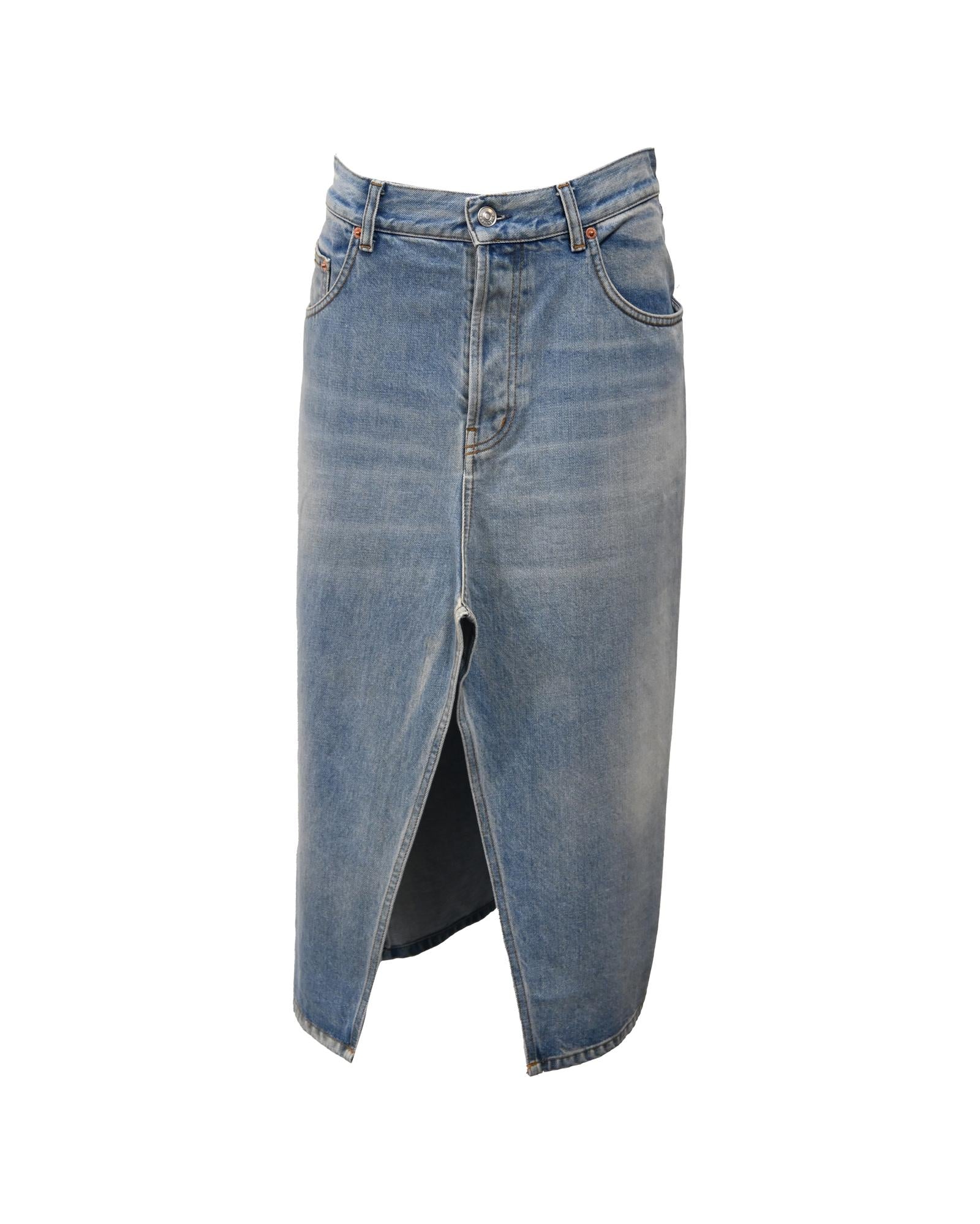 - Balenciaga Midi Front Slit Skirt in Blue Cotton Denim