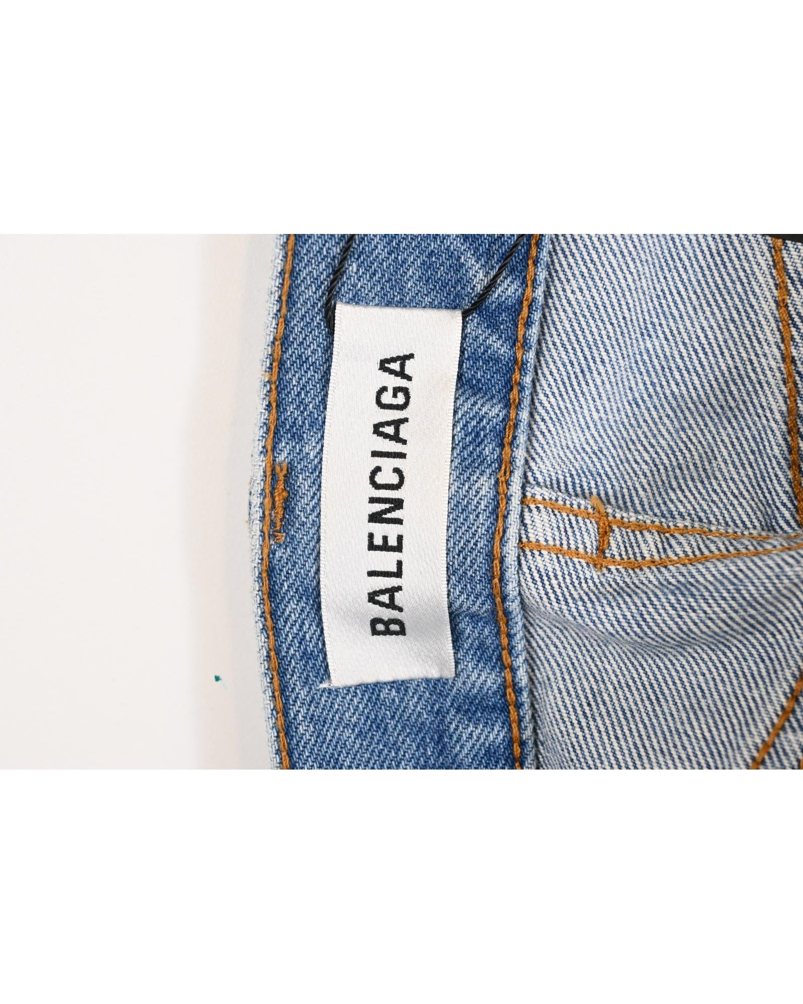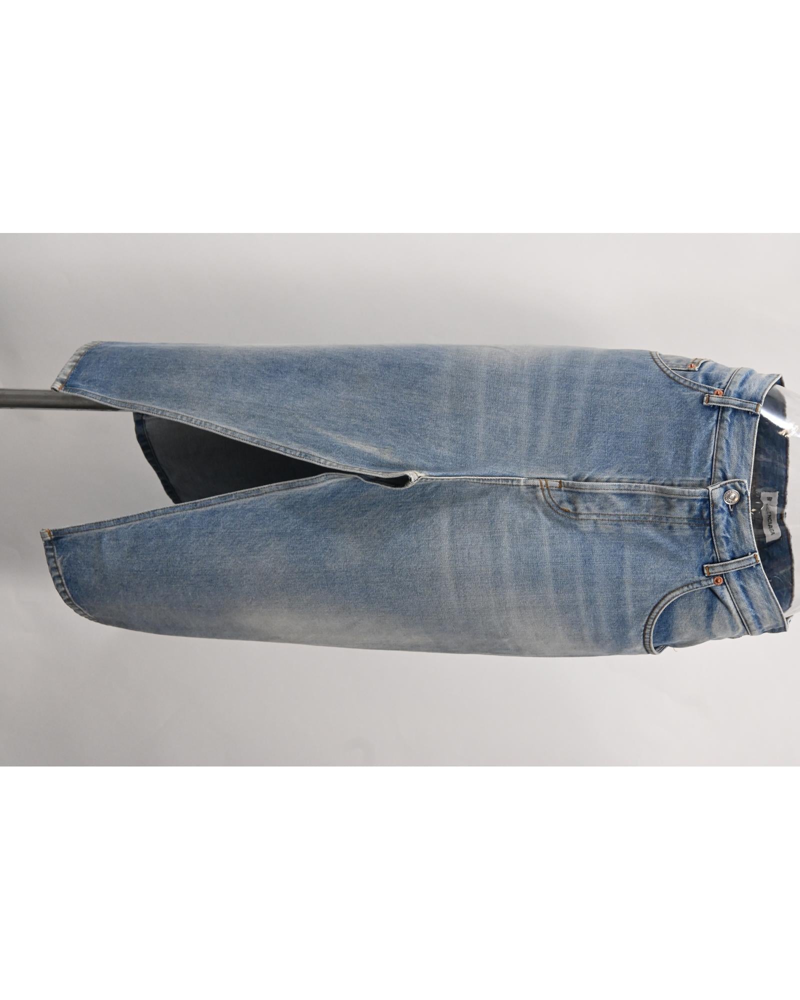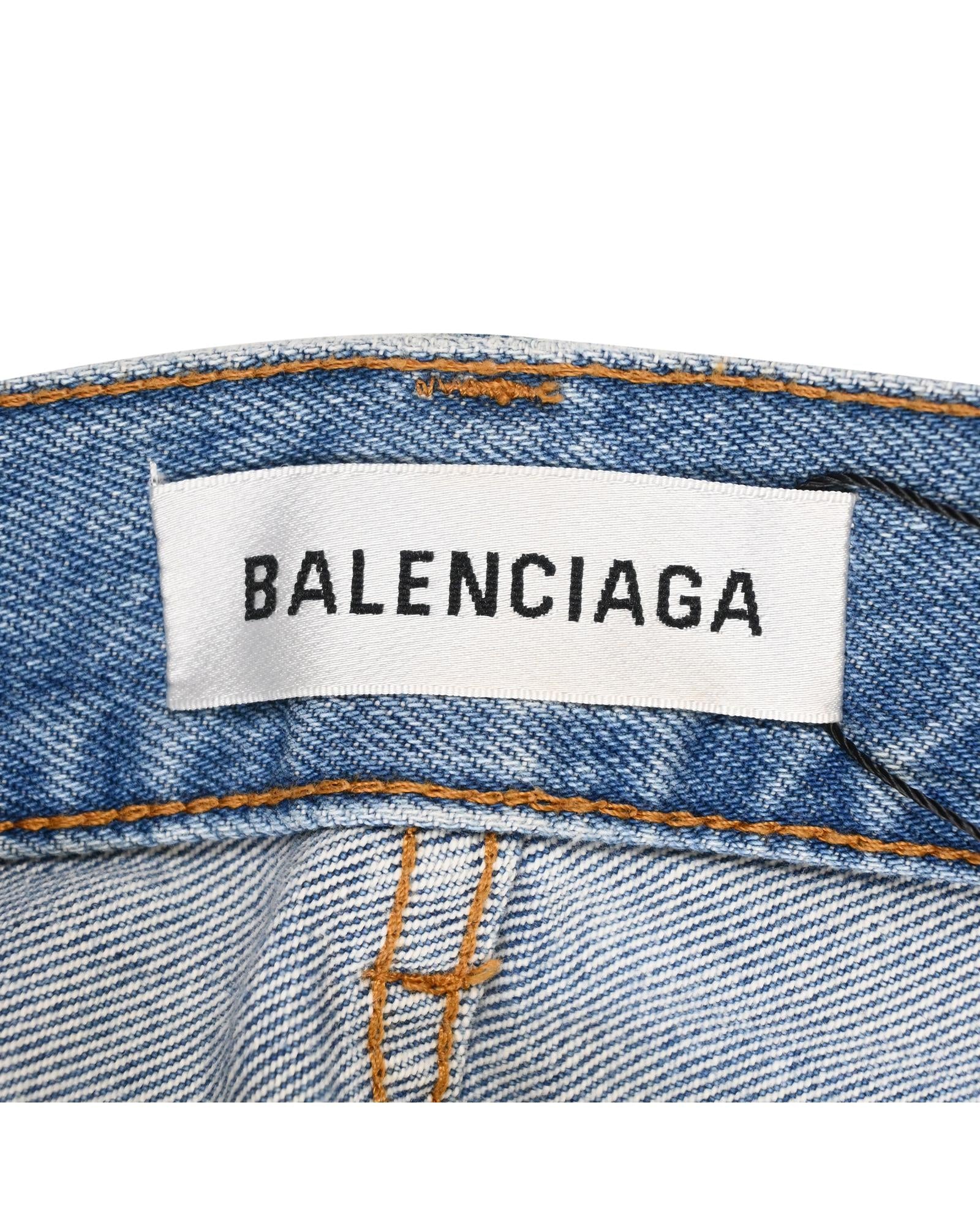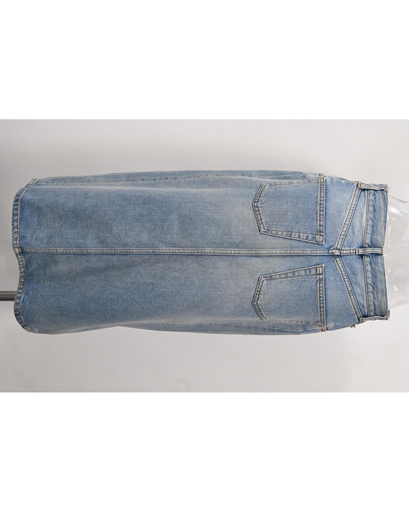 - Balenciaga Midi Front Slit Skirt in Blue Cotton Denim