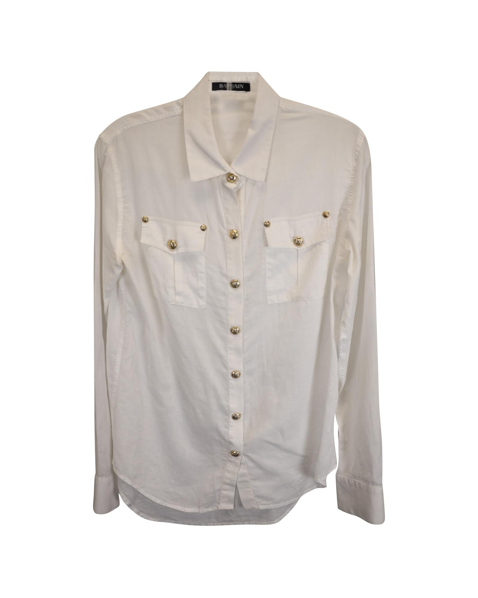 Pre-owned Long Sleeve Collared Shirt Gold Buttons