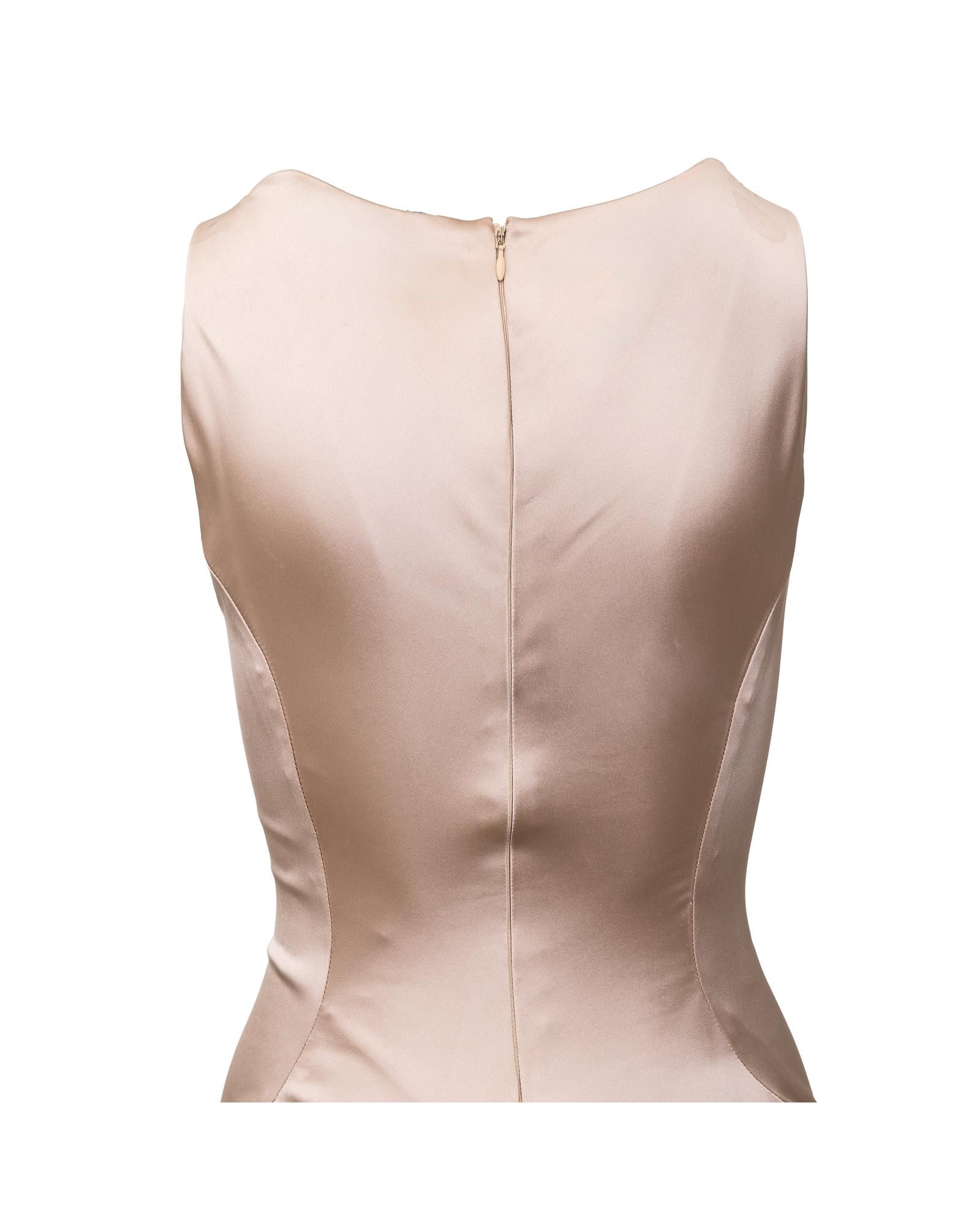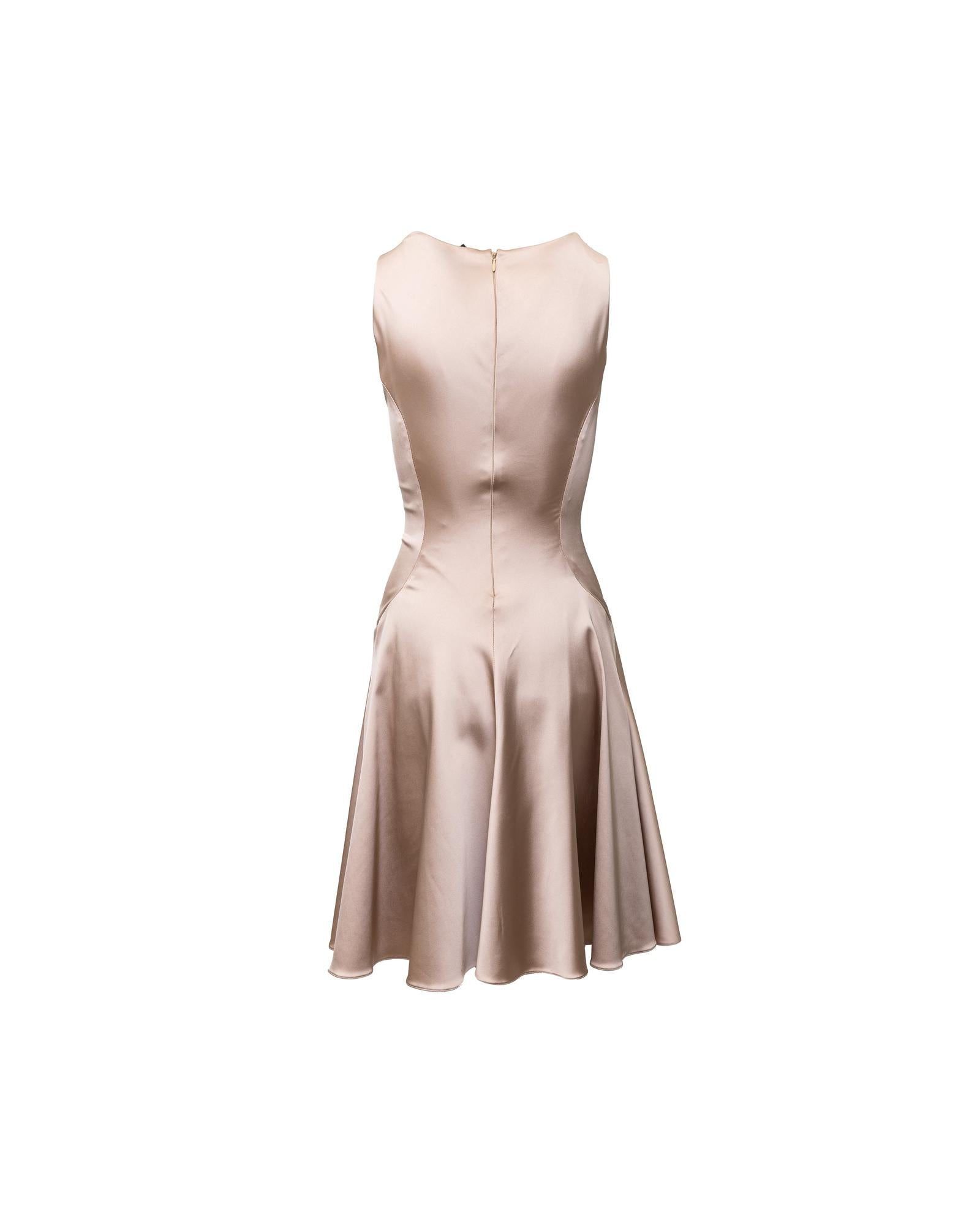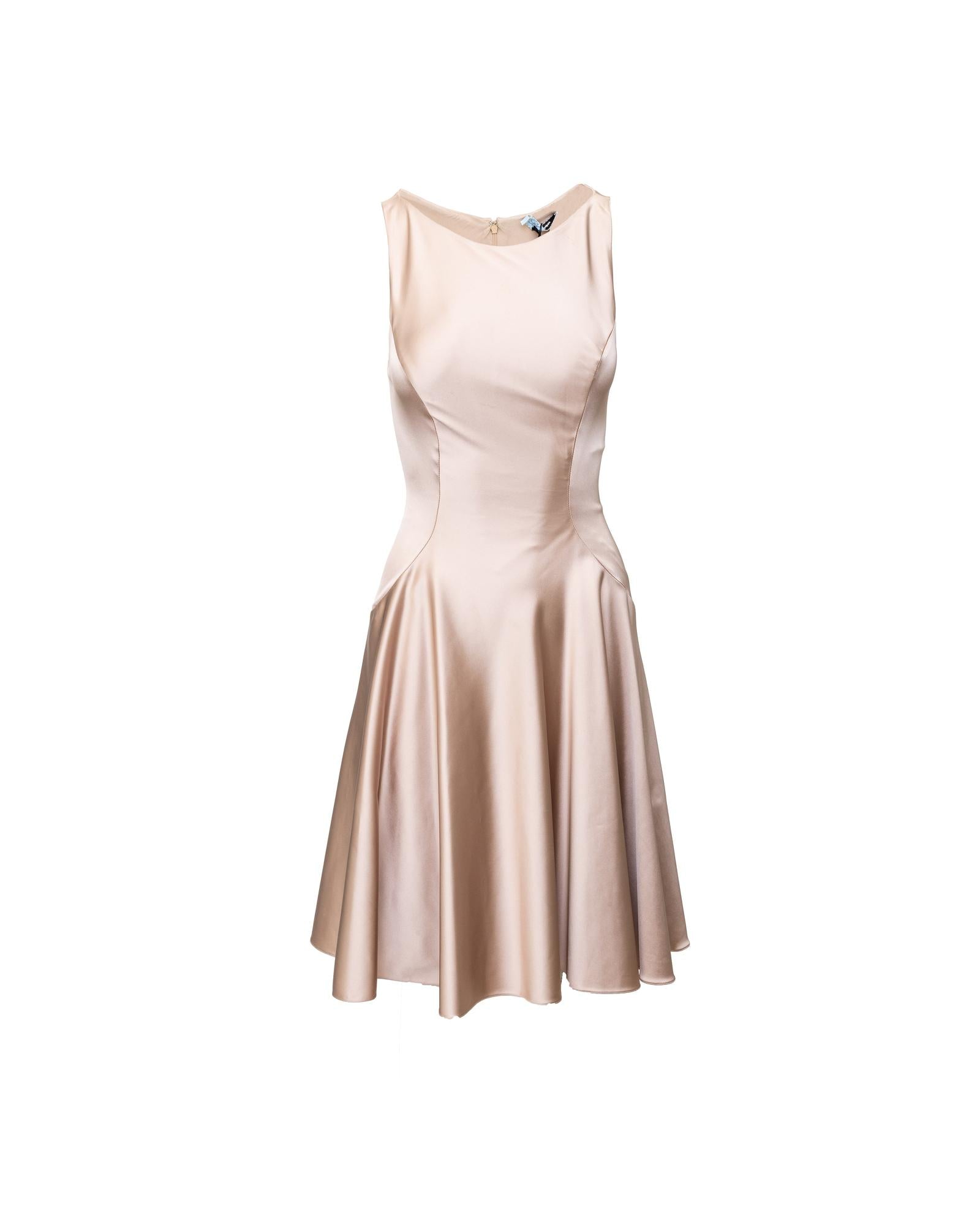 Sleeveless Satin Dress with Pleated Fit and Boatneck