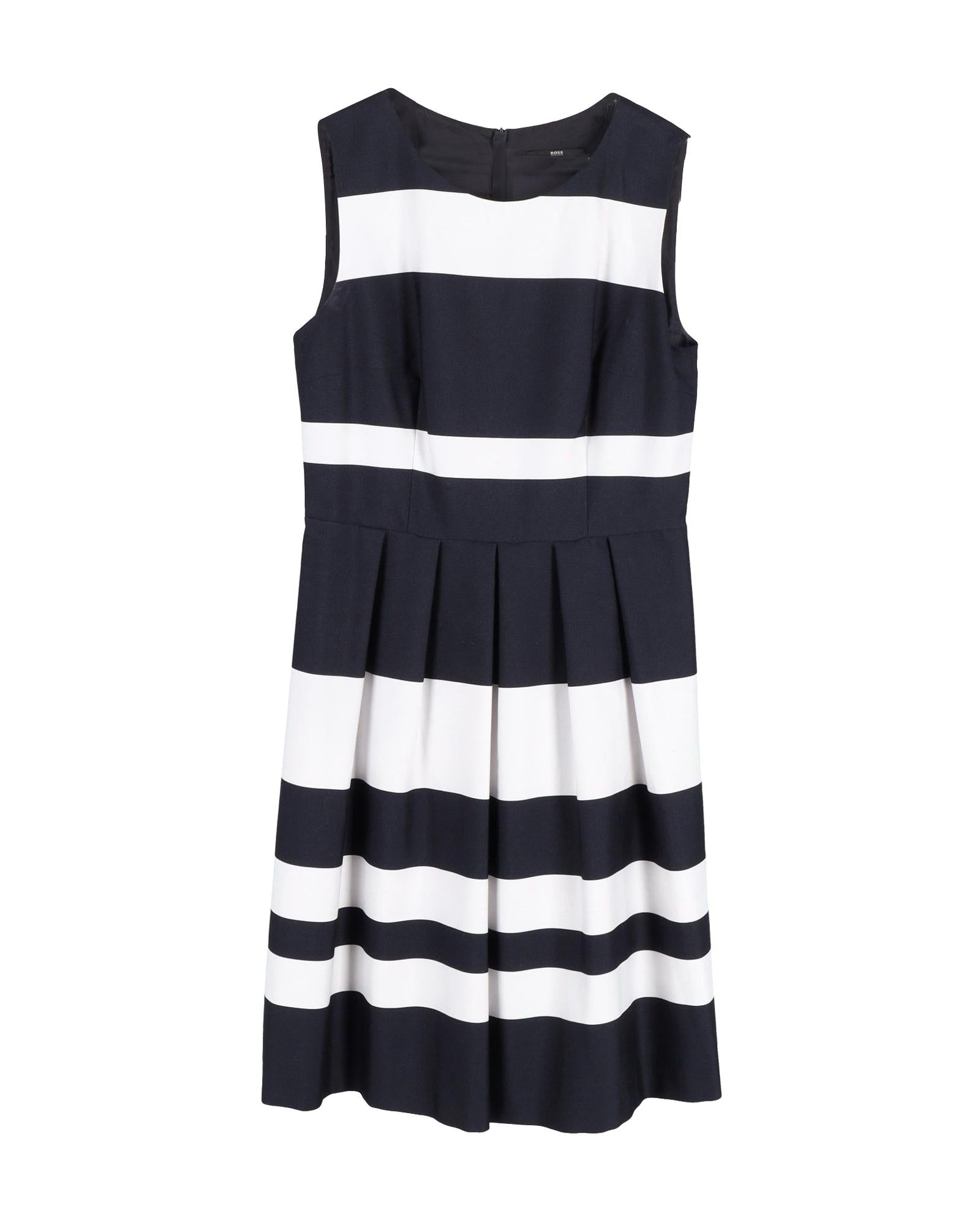 - Boss by Hugo Boss Stripe Pleated Mini Dress in Blue Polyester