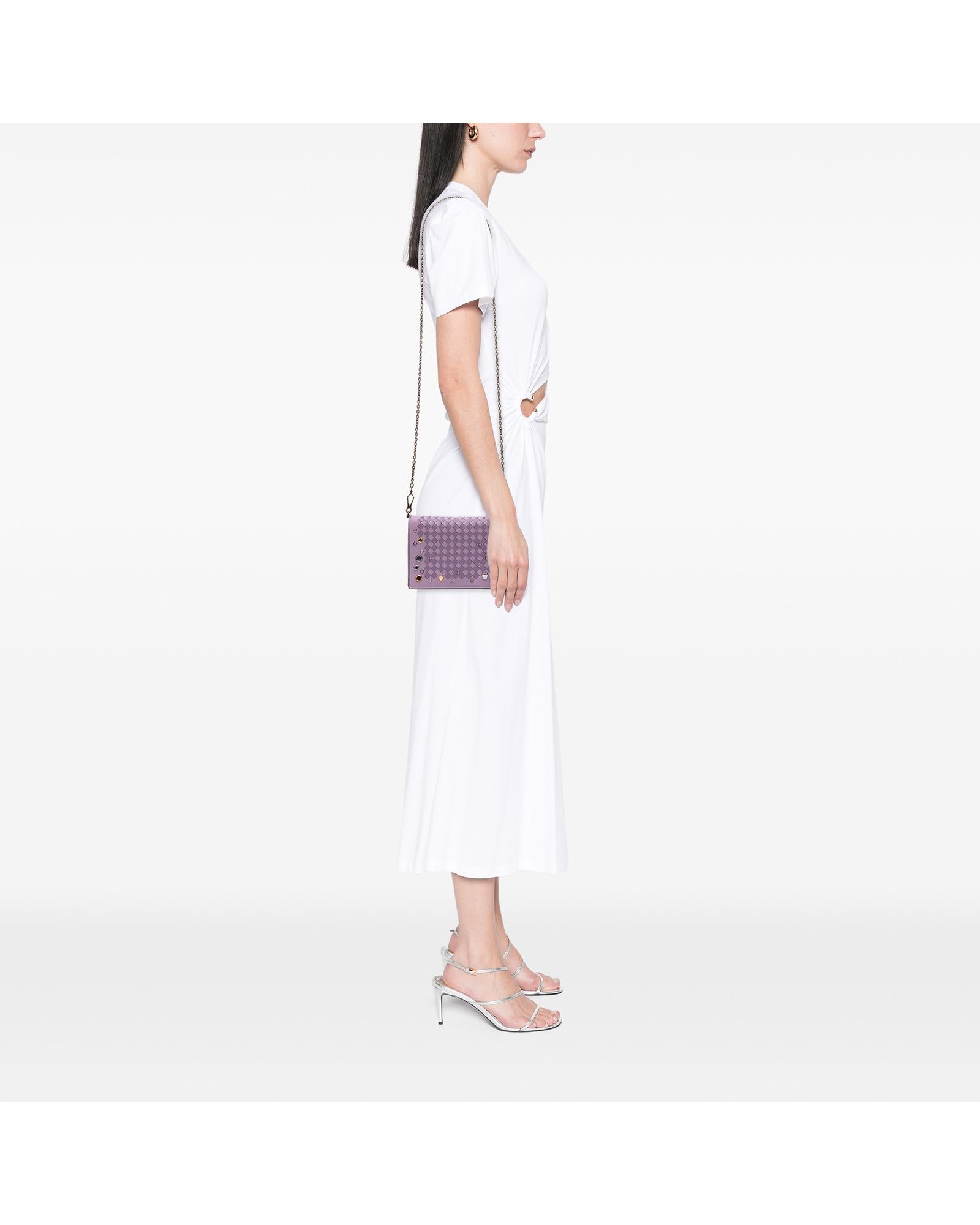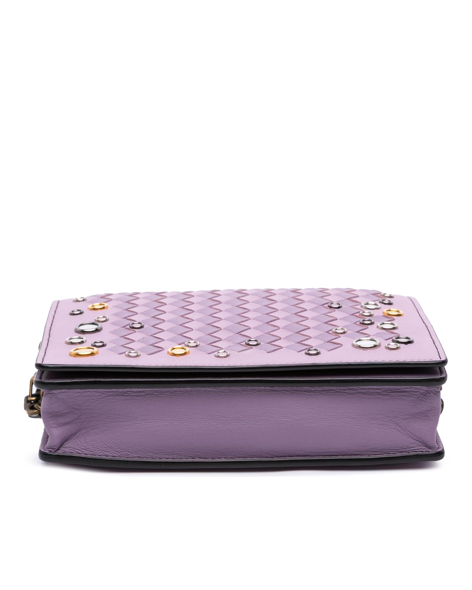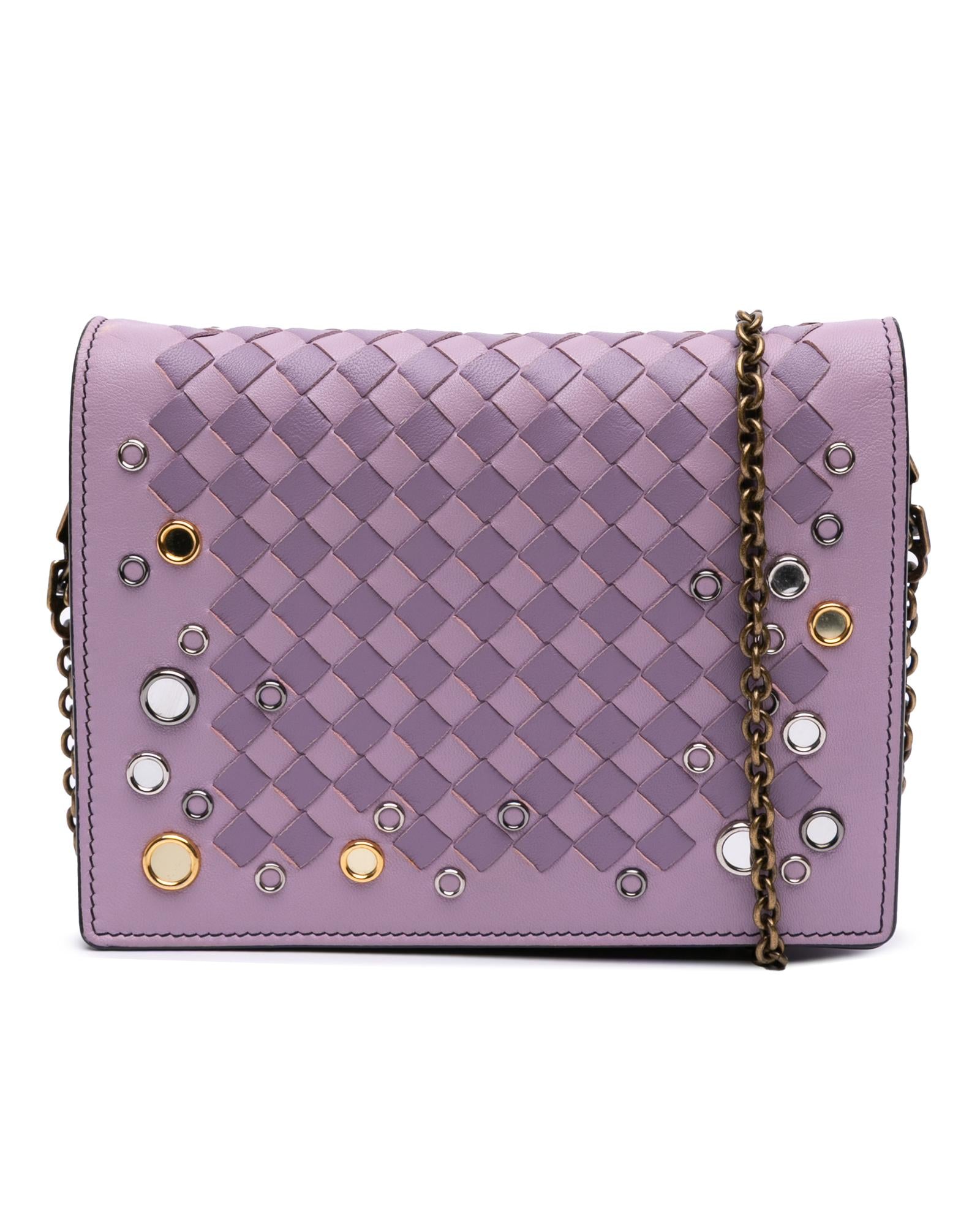 This crossbody features a nappa leather body with metal embelishments a chain link strap front flap with snap closure and an interior zip and slip pockets.Brand: Bottega Veneta Vintage