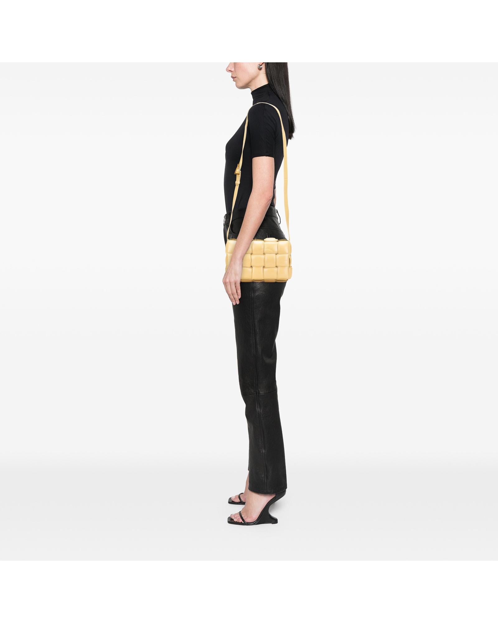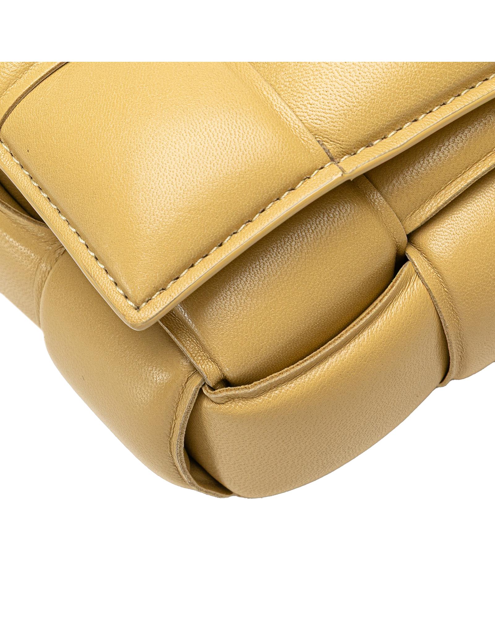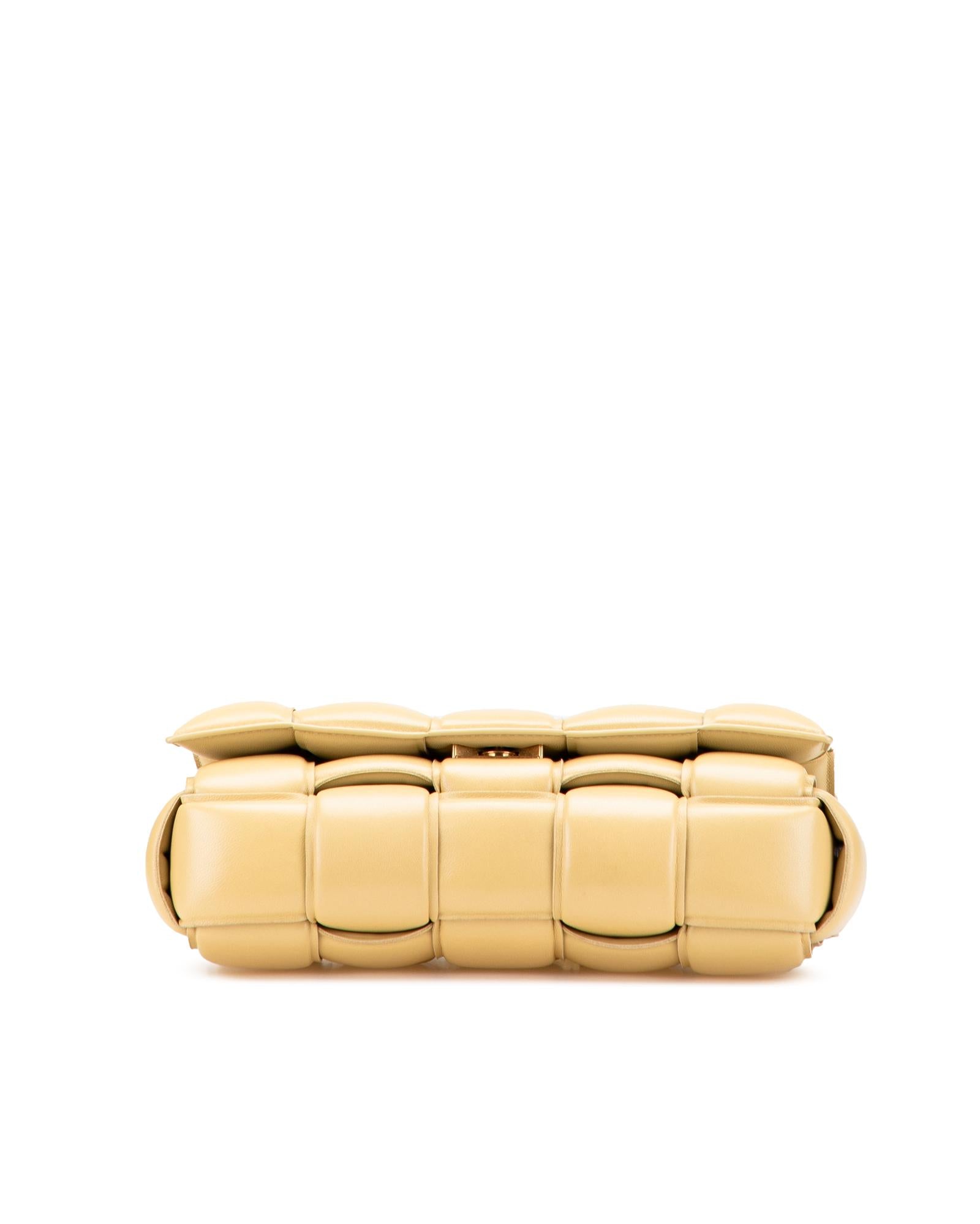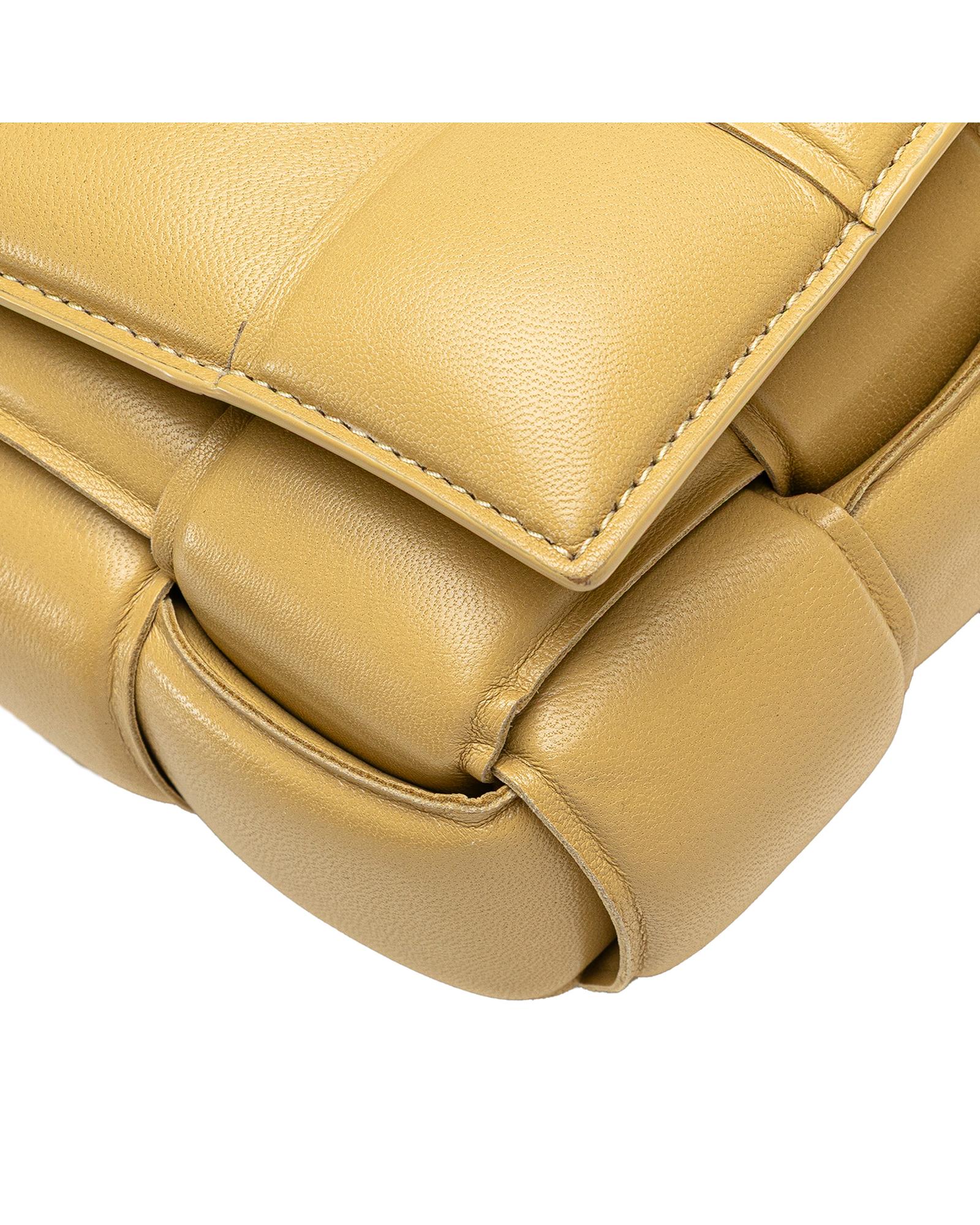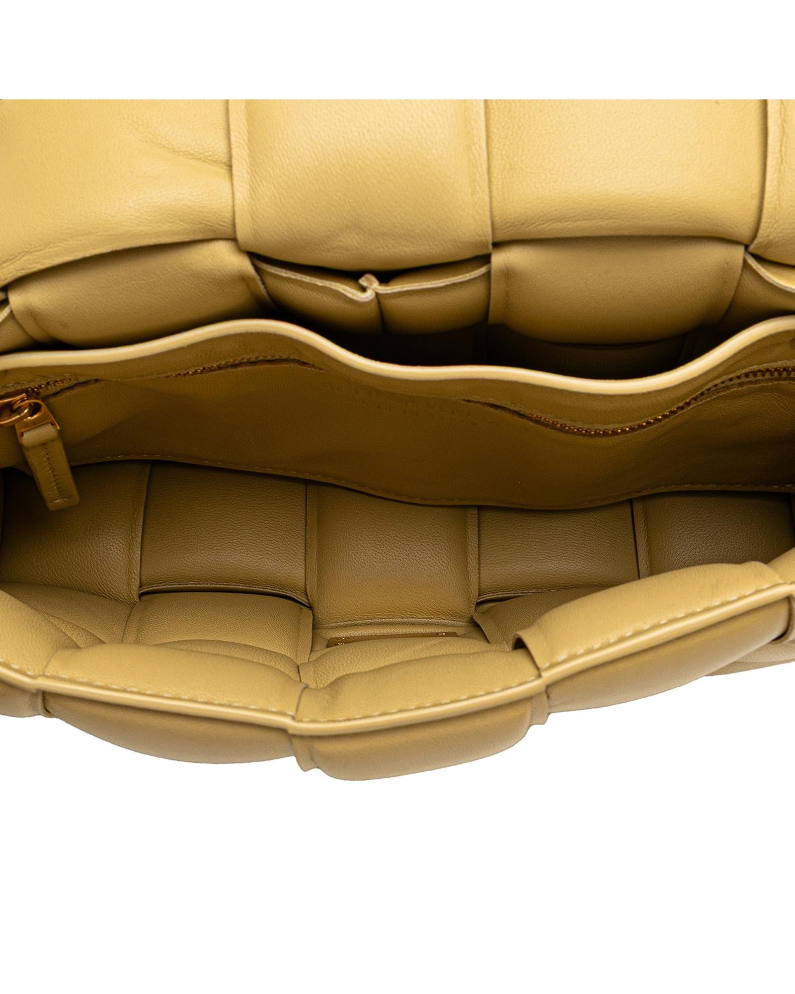 The Padded Cassette features a woven nappa leather body an adjustable flat leather shoulder strap a flap with push lock closure and an interior zip pocket.Brand: Bottega Veneta Vintage