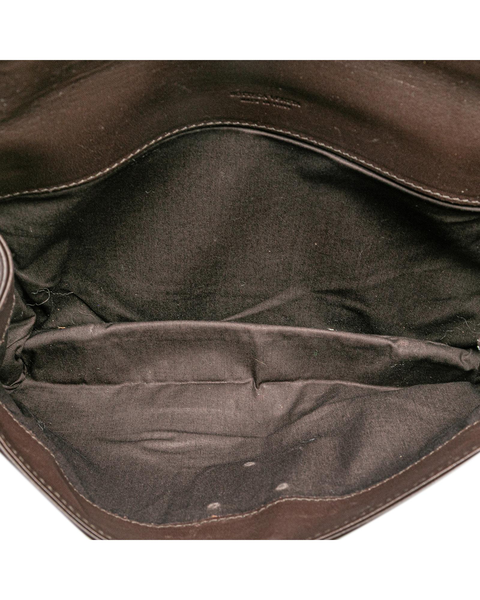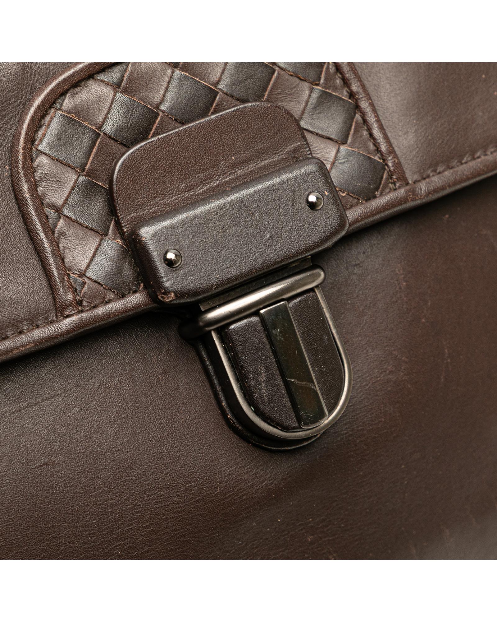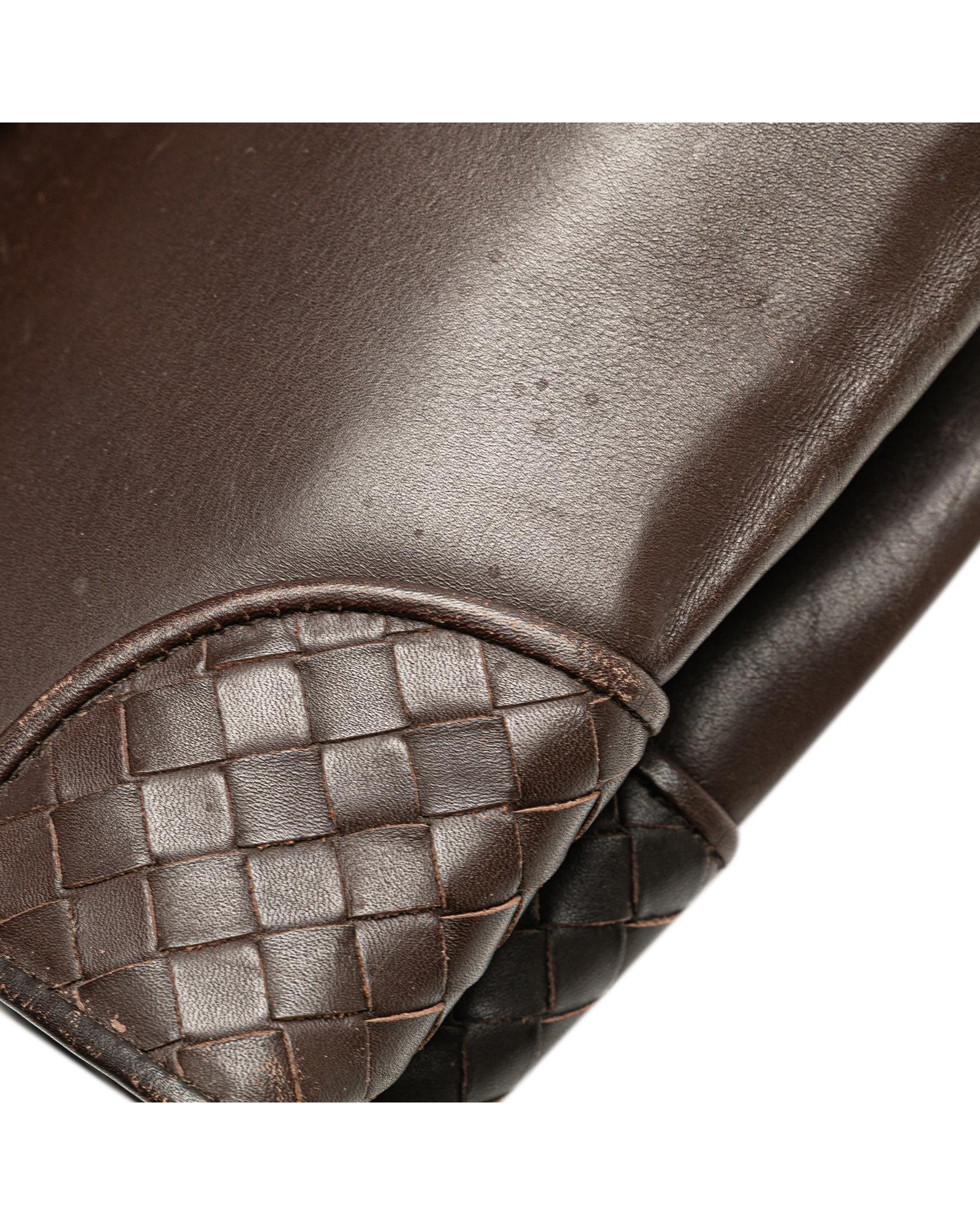 This clutch bag features a leather body with woven details and a front flap with a push lock closure.Brand: Bottega Veneta Vintage