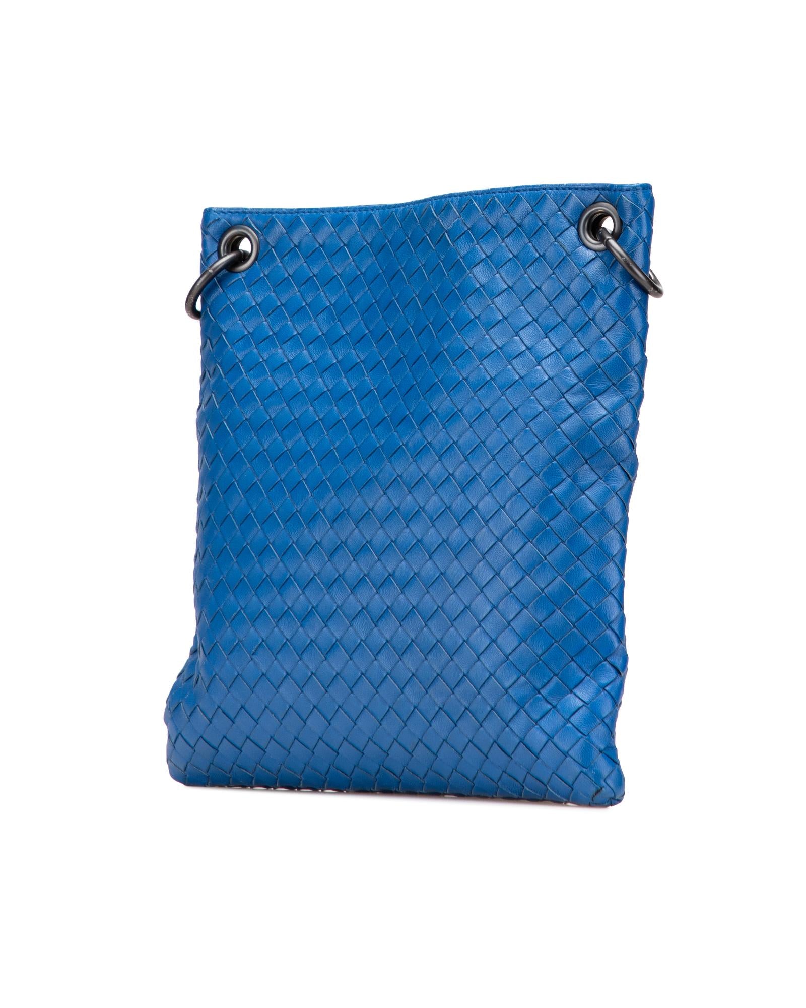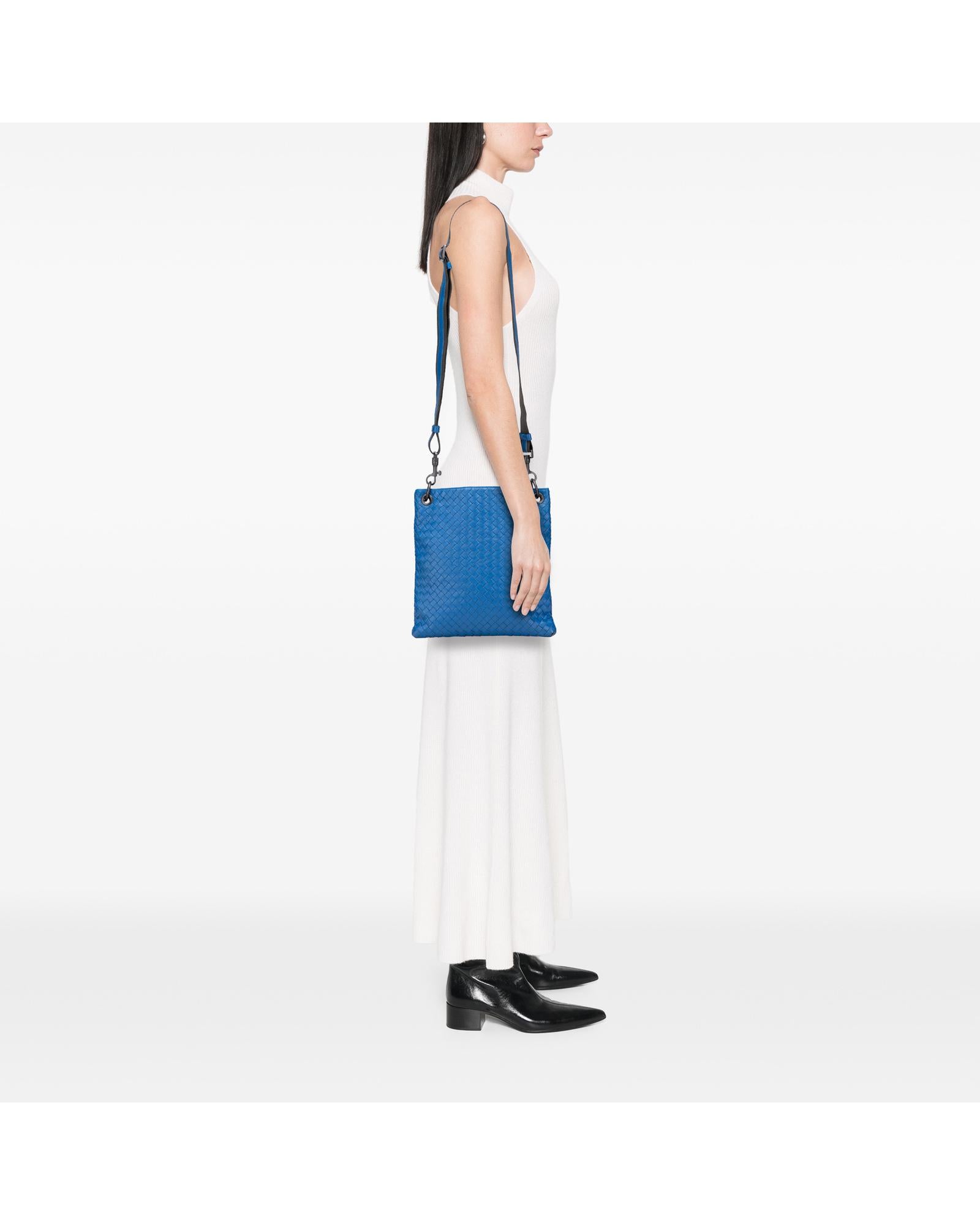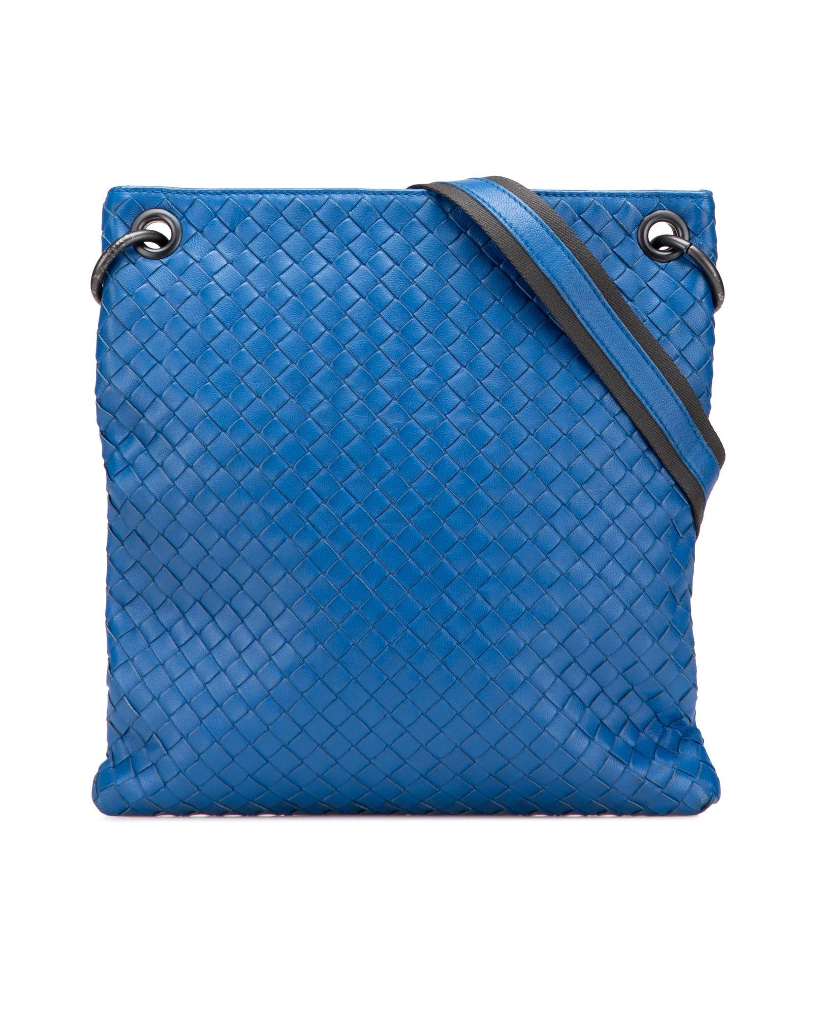 This crossbody bag features a woven leather body an adjustable flat shoulder strap an open top and an interior zip pocket.Brand: Bottega Veneta Vintage