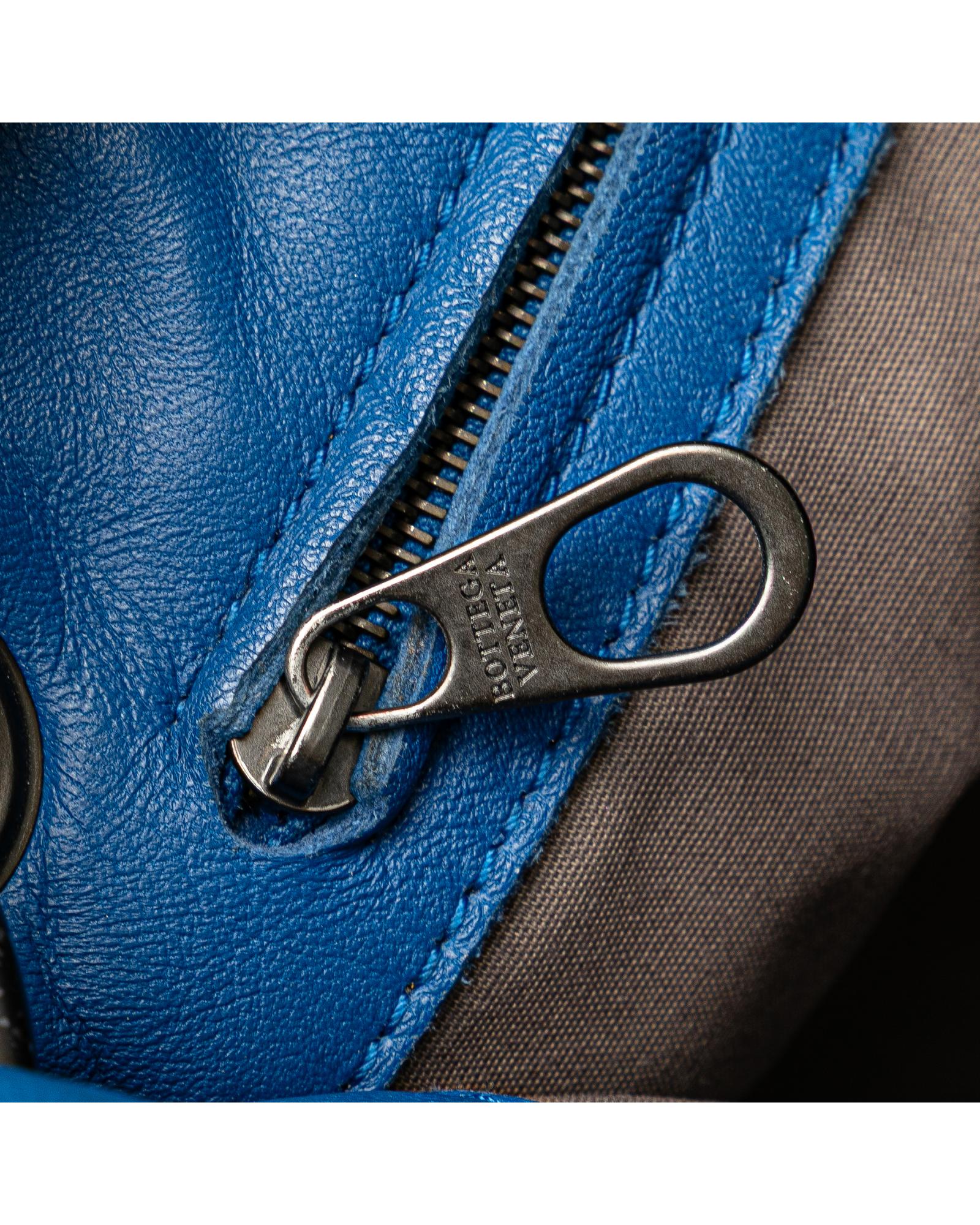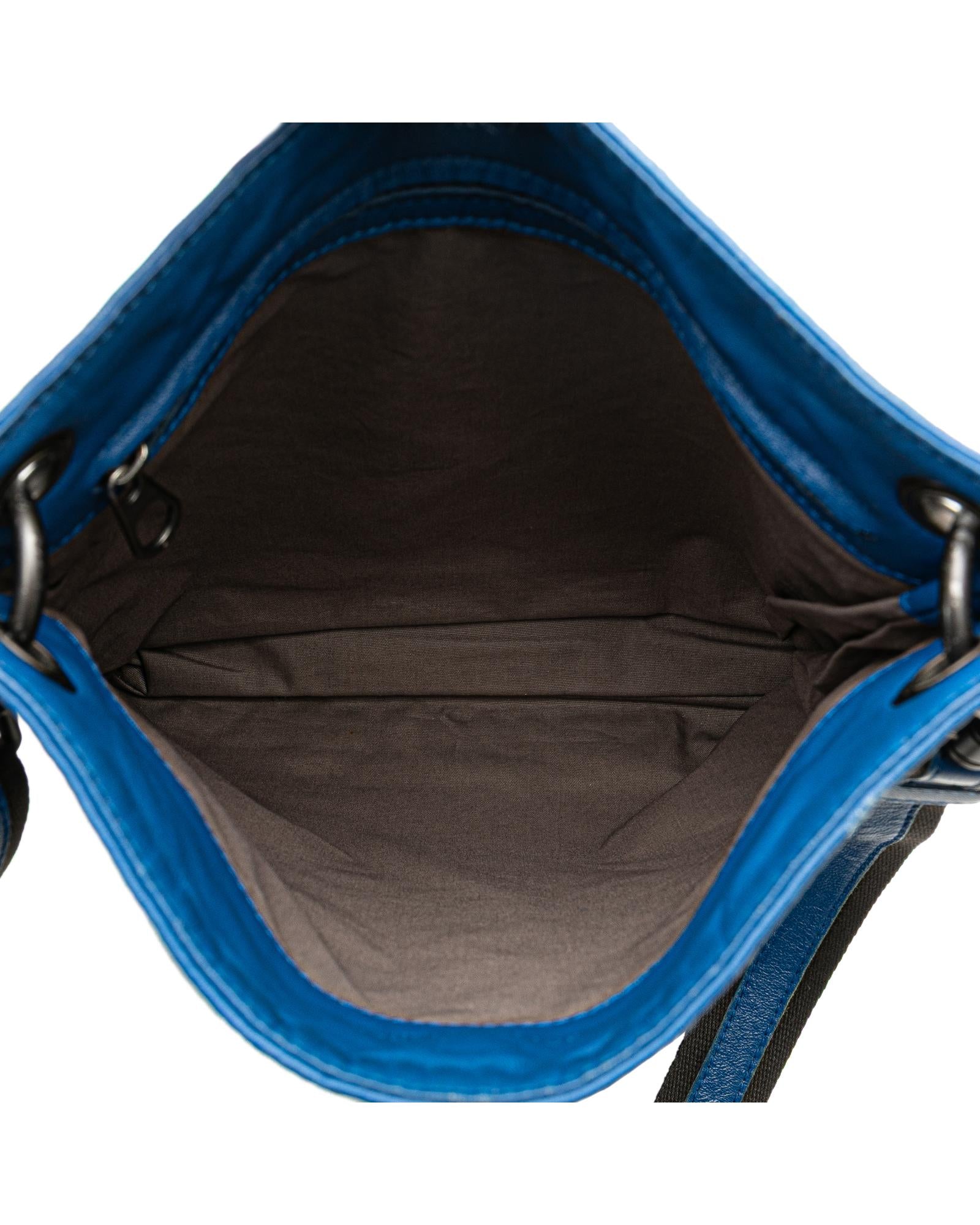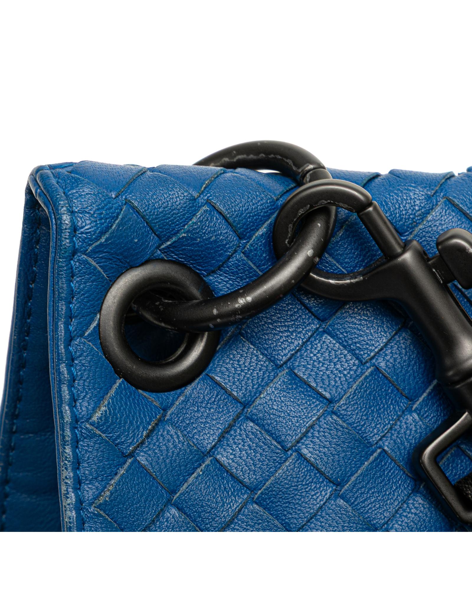 This crossbody bag features a woven leather body an adjustable flat shoulder strap an open top and an interior zip pocket.Brand: Bottega Veneta Vintage