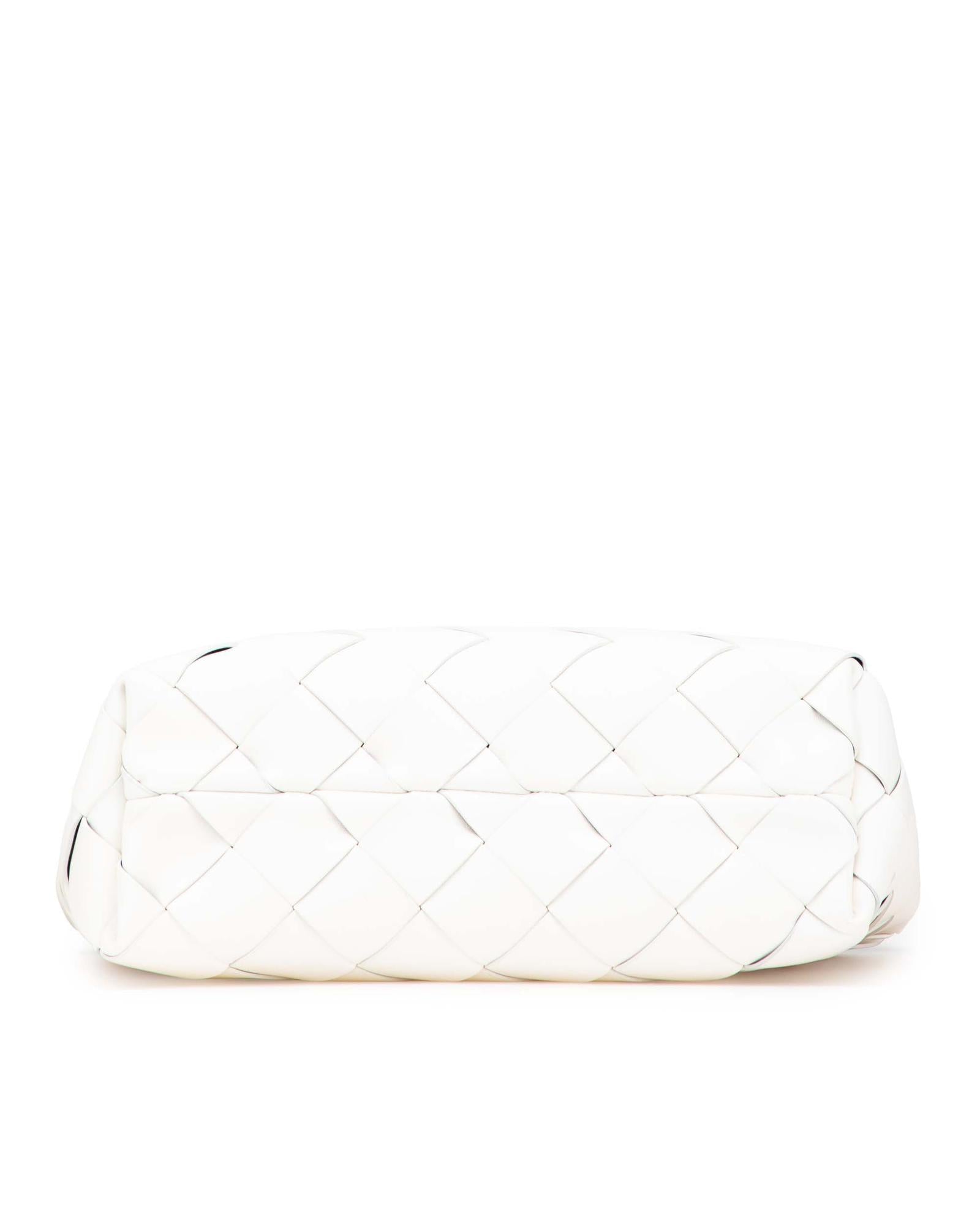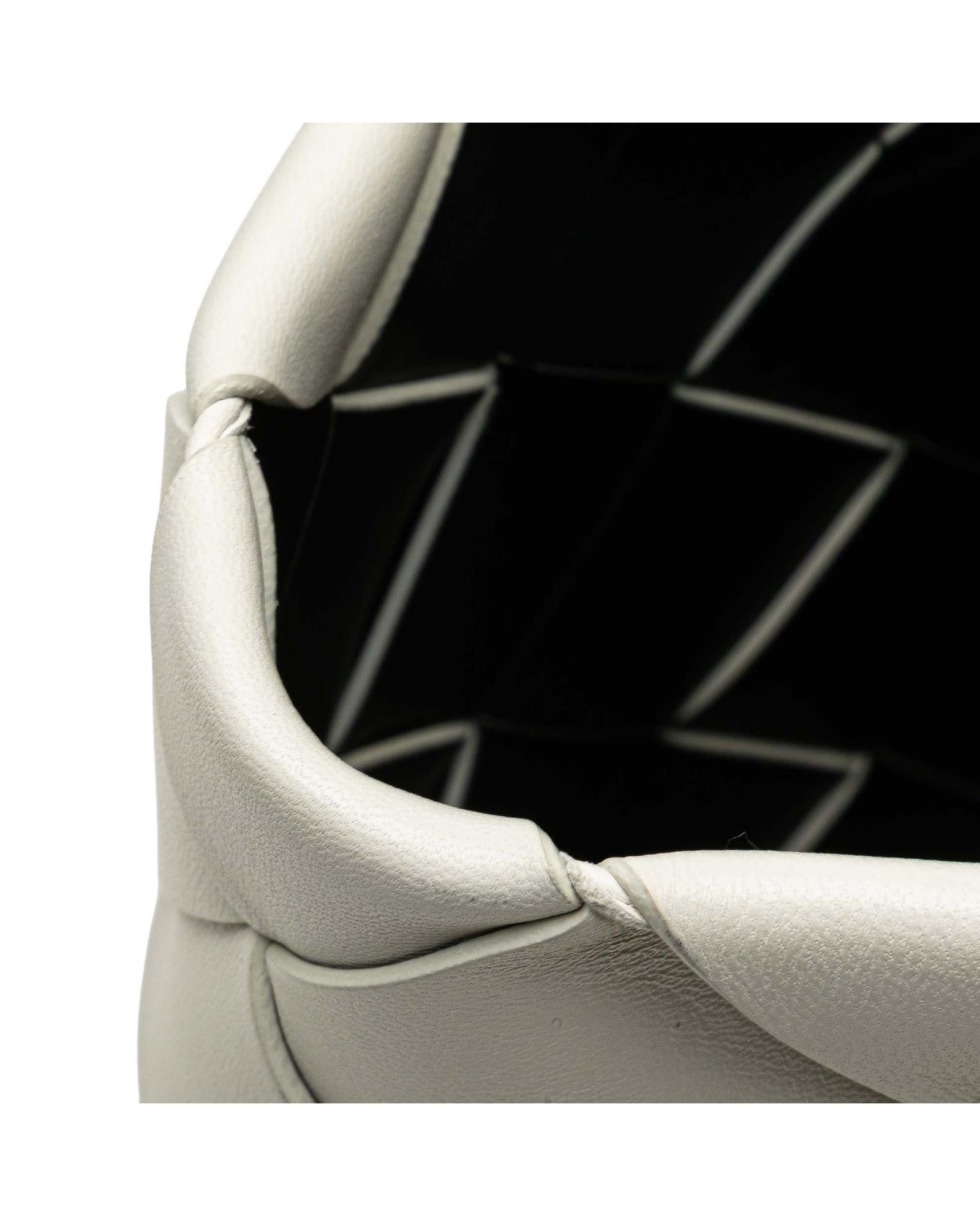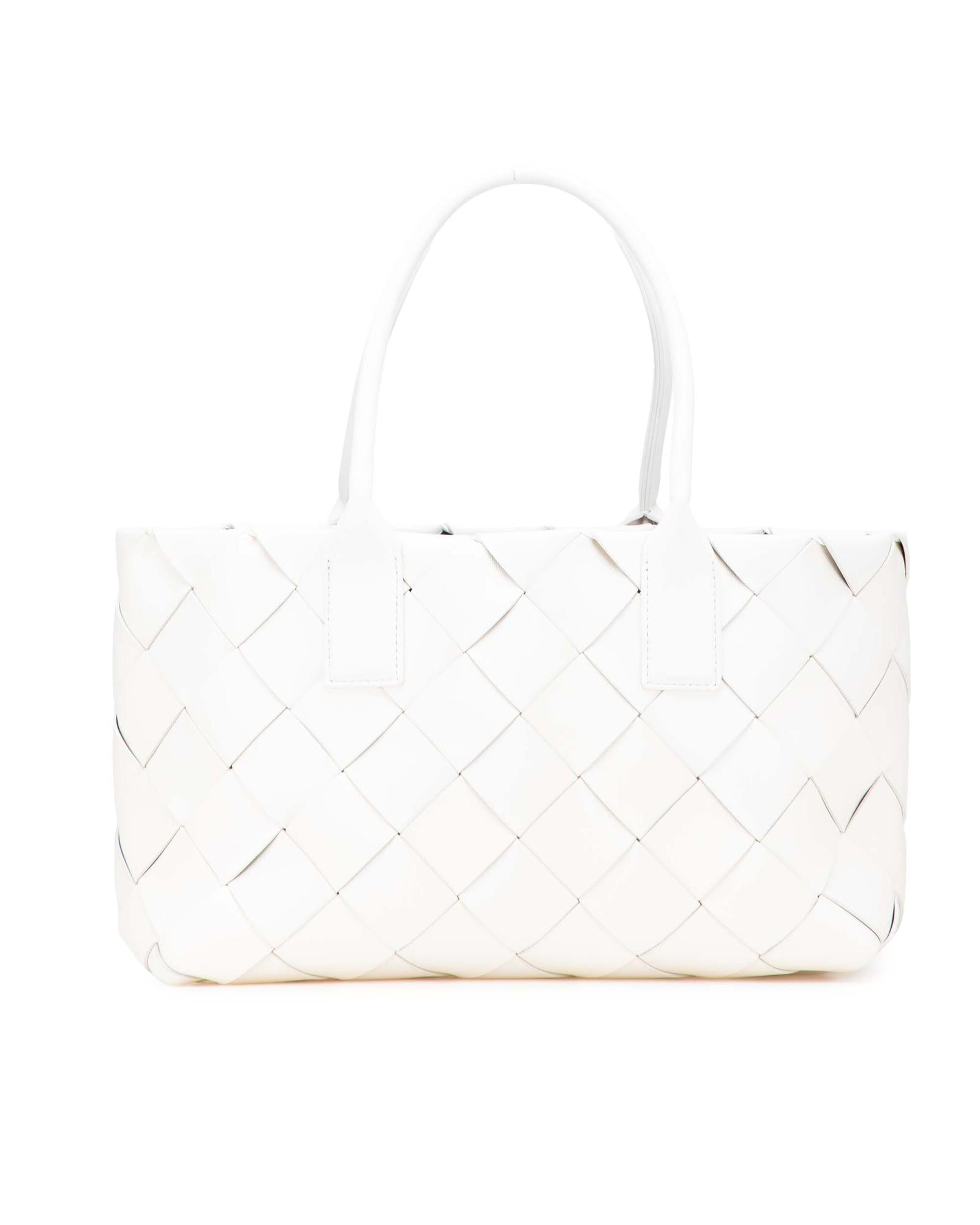 This tote features a woven lambskin leather body rolled handles and an open top.
