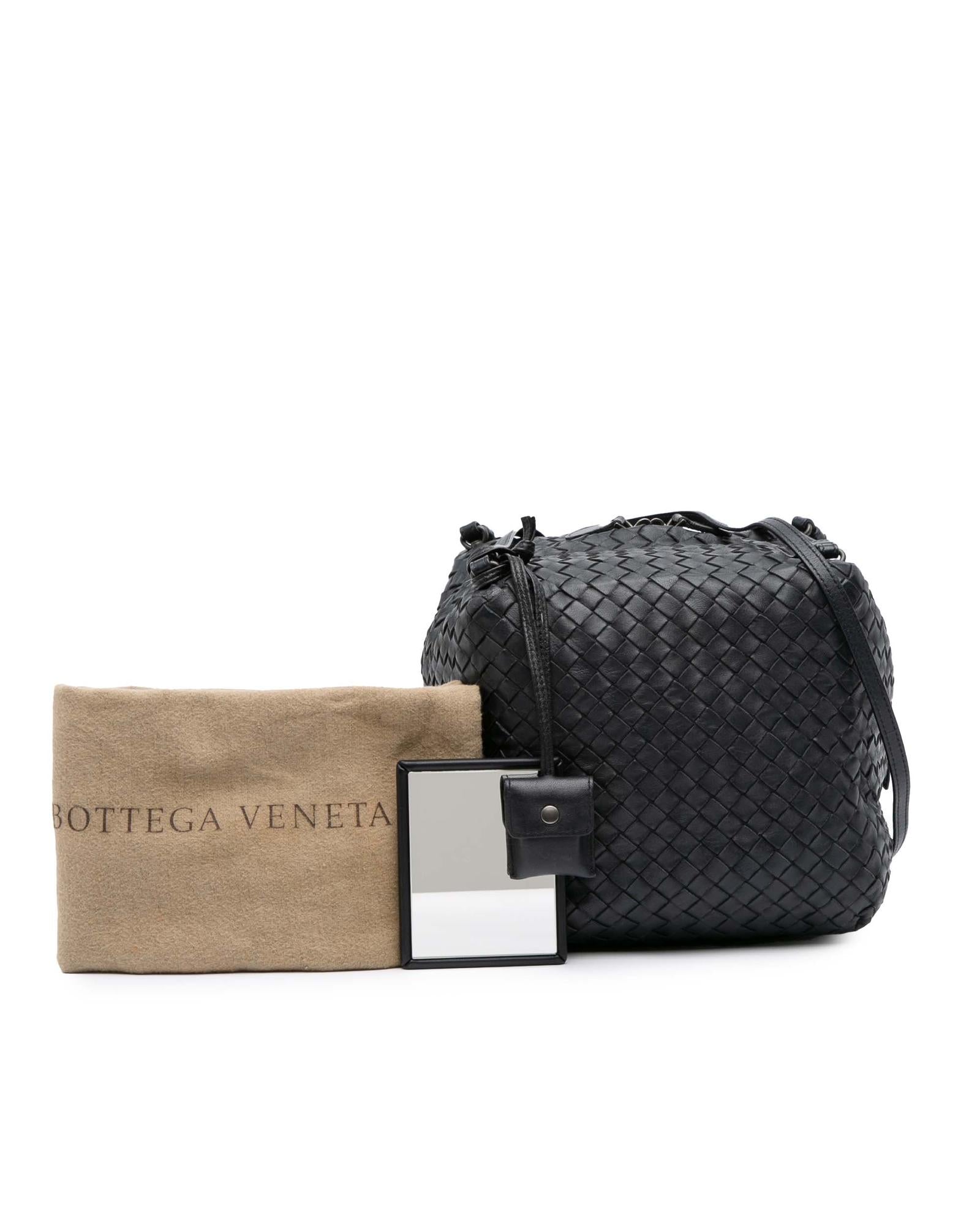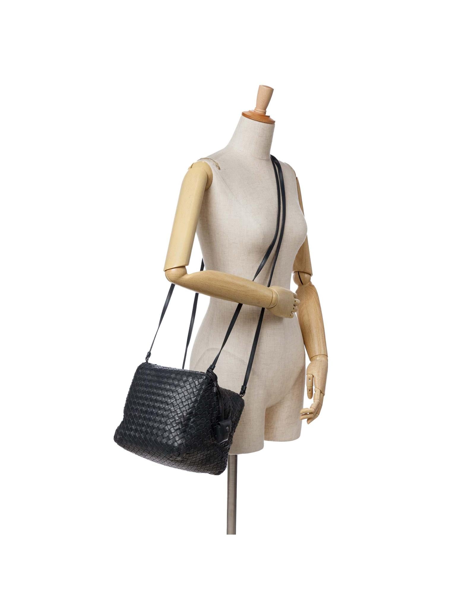 This crossbody bag features a woven nappa leather body flat leather shoulder straps dual top zip closures and an interior zip pocket.Brand: Bottega Veneta Vintage