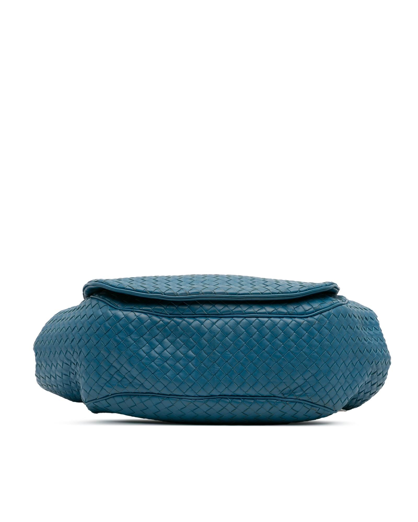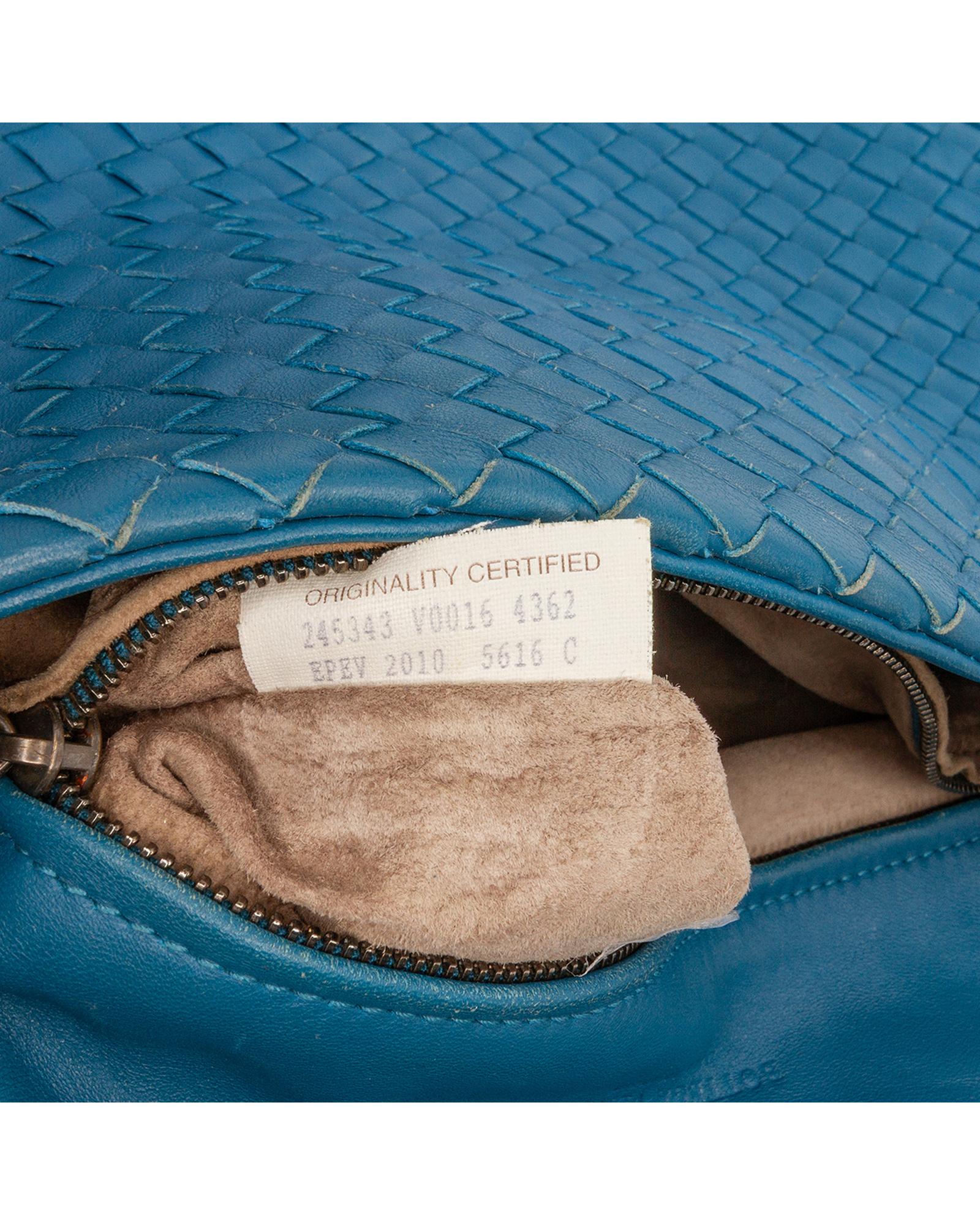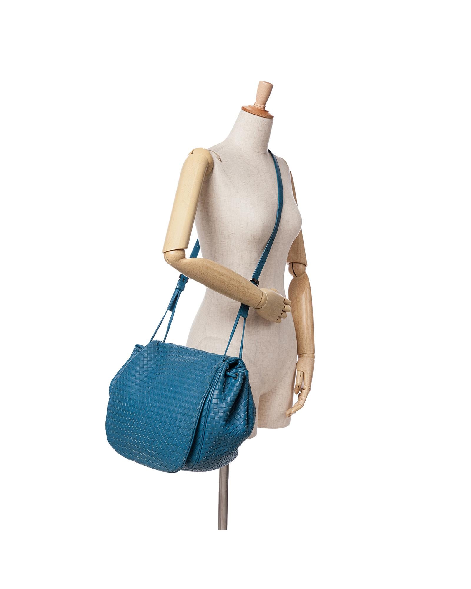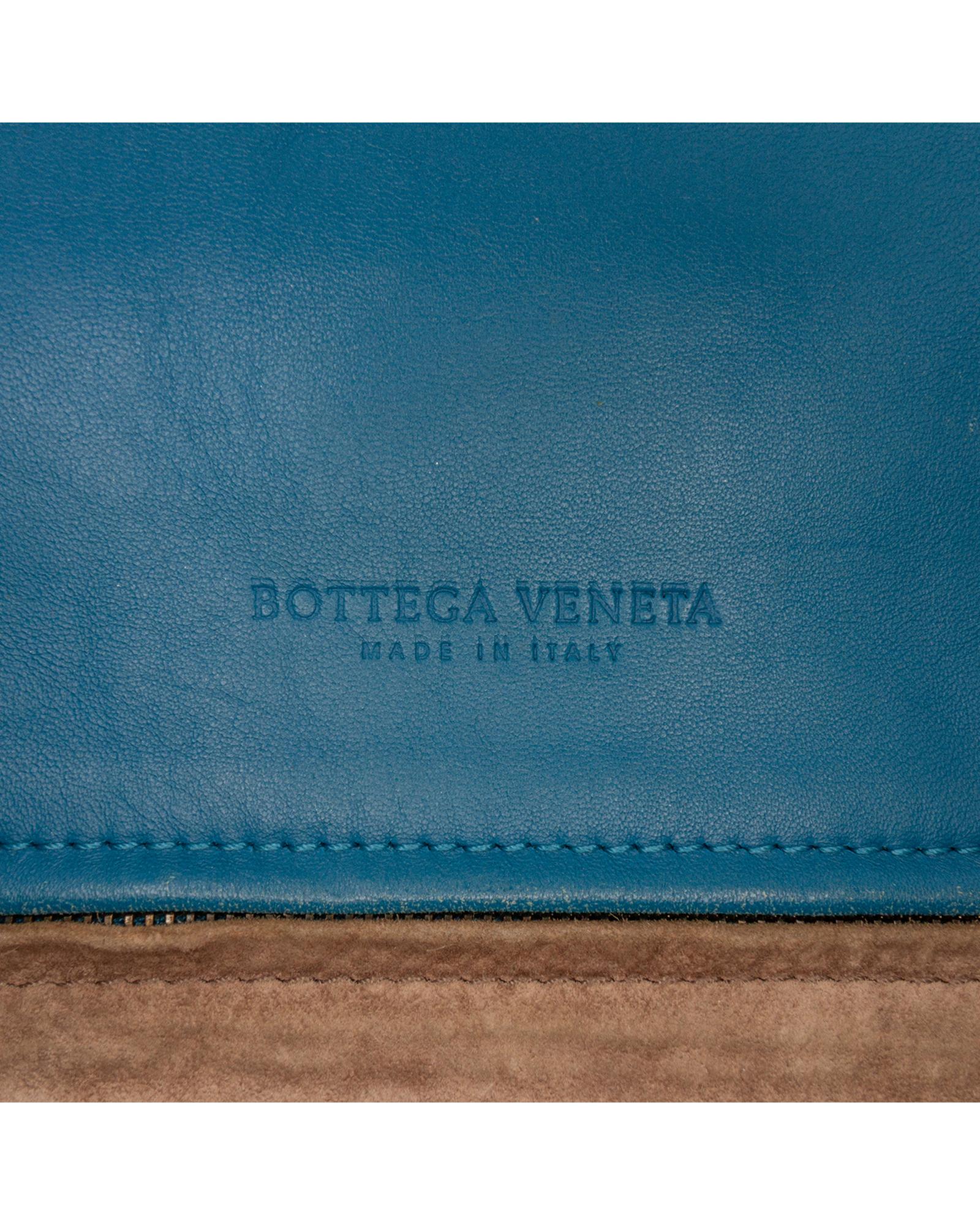 This crossbody features a woven leather body a flat strap a front flap and drawstring closure and interior zip and slip pockets. Strap has been repainted.Brand: Bottega Veneta Vintage