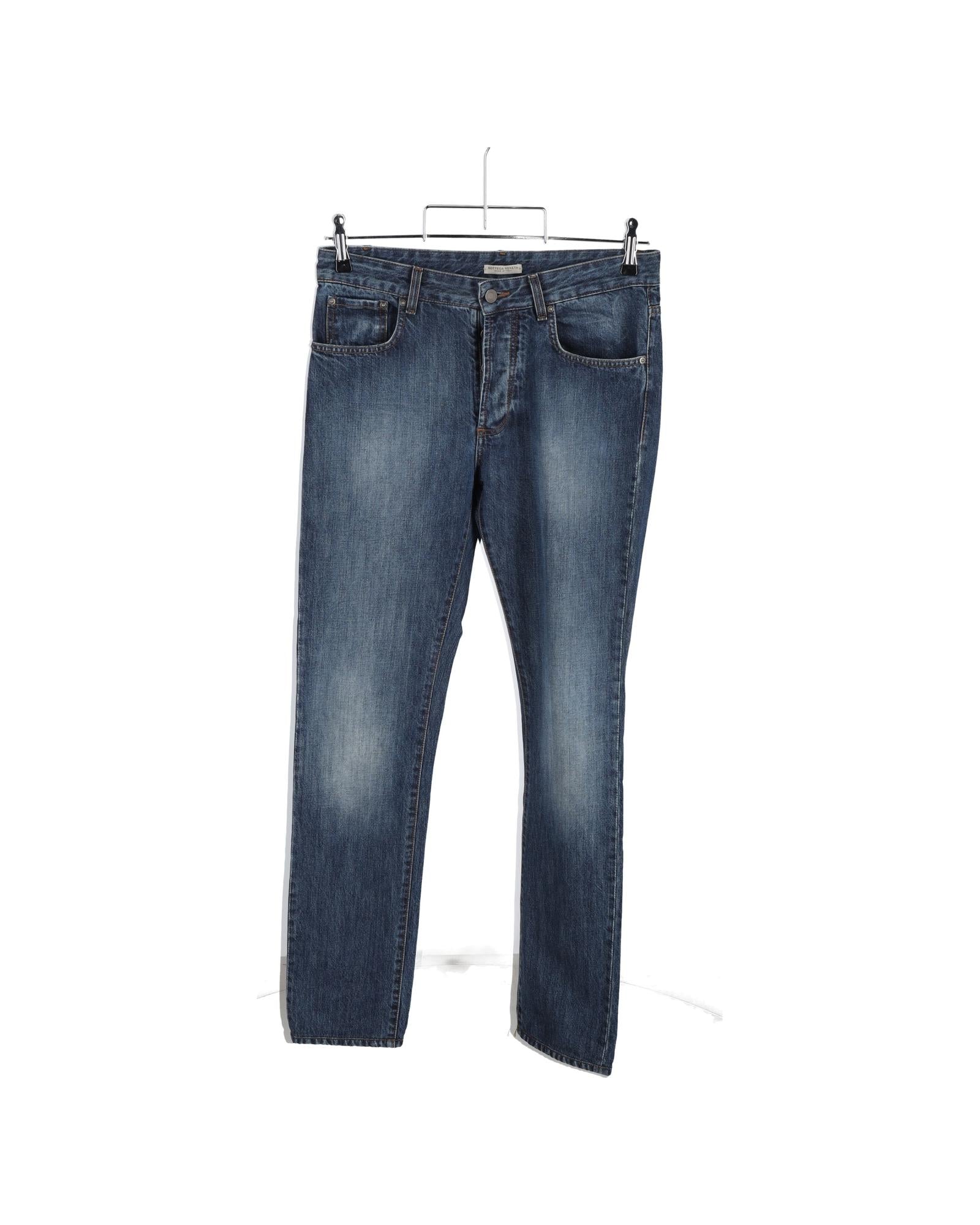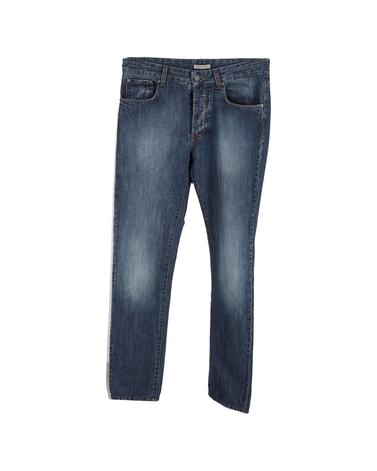 • Bottega Veneta Washed Effect Low Rise Jeans in Blue Cotton