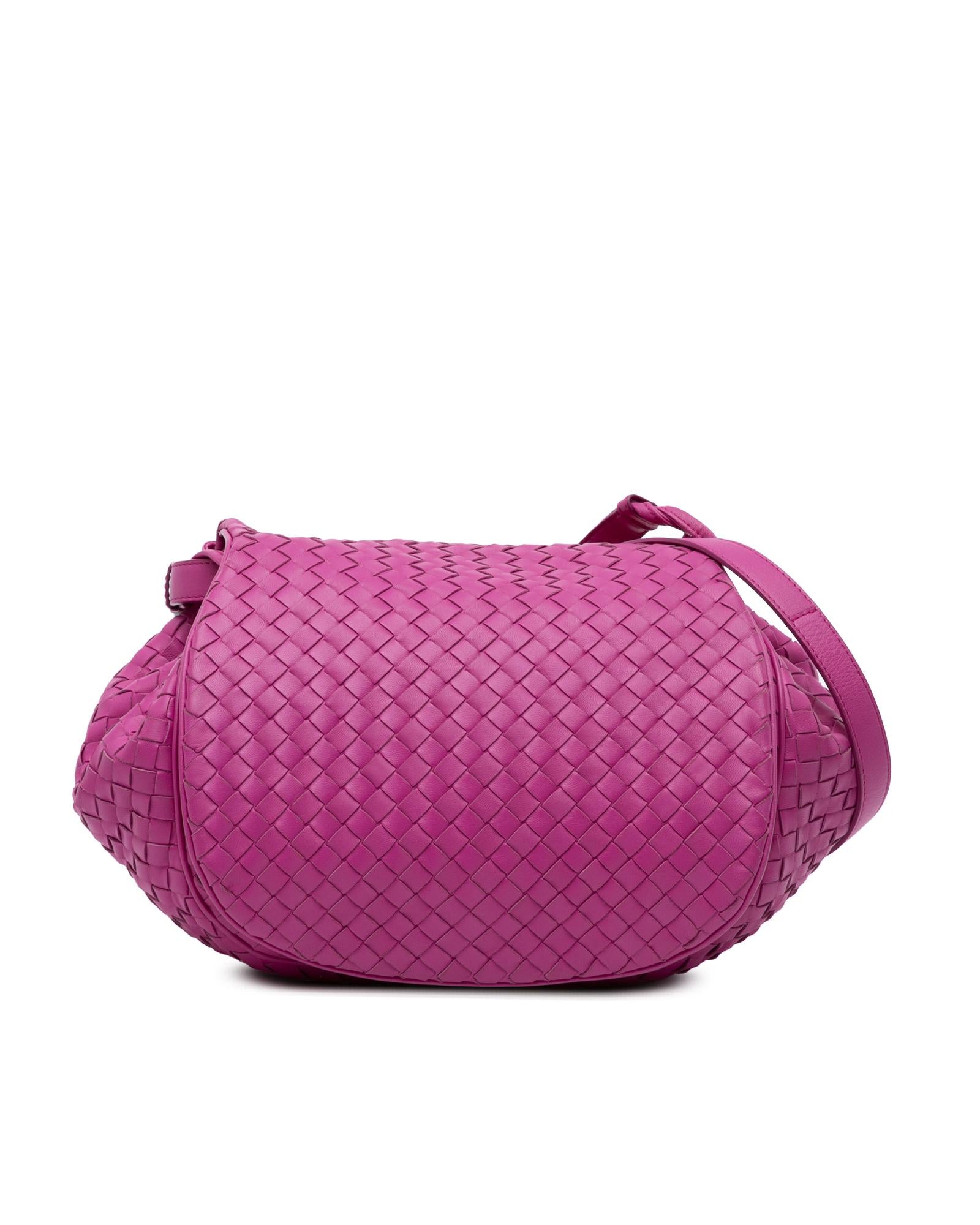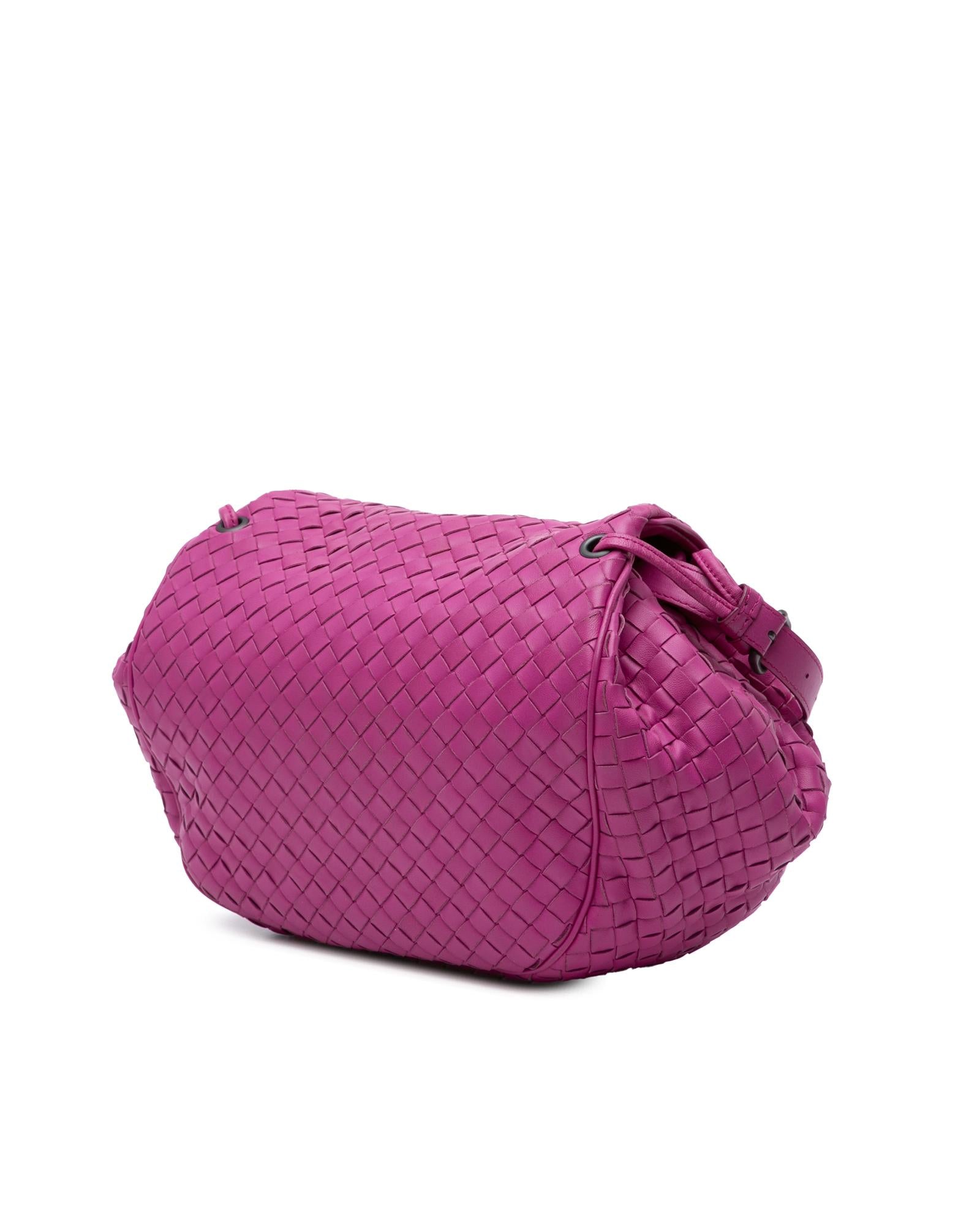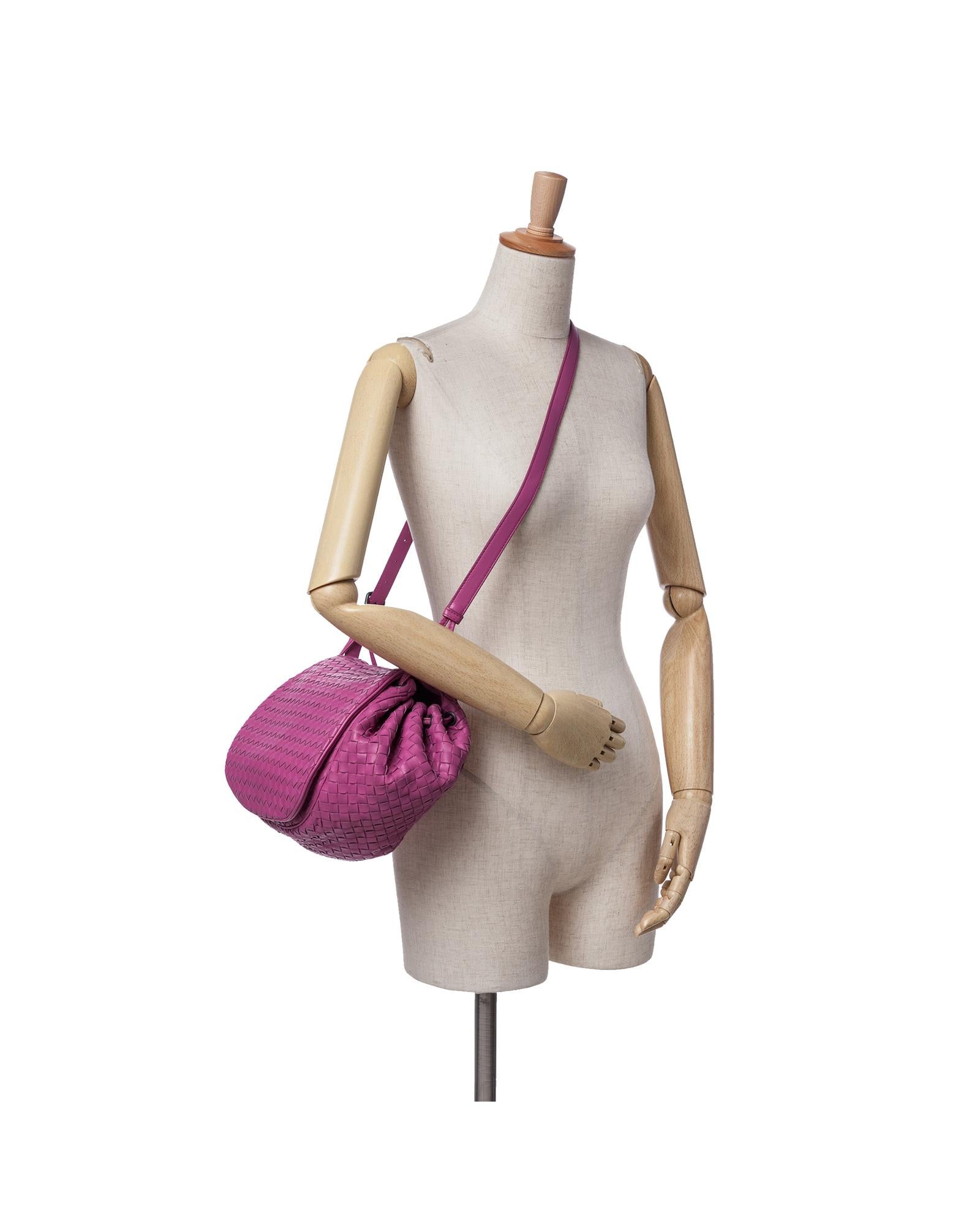This crossbody features a woven nappa leather body a flat strap a front flap and drawstring closure and interior zip and slip pockets.Brand: Bottega Veneta