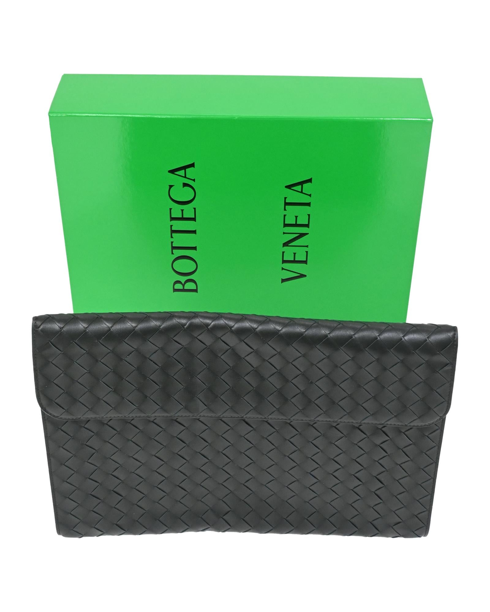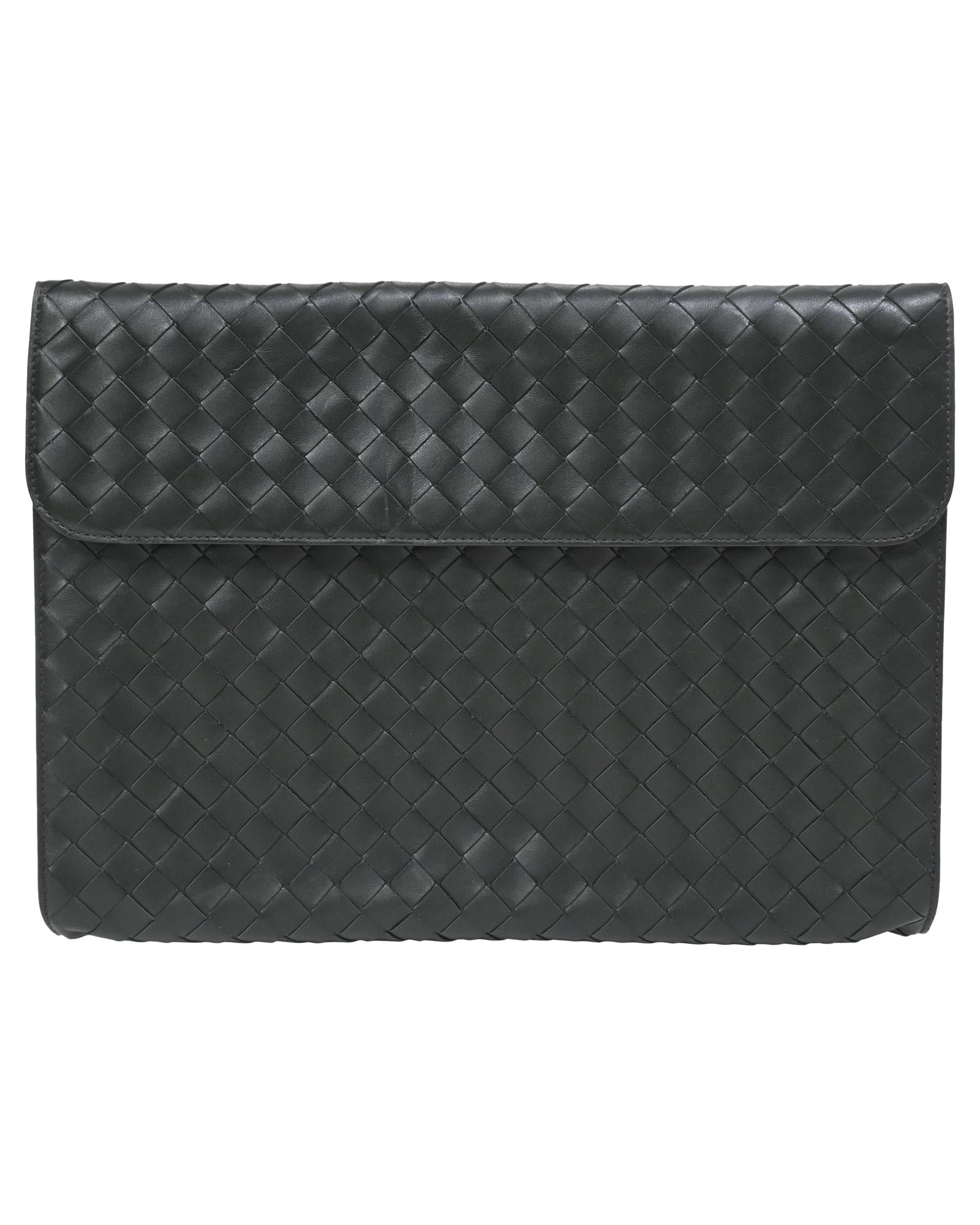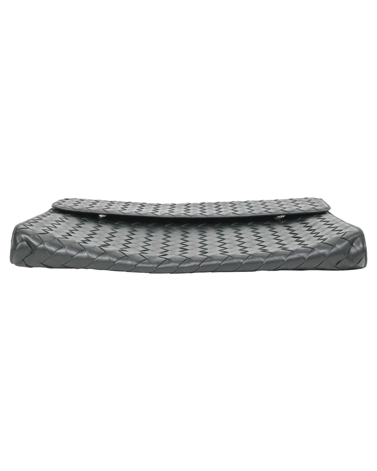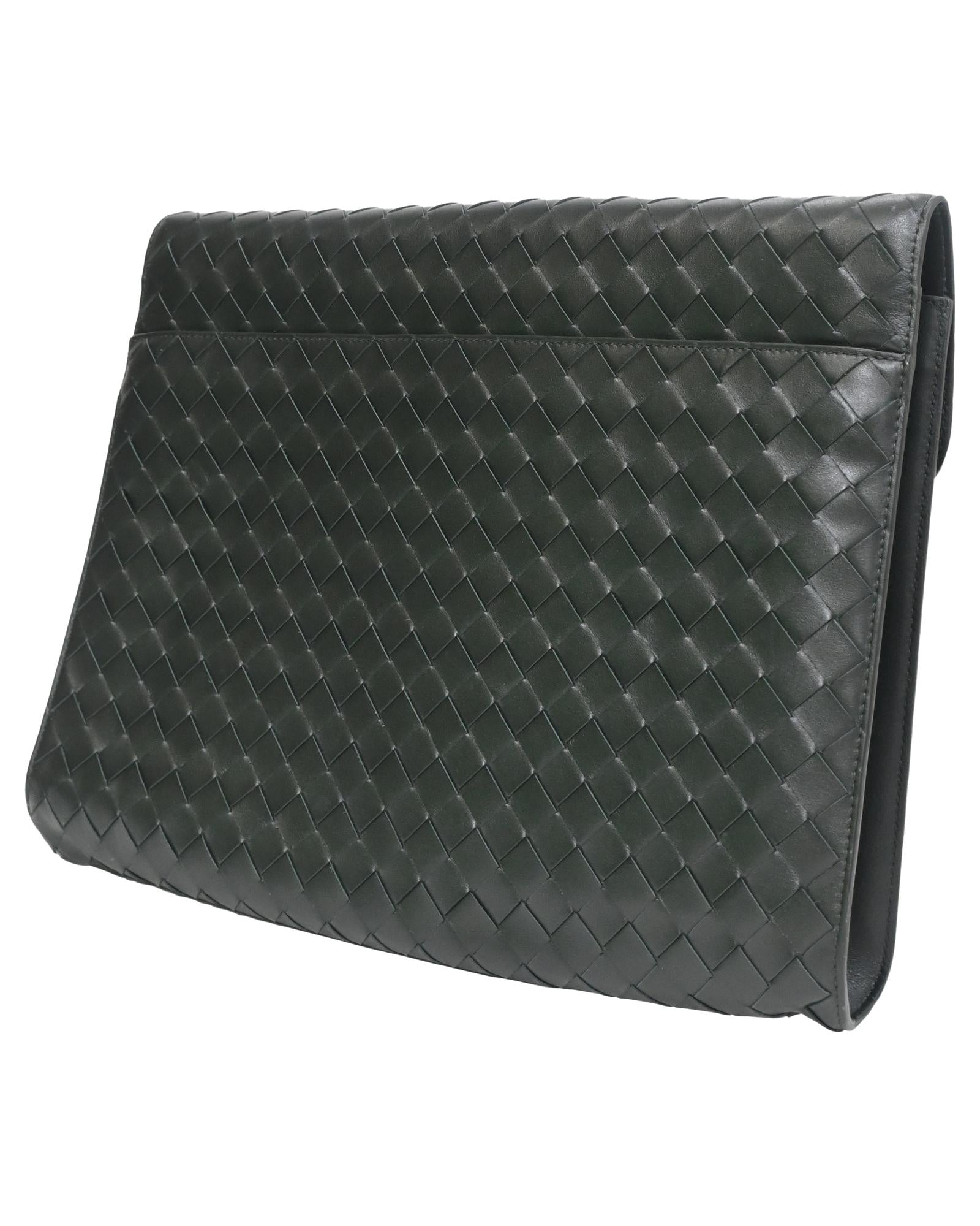 • Bottega Veneta Intrecciato Clutch Bag in Green Leather