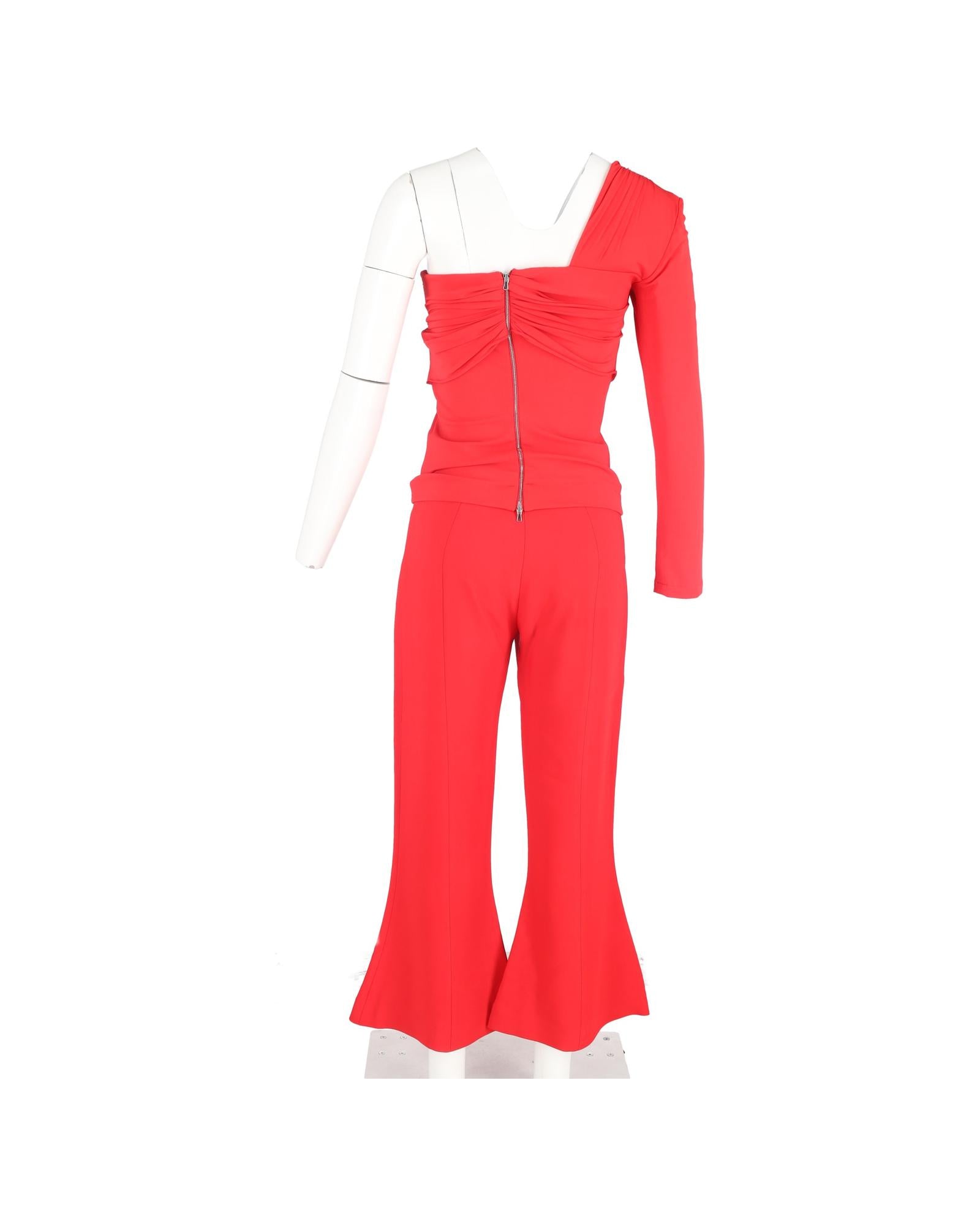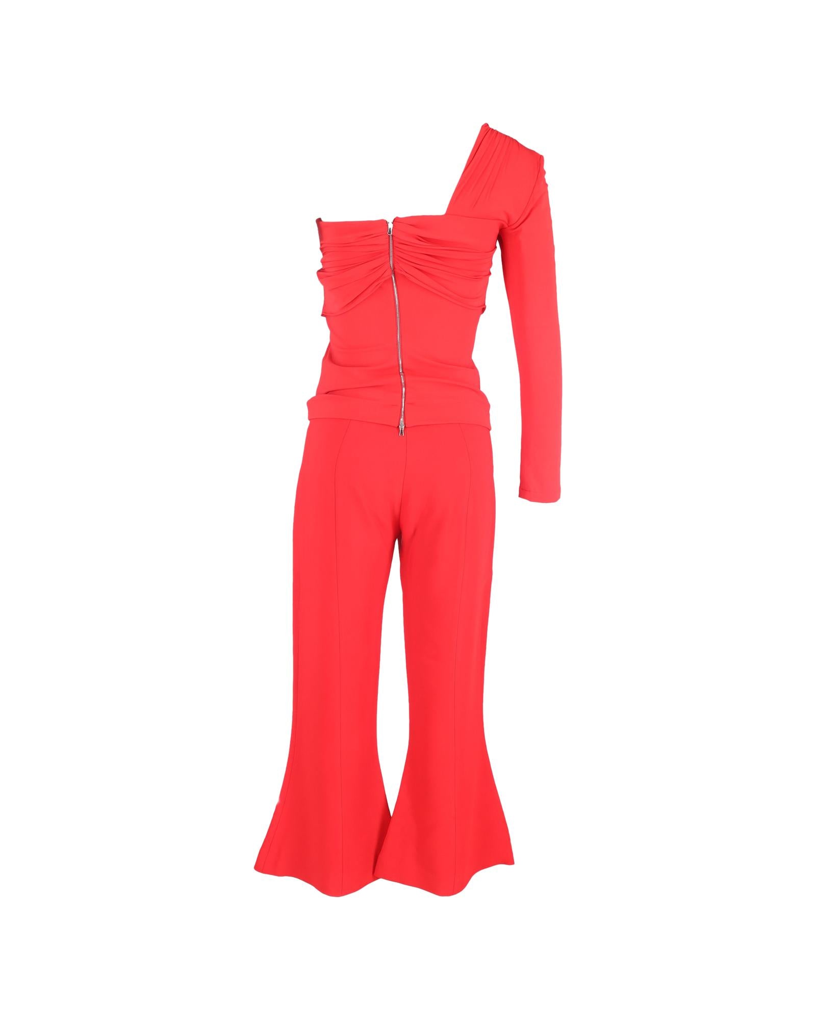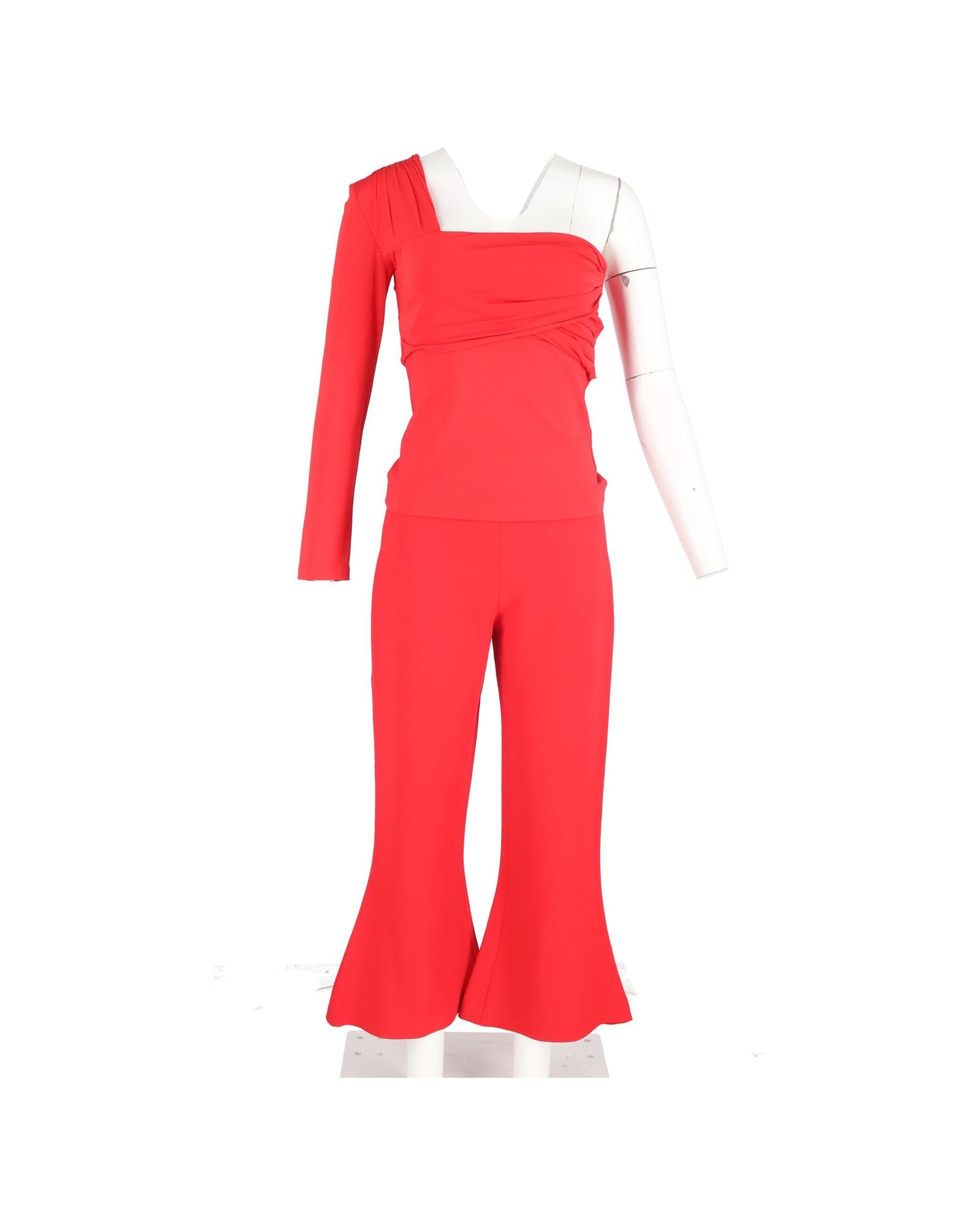 • Antonio Barardi One Shoulder Blouse and Trousers in Red Polyester
