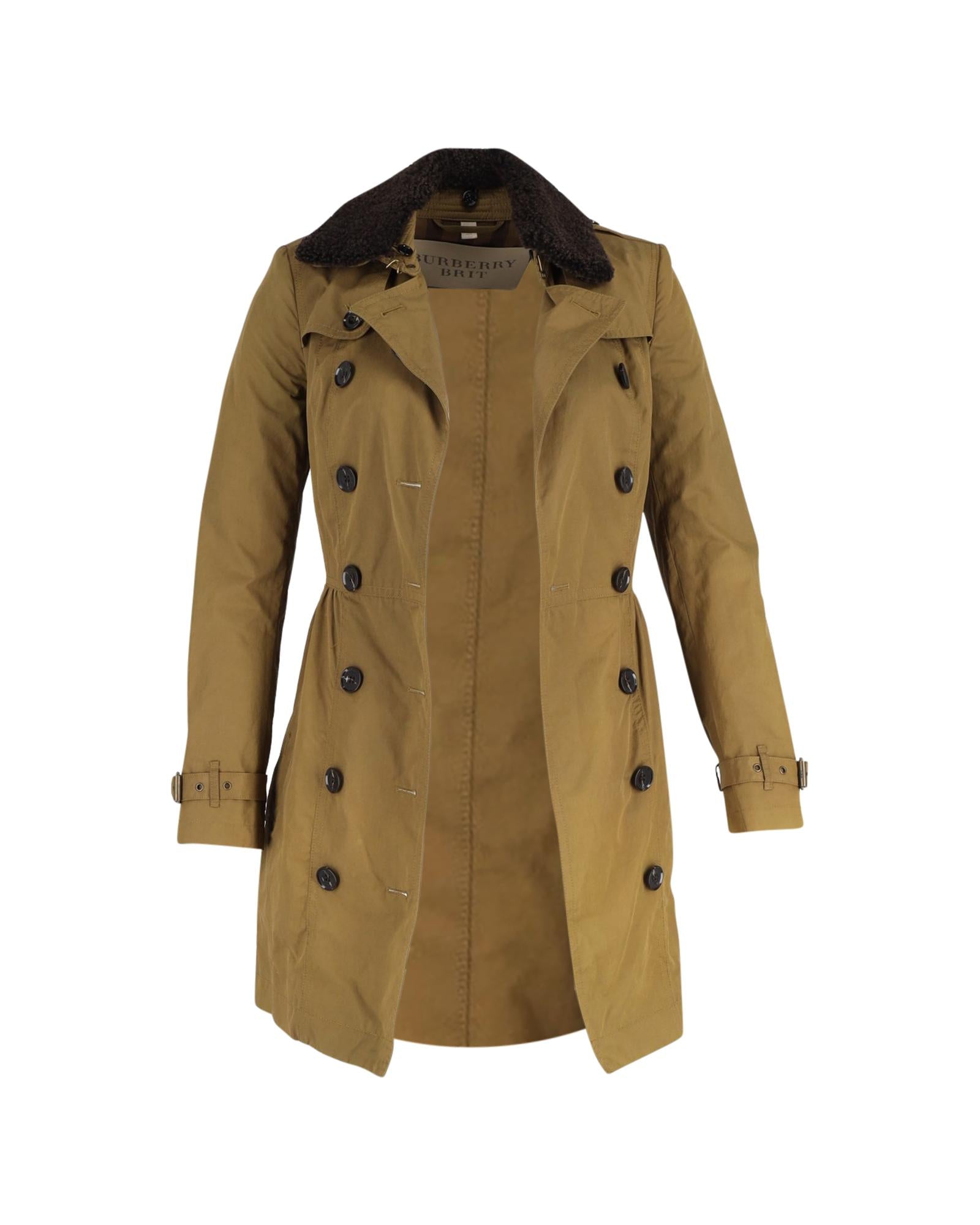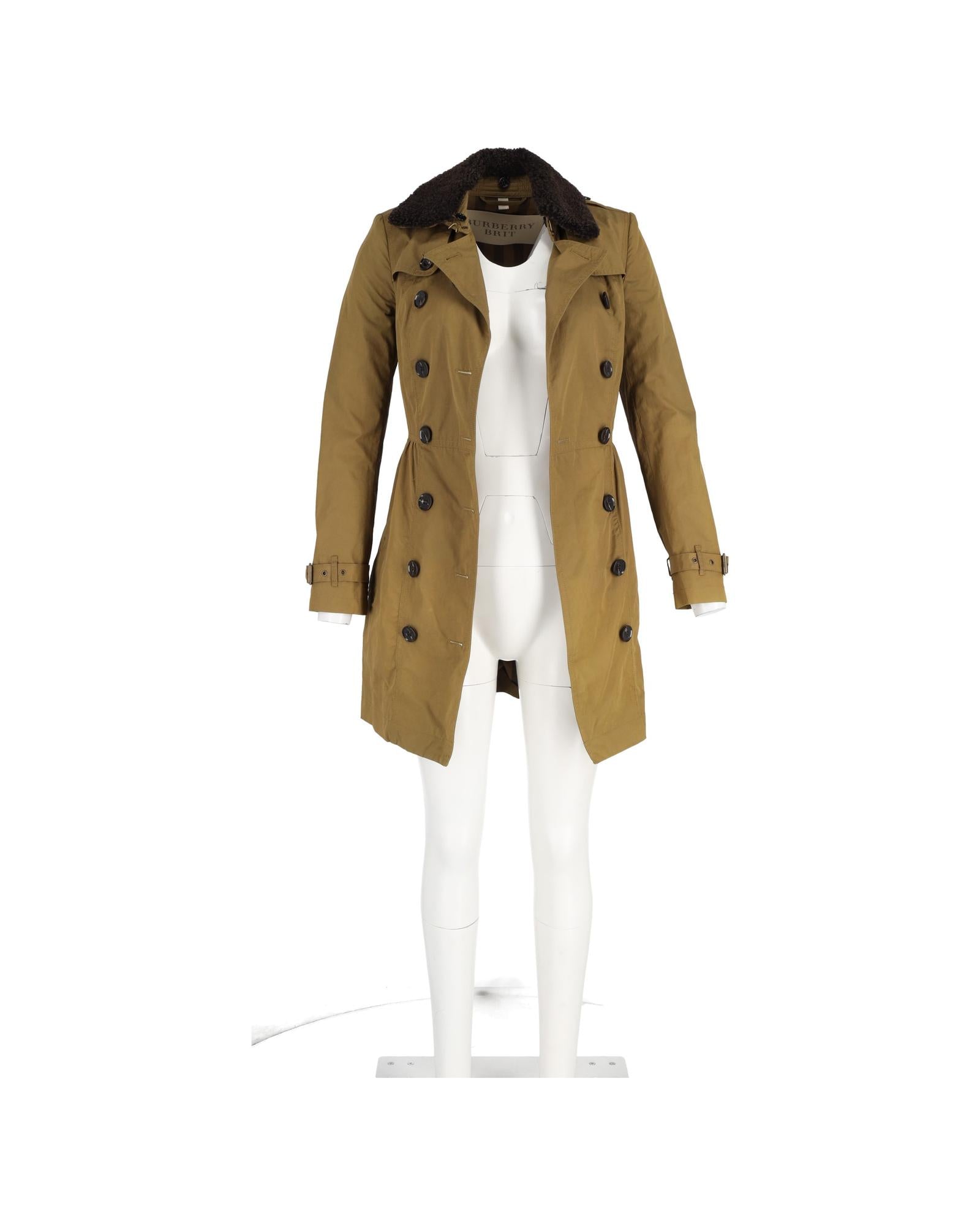 • Stylish Burberry Brit Long Shearling Collar Trench Coat