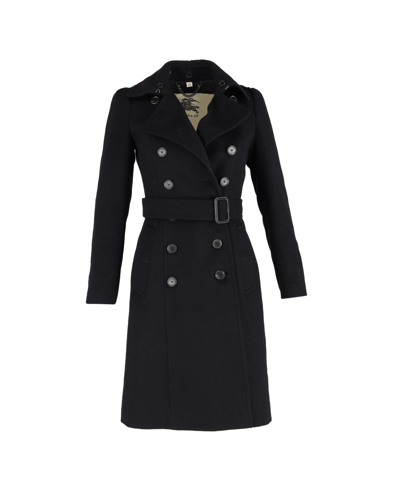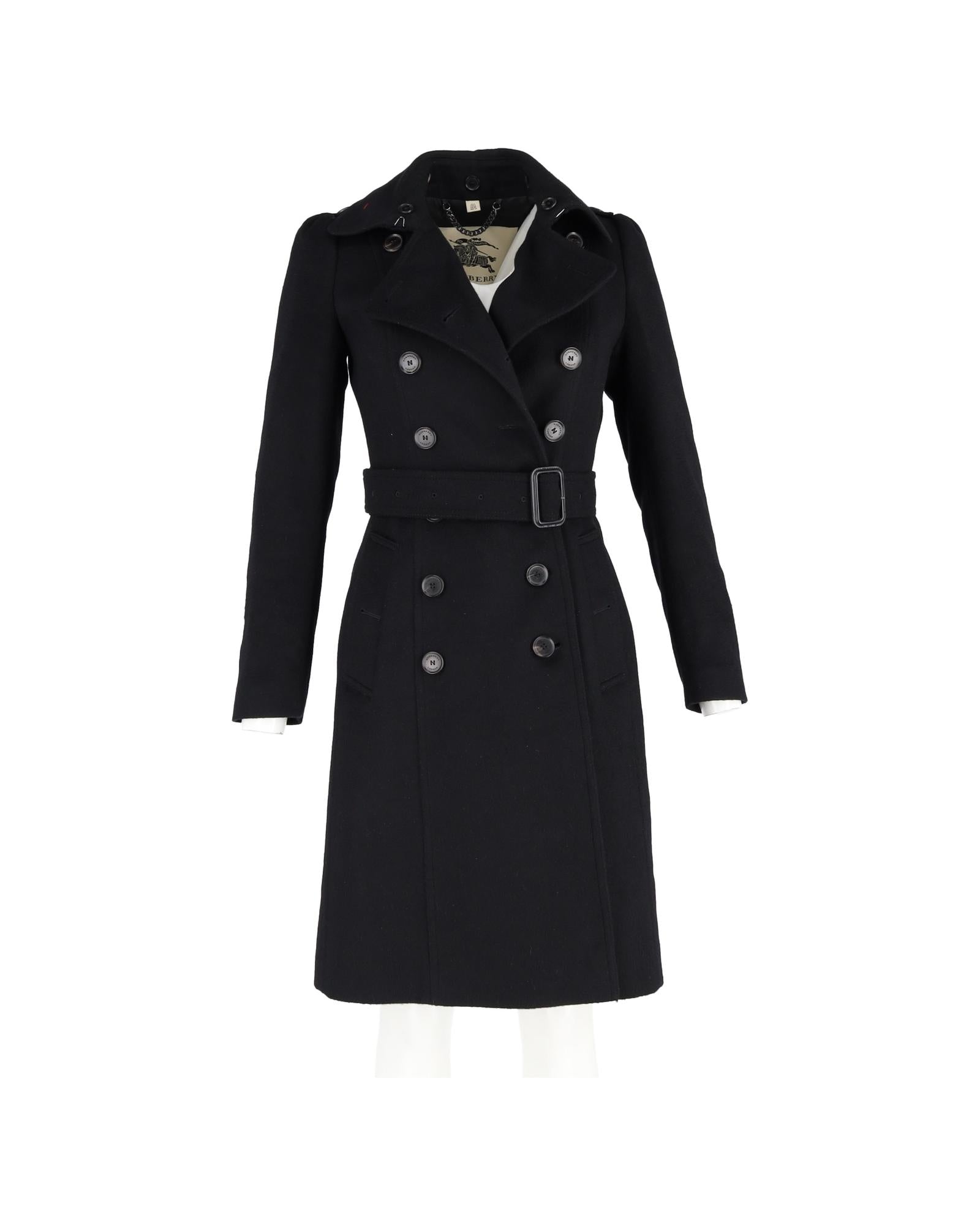 Pre-owned Elegant Double-Breasted Trench Coat with Belted Waist