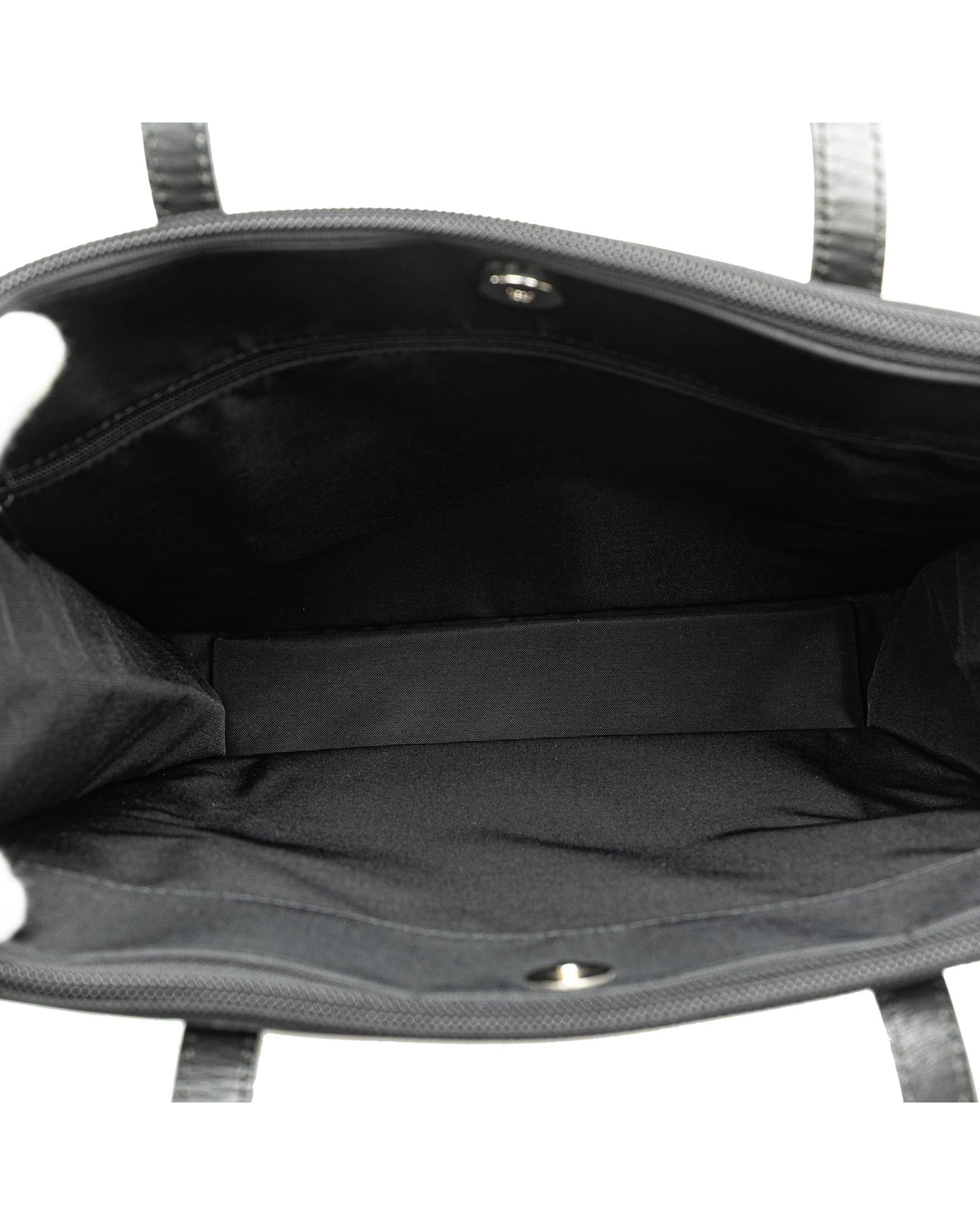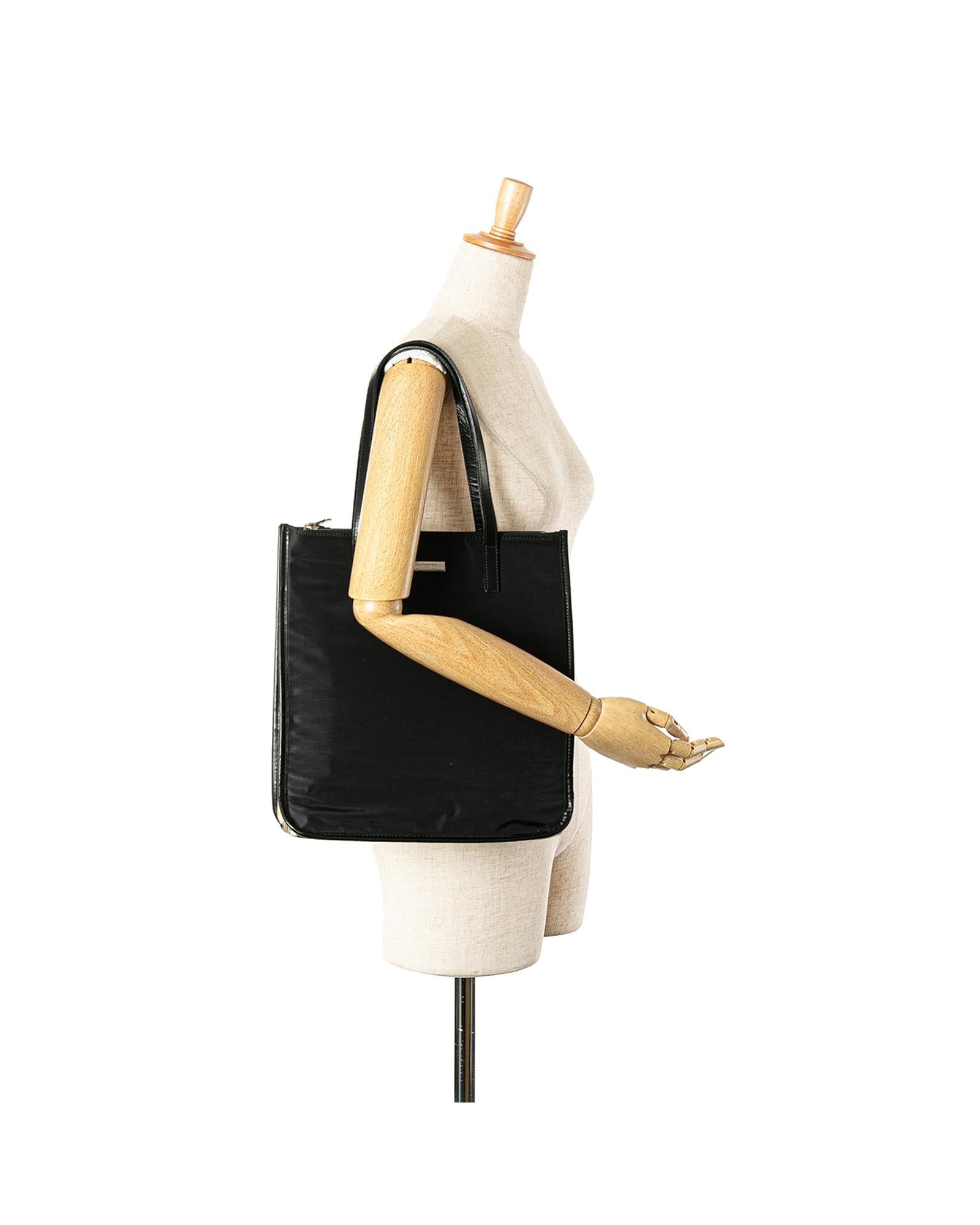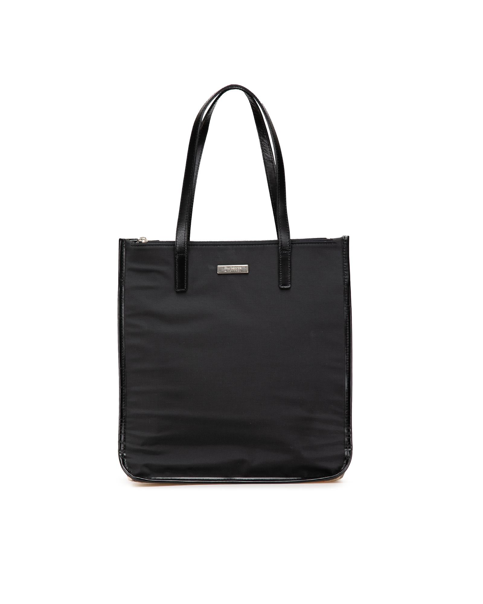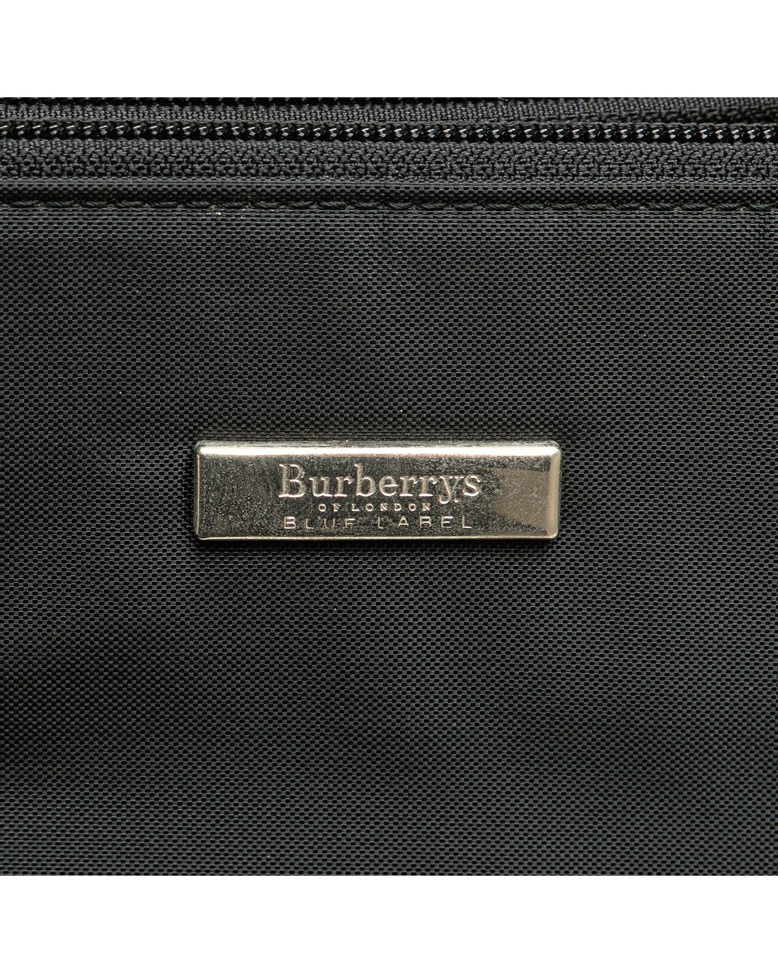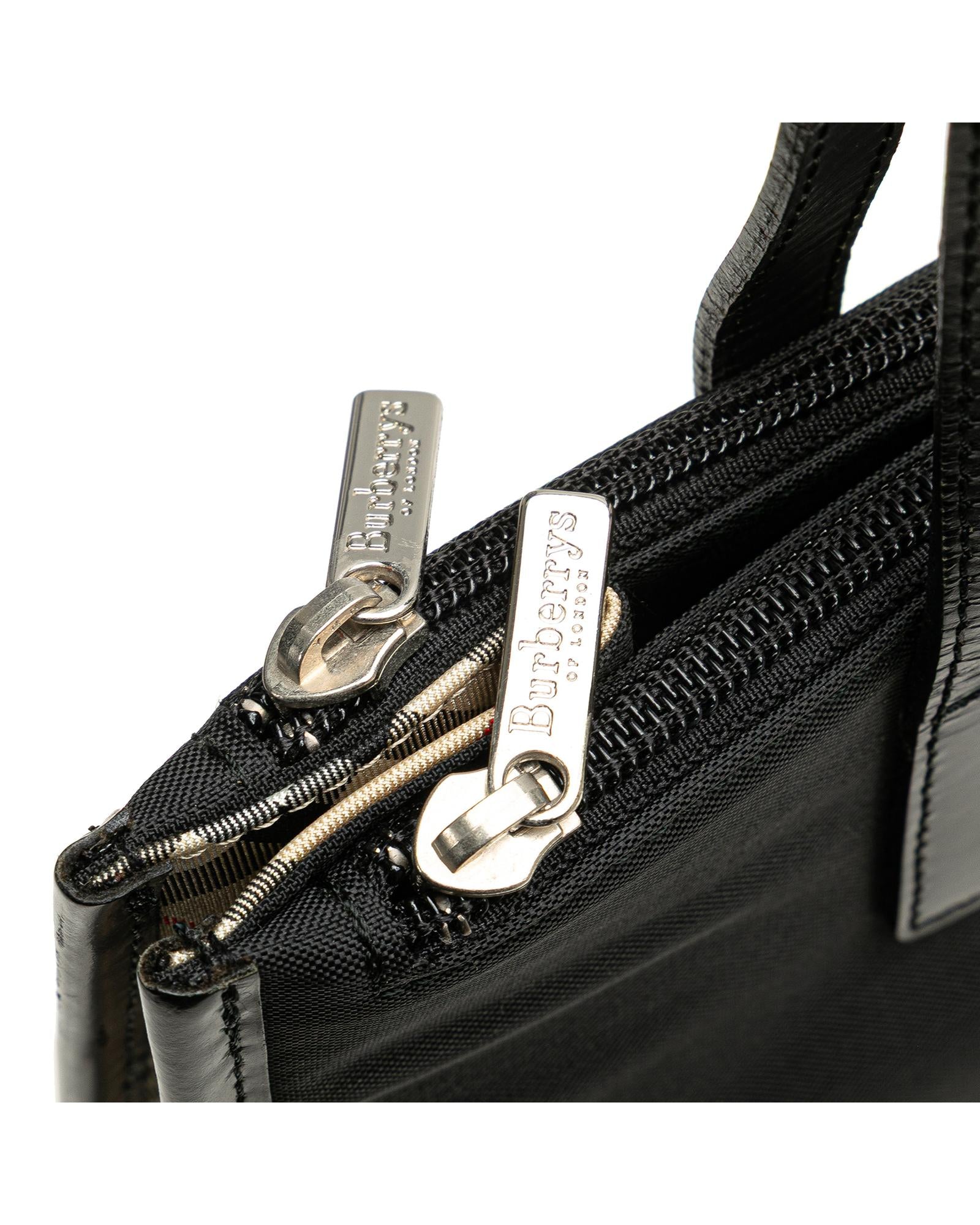 This tote bag features a nylon body with leather trim and nova check canvas side panels flat leather straps an open top with magnetic snap closure and an interior zip pocket.Brand: Burberry