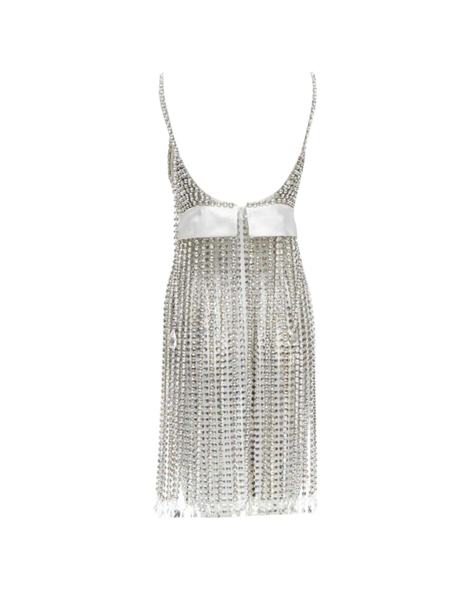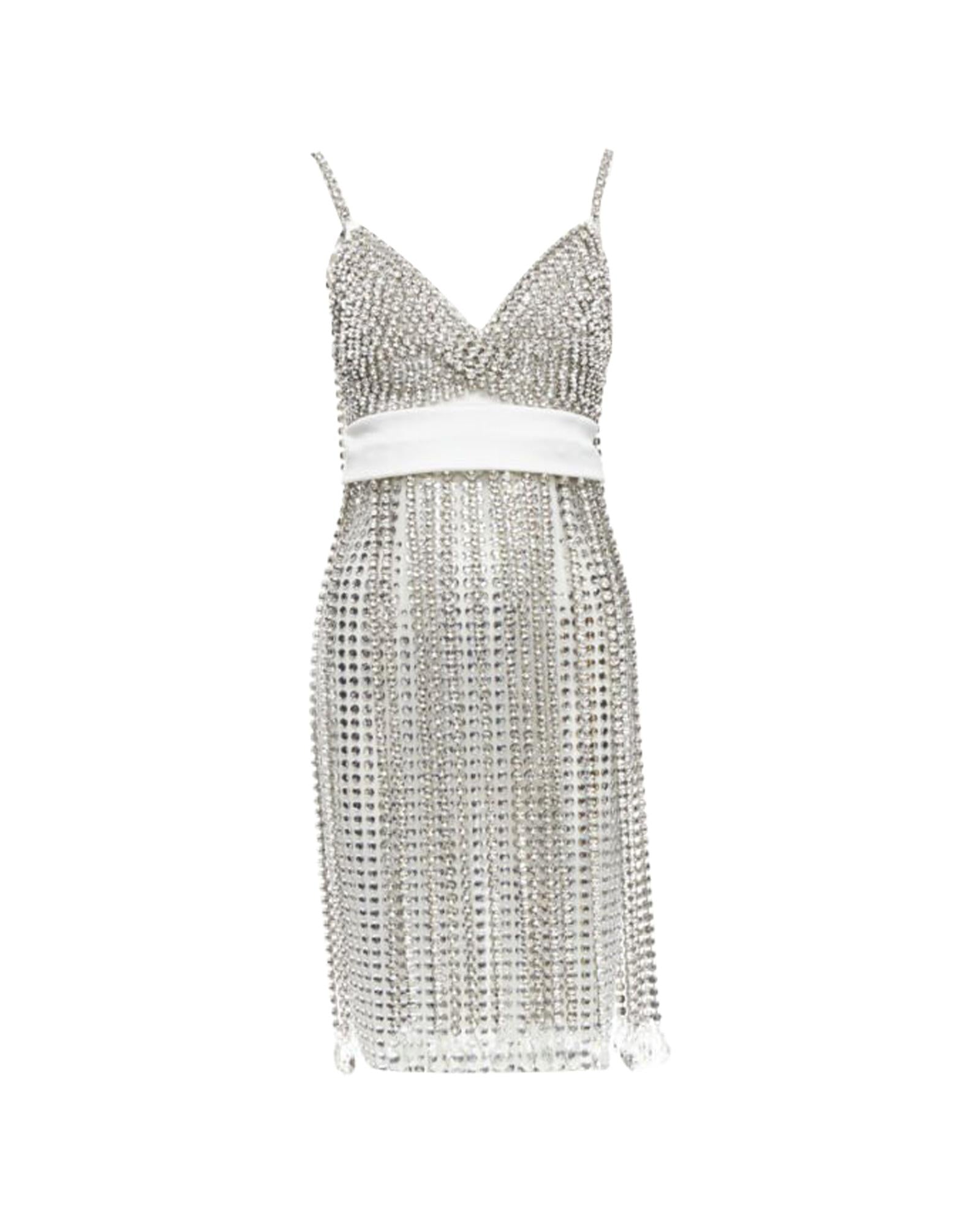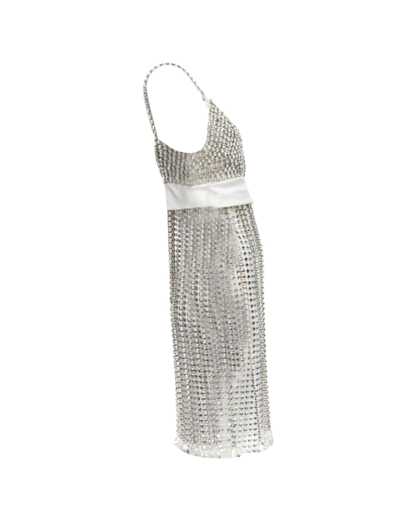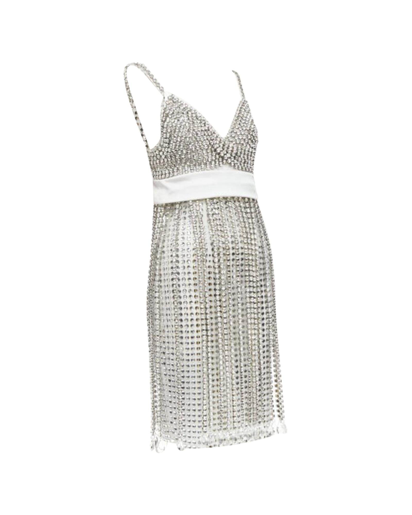 Sleeveless Dress with Embellishments V-Neck and Fitted Waist