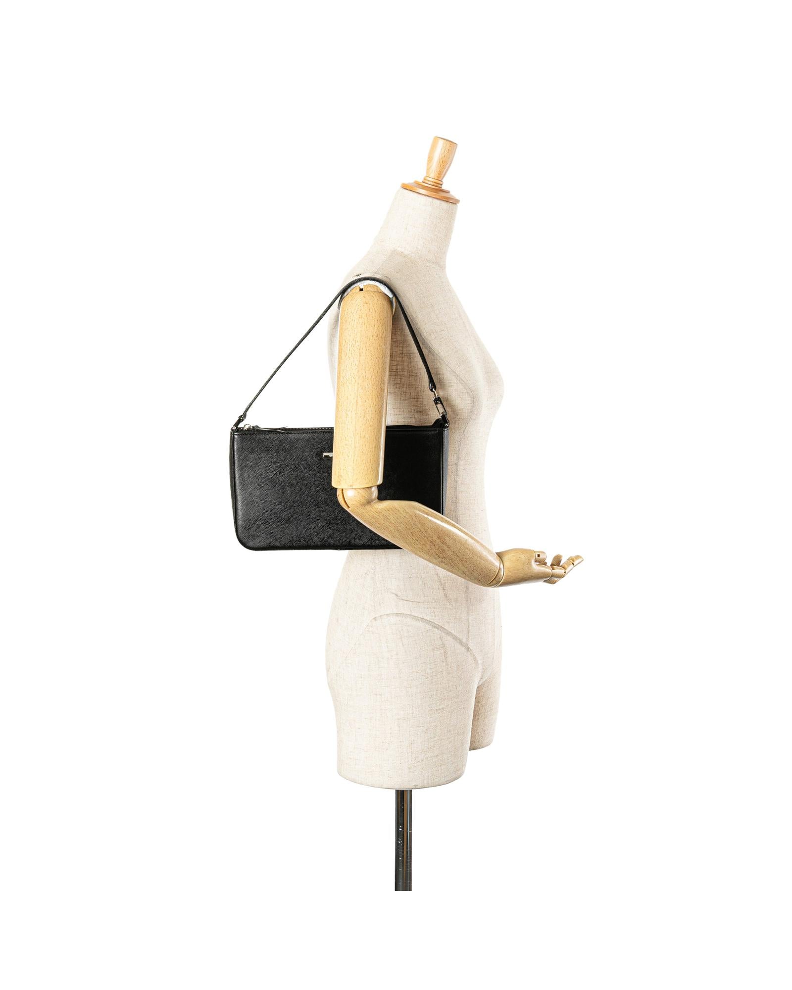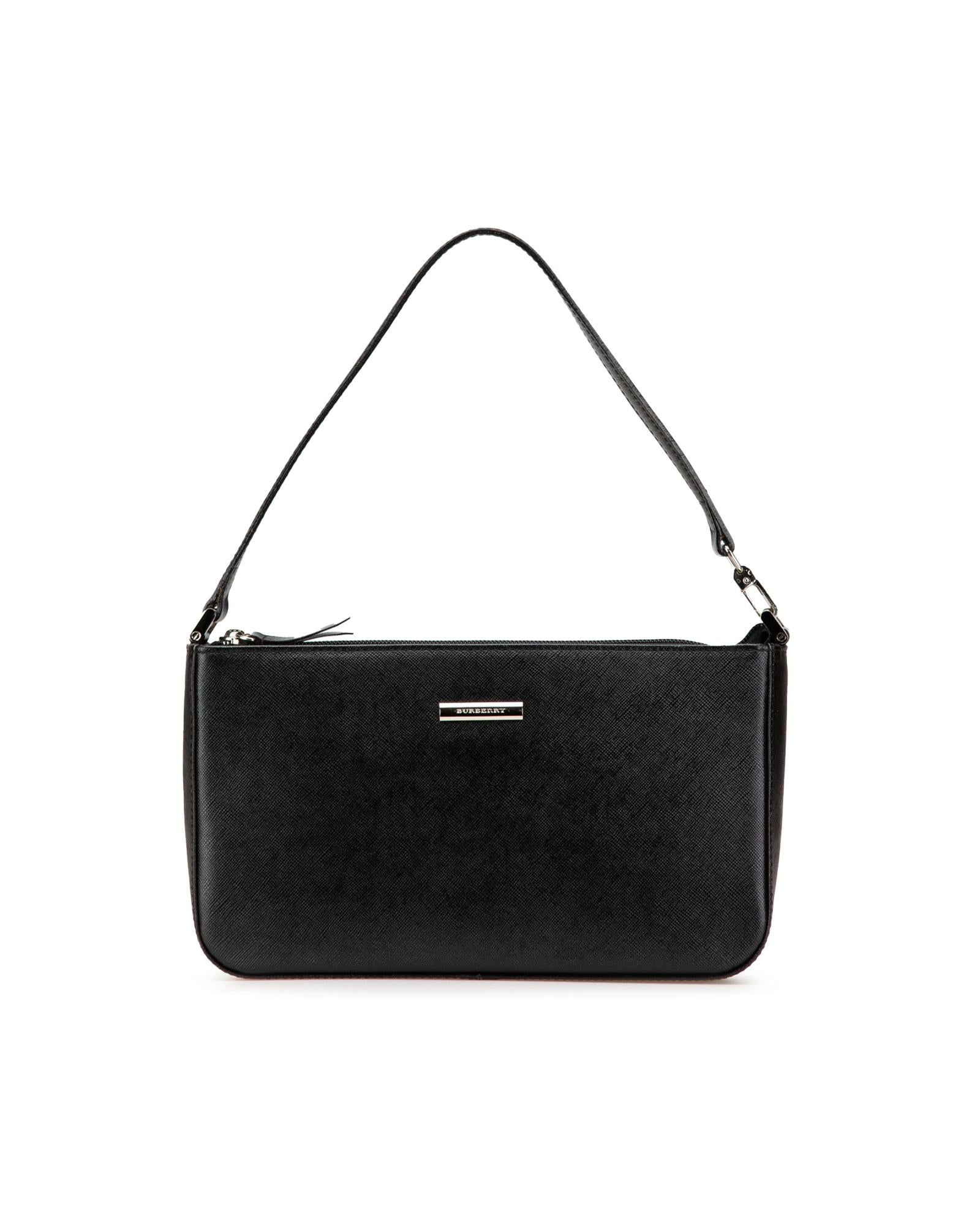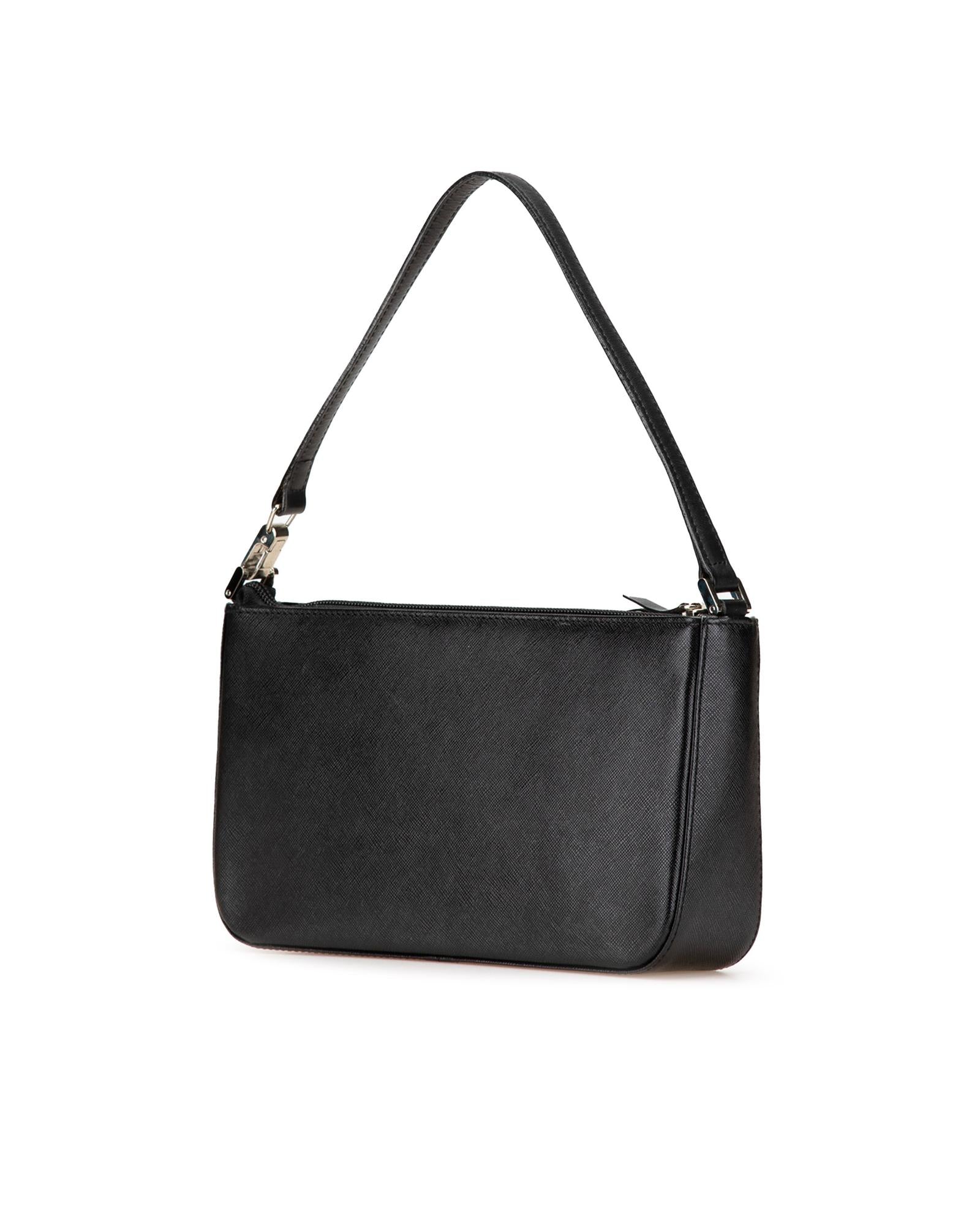 This shoulder bag features a leather body a flat leather strap a top zip closure and an interior zip pocket.
