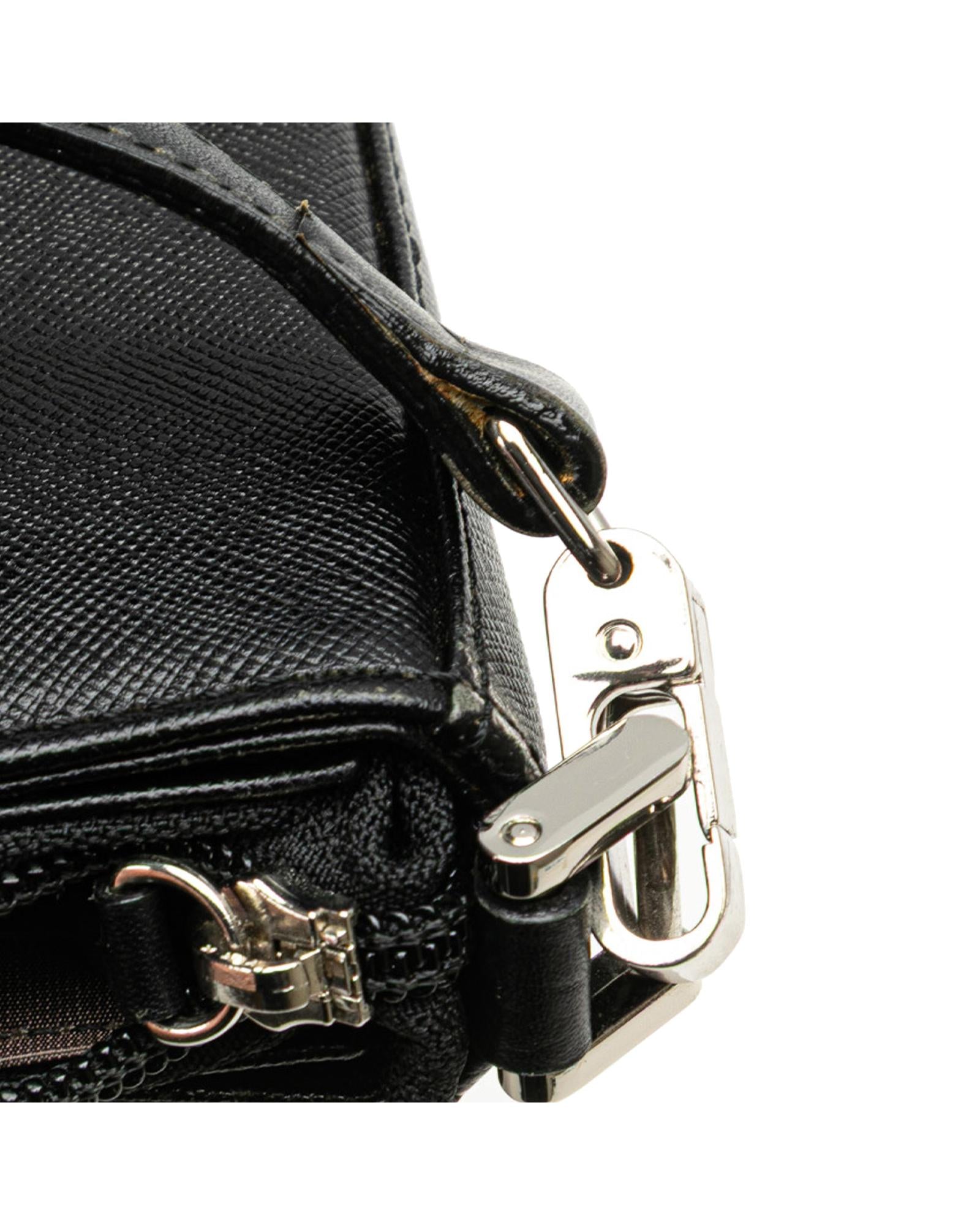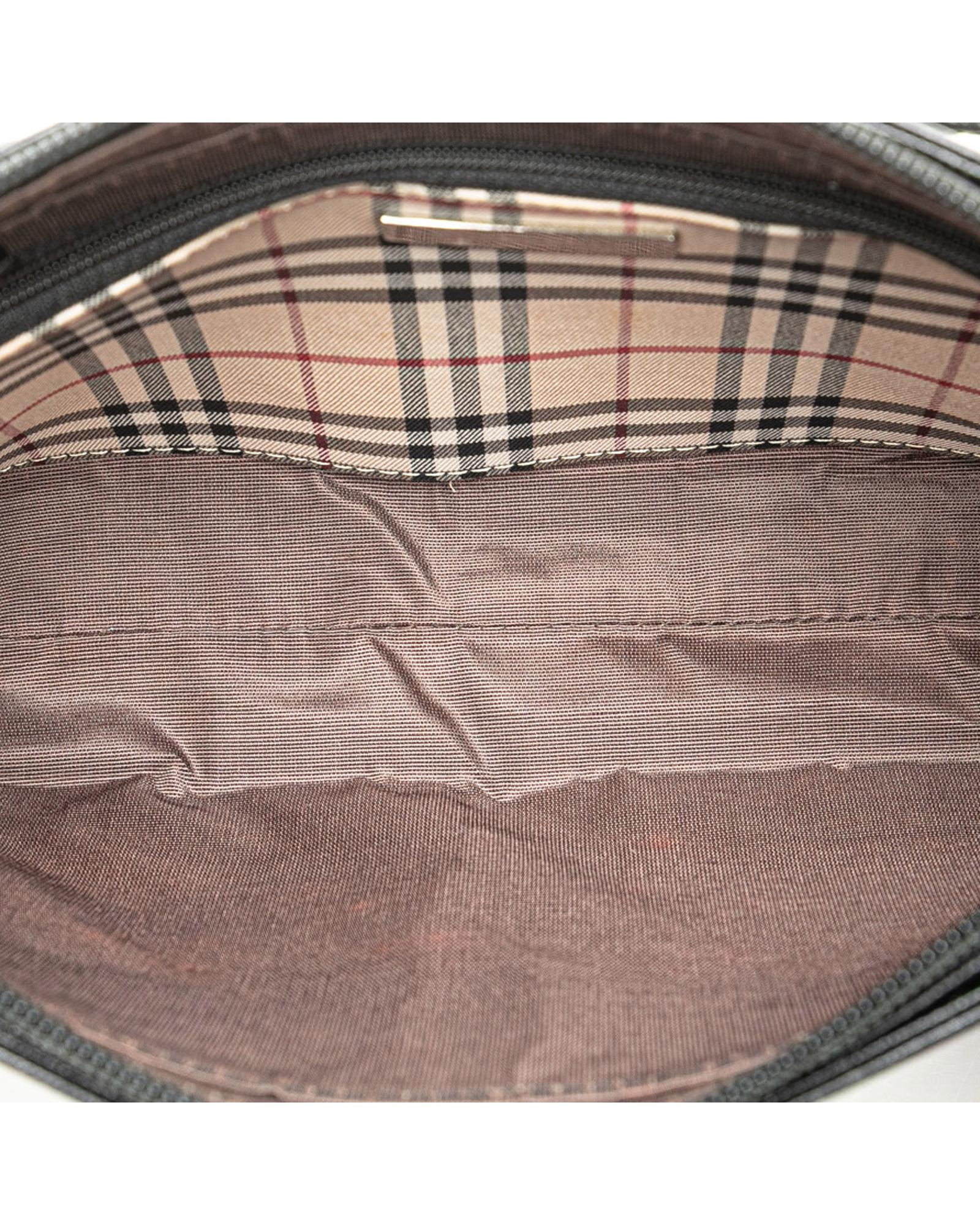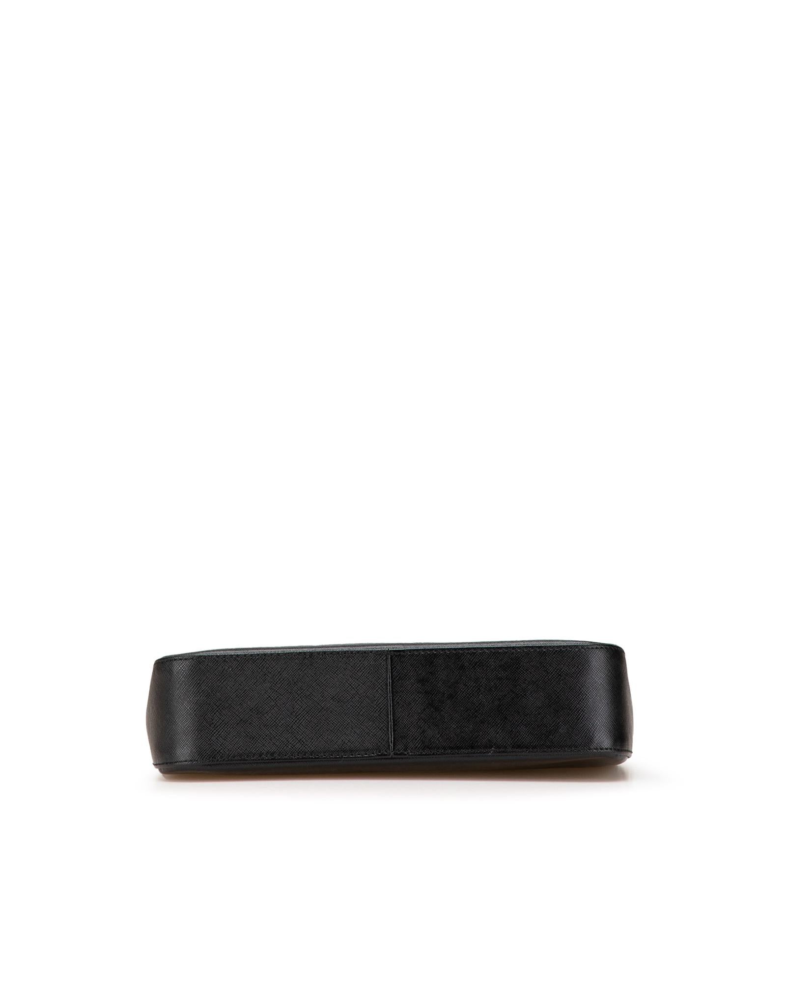 This shoulder bag features a leather body a flat leather strap a top zip closure and an interior zip pocket.