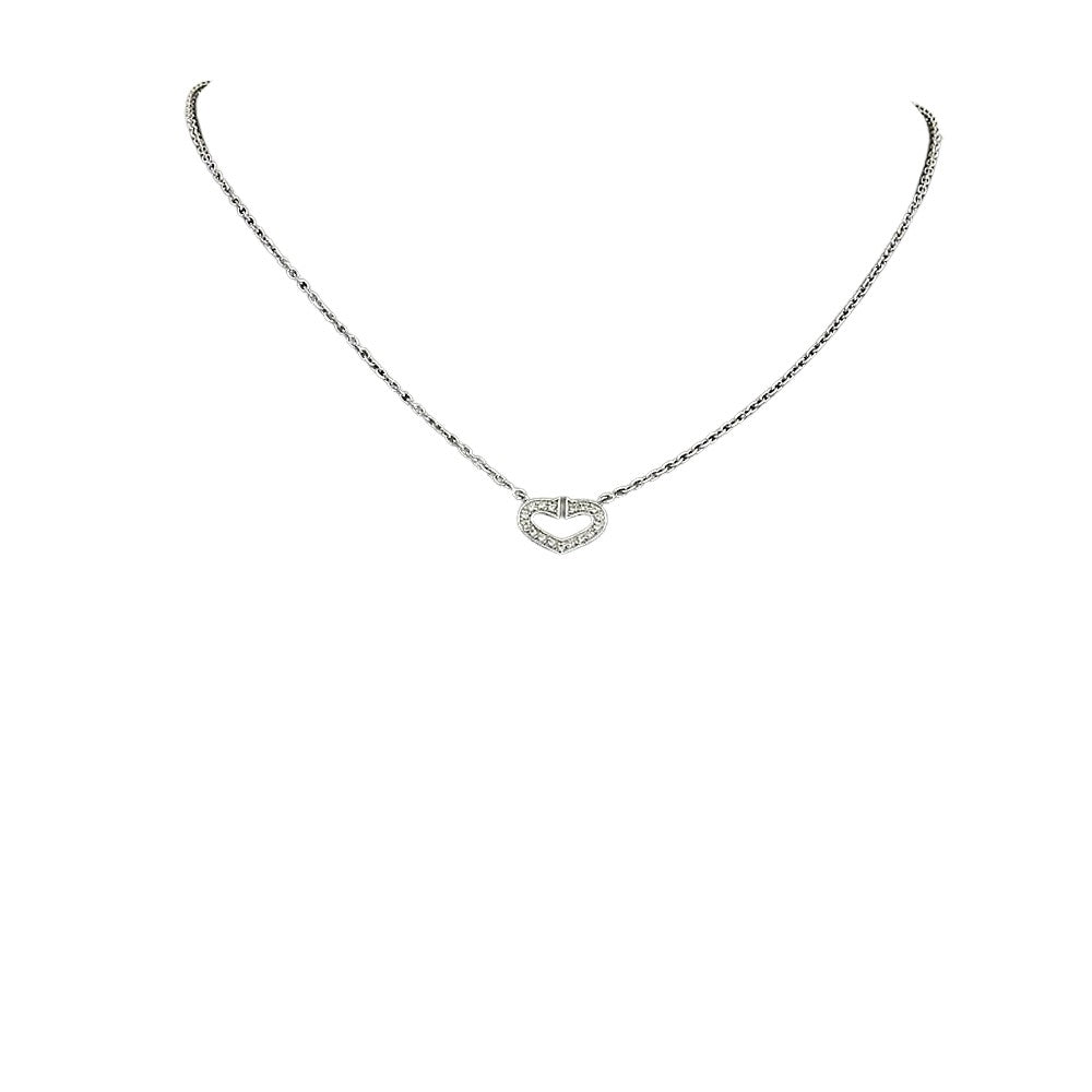 Brand: Cartier Model: Heart Color: Silver Material: White Gold Inclusions: Storage box outer box Dimensions: Neck circumference: 40.040.5cm Top W 12mm x H 9mm Weight 5.5g Serial number: BY20** Country of origin: France Condition: AB - good condition. Presenting an accessory of distinction this necklace finds its place in the world of CARTIER creations. Named the "C heart" it is designed with a feminine flair capturing the essence of timeless allure. Crafted from K18 white gold and adorned with the brilliance of diamonds this piece showcases a harmonious blend of luxury and elegance. Originating from the heritage of French craftsmanship it carries the legacy of artistry that the country is renowned for. Assessing its condition the metal components reveal delicate minute scratches reminiscent of its journey. Remarkably the necklace has been recently revitalized attaining a freshly finished appearance that seamlessly enhances its inherent charm. We recommend that you look at all the pictures before making your purchase to ensure that you are satisfied with the condition of the item.