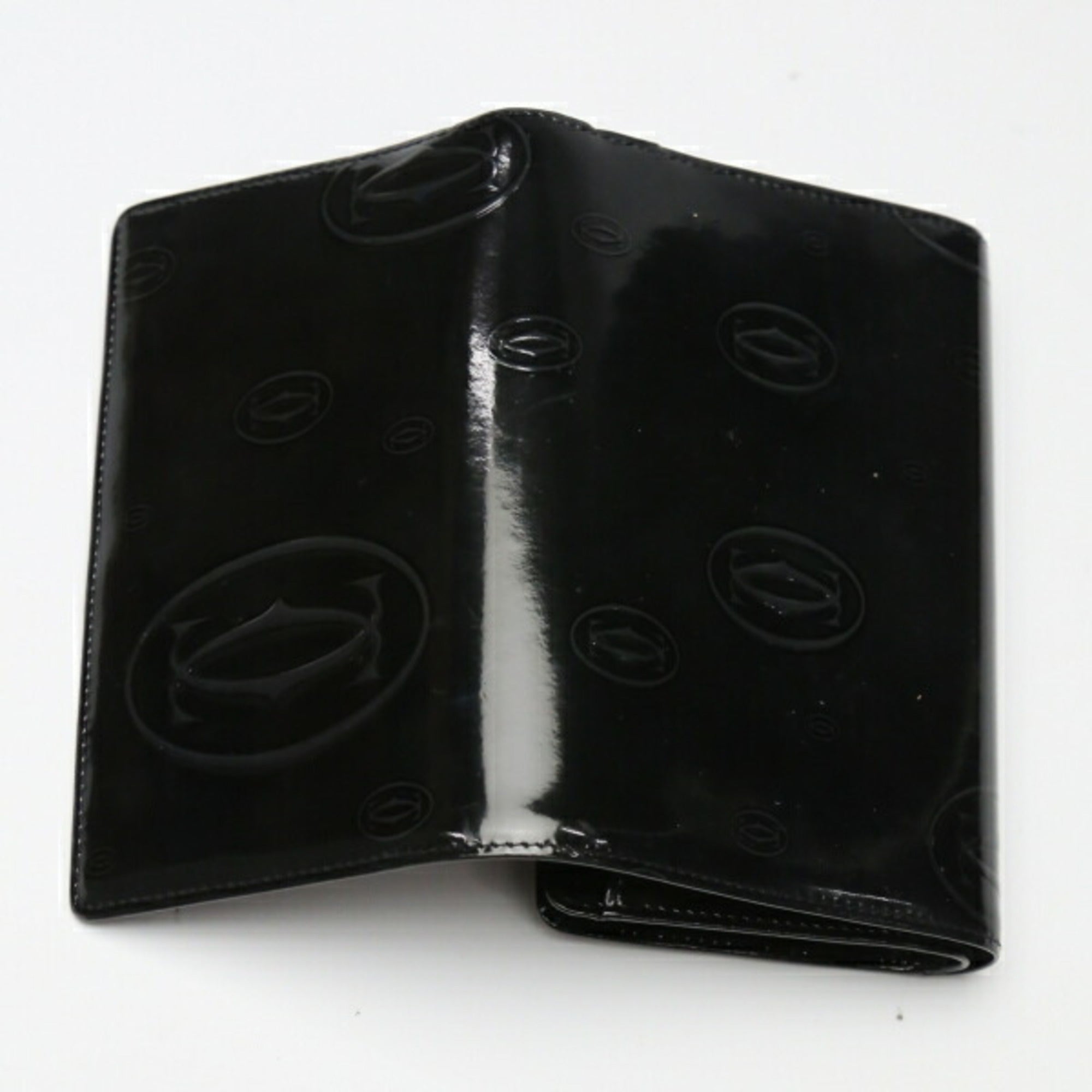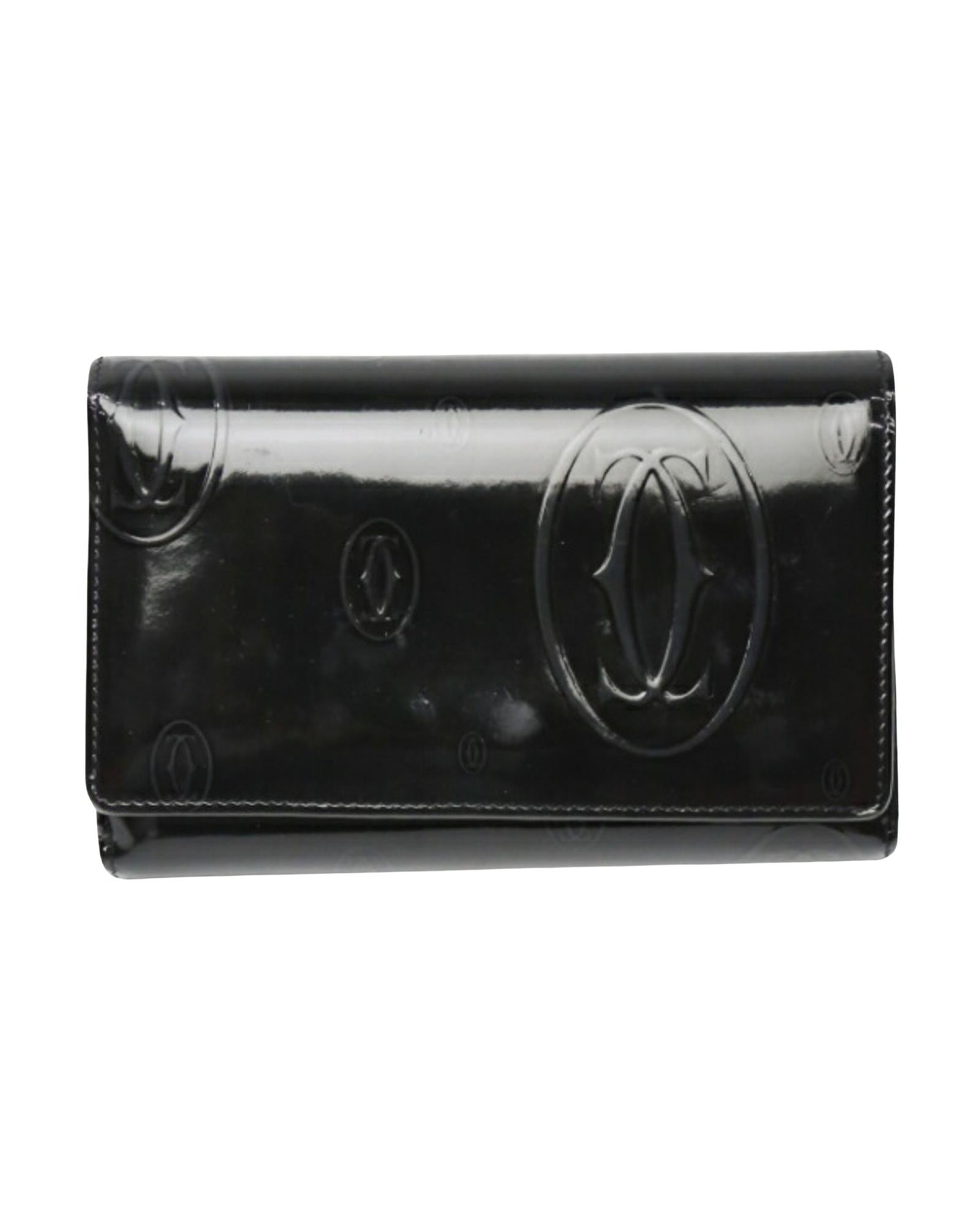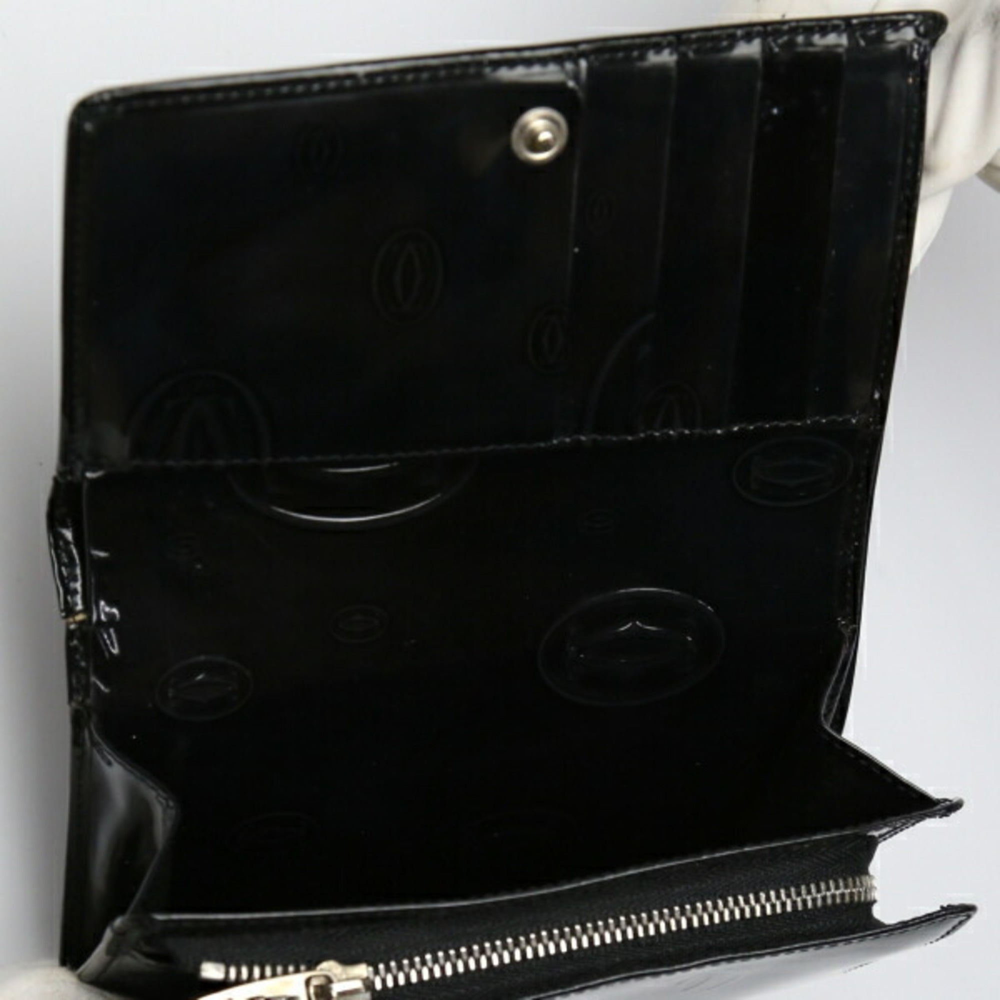 Brand: Cartier Model: Color: Black Material: Patent Leather Inclusions: / Dimensions: 9cm x 14.5cm x 2.5cm Serial number: NA Country of origin: France Condition: B - good condition. Introducing the Cartier bi-fold wallet a timeless accessory crafted for the modern woman who appreciates elegance and quality. Made from luxurious enamel leather in a sleek black hue this wallet embodies Cartier's renowned craftsmanship and sophistication. Despite slight scratches dirt and traces of use indicative of gentle wear this wallet maintains its impeccable allure. However please note slight stickiness on the inside which is a minor imperfection. Elevate your everyday essentials with the Cartier wallet a symbol of refined taste and timeless elegance. We recommend that you look at all the pictures before making your purchase to ensure that you are satisfied with the condition of the item.