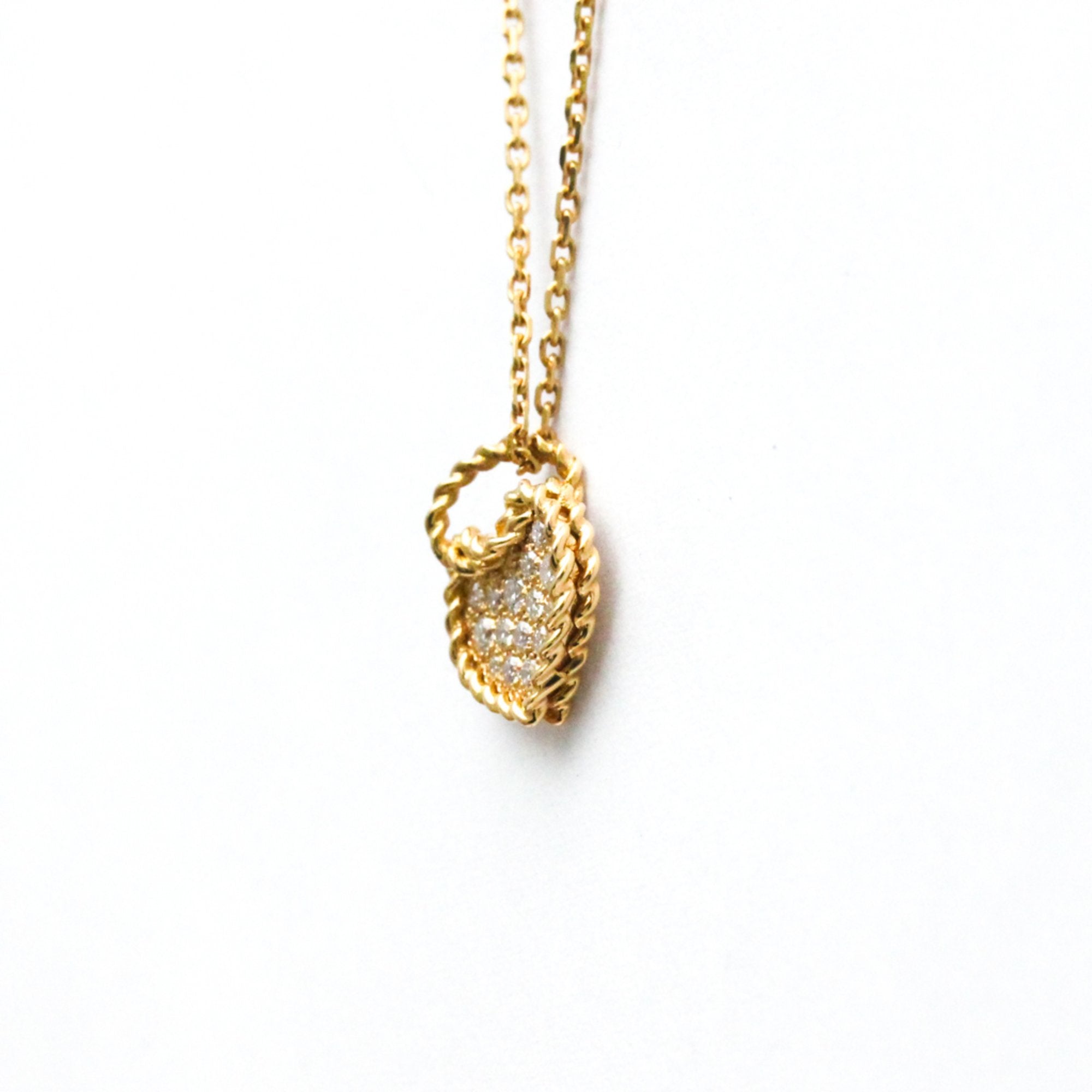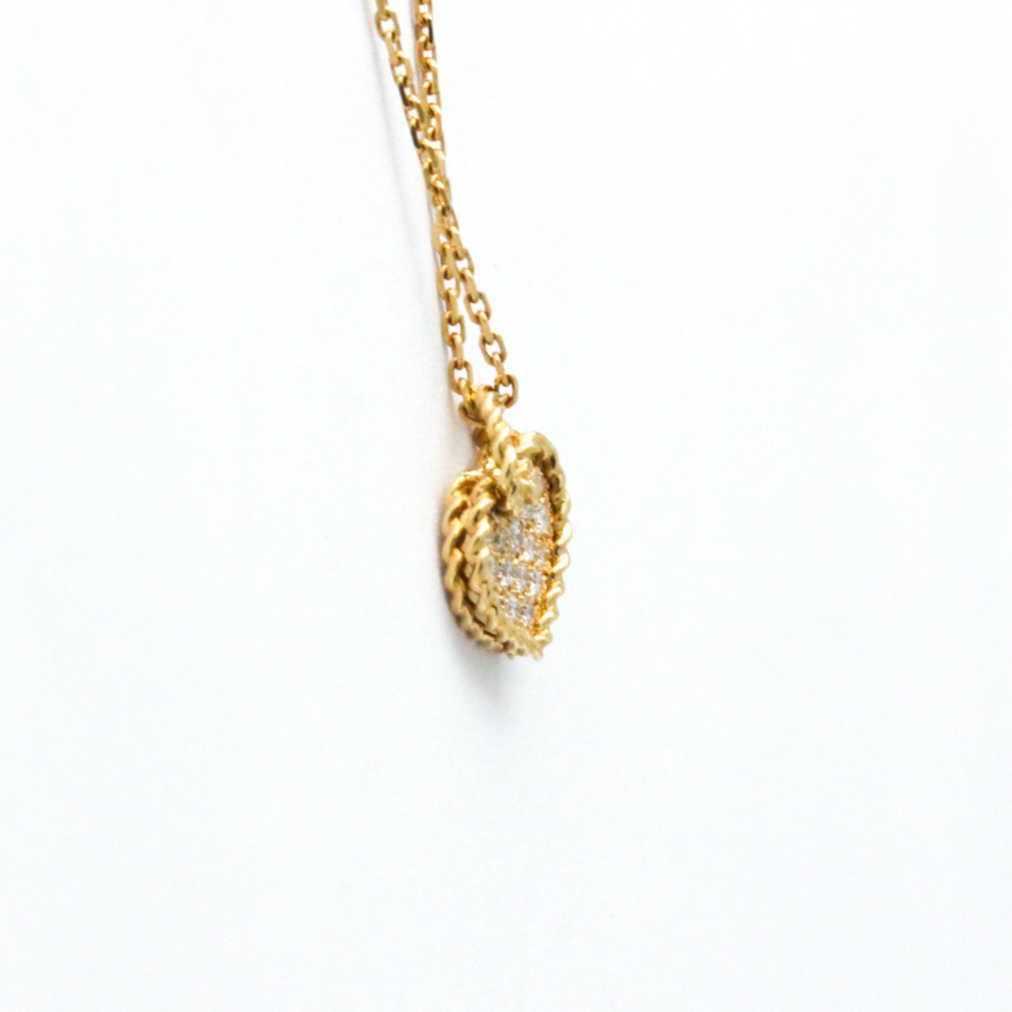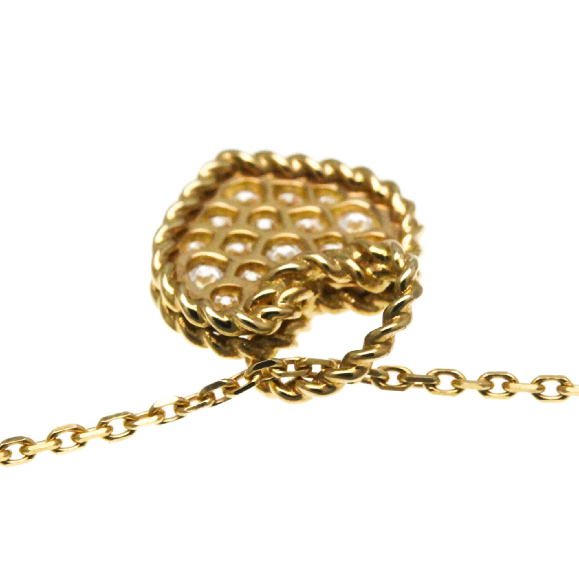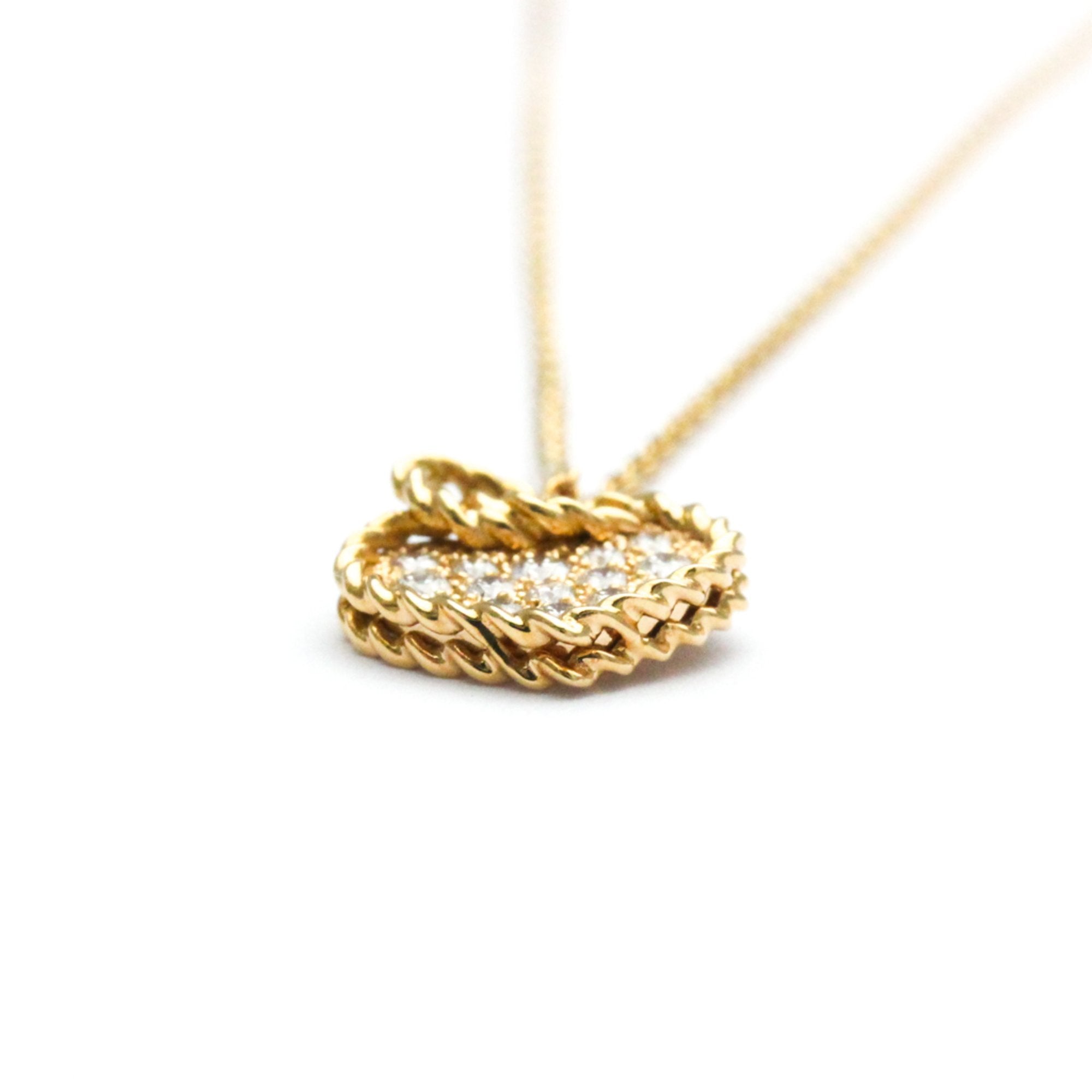 Cartier a world-famous brand is known for its distinctive and durable style. The Cartier Torta pendant necklace is an elegant fashion piece designed for women. Crafted in 18K rose gold this necklace is embellished with a diamond adding a touch of luxury and sophistication to any outfit.