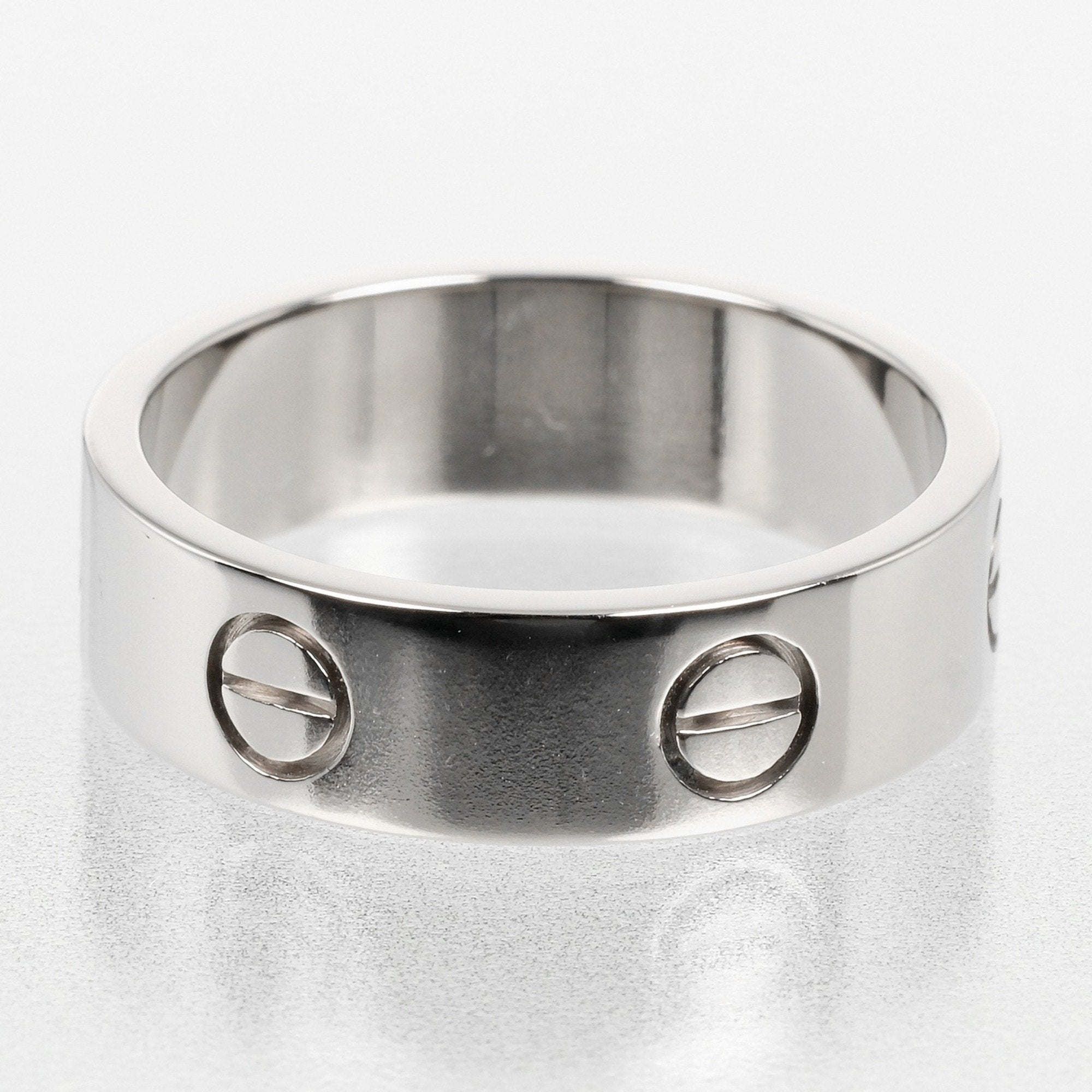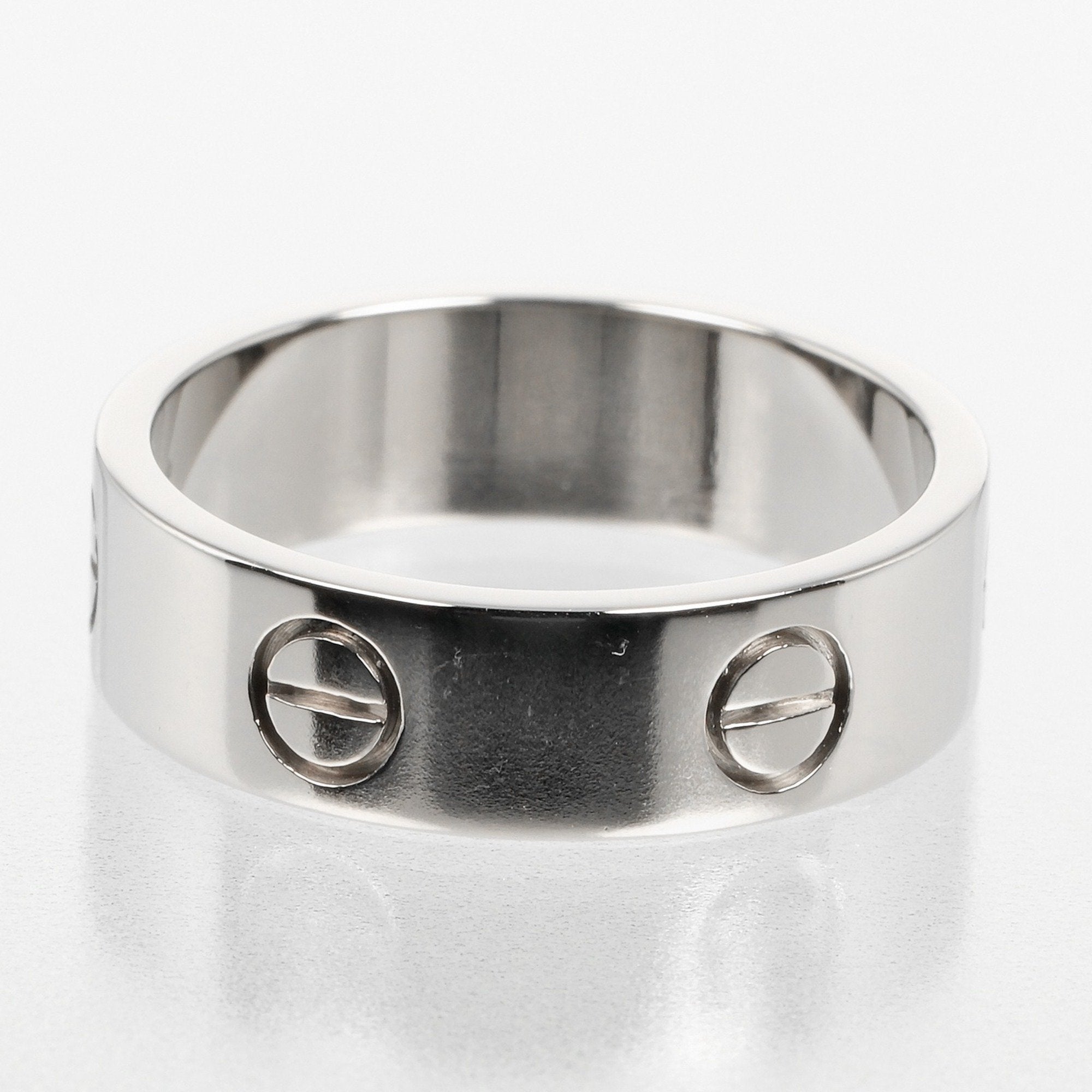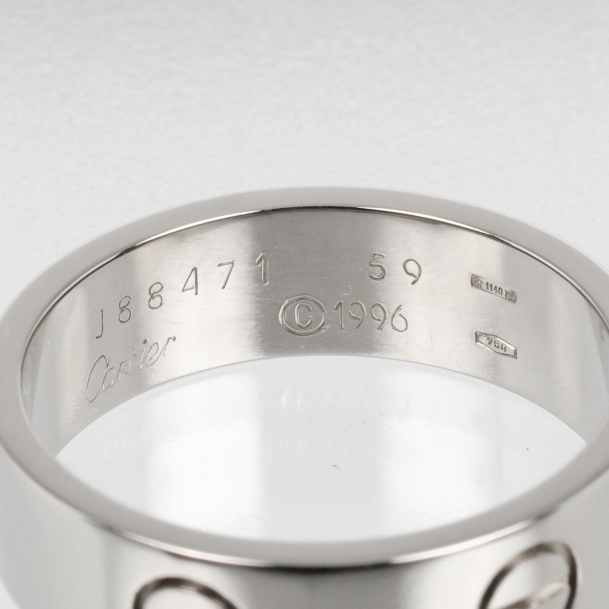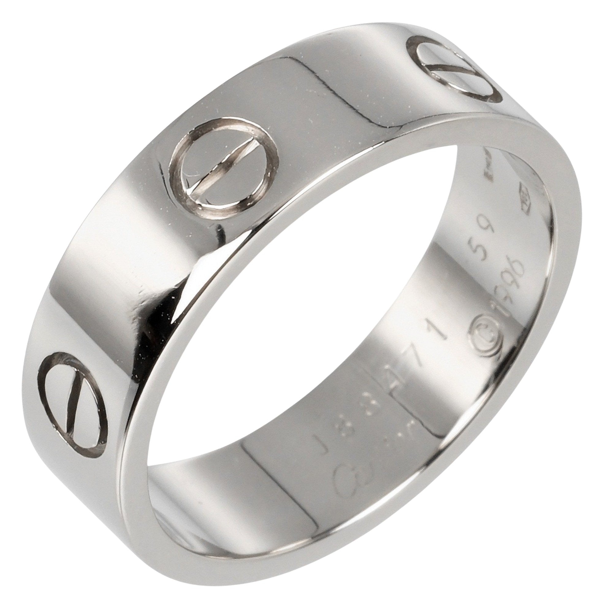 Brand: Cartier Model: Love Color: Silver Material: White Gold Inclusions: / Dimensions: Size: 59 Serial number: NA Country of origin: France Condition: AB - good condition. Cartier's Love ring embodies timeless elegance and ultimate refinement. Designed with precision and meticulous attention to detail it is the symbol of eternal love. Treat yourself to this masterpiece that combines sophistication and romance for every precious moment. The item generally shows light scratches and rubbing but this does not detract from its beauty. We recommend that you look at all the photos before making your purchase to ensure that you are satisfied with the condition of the item.