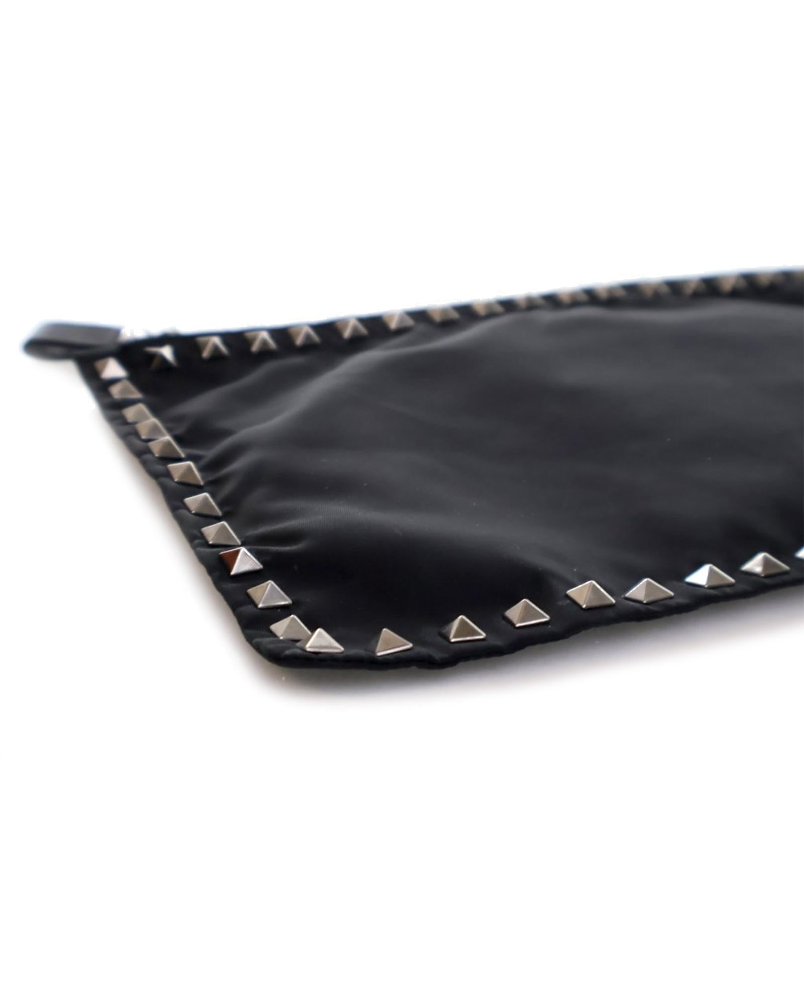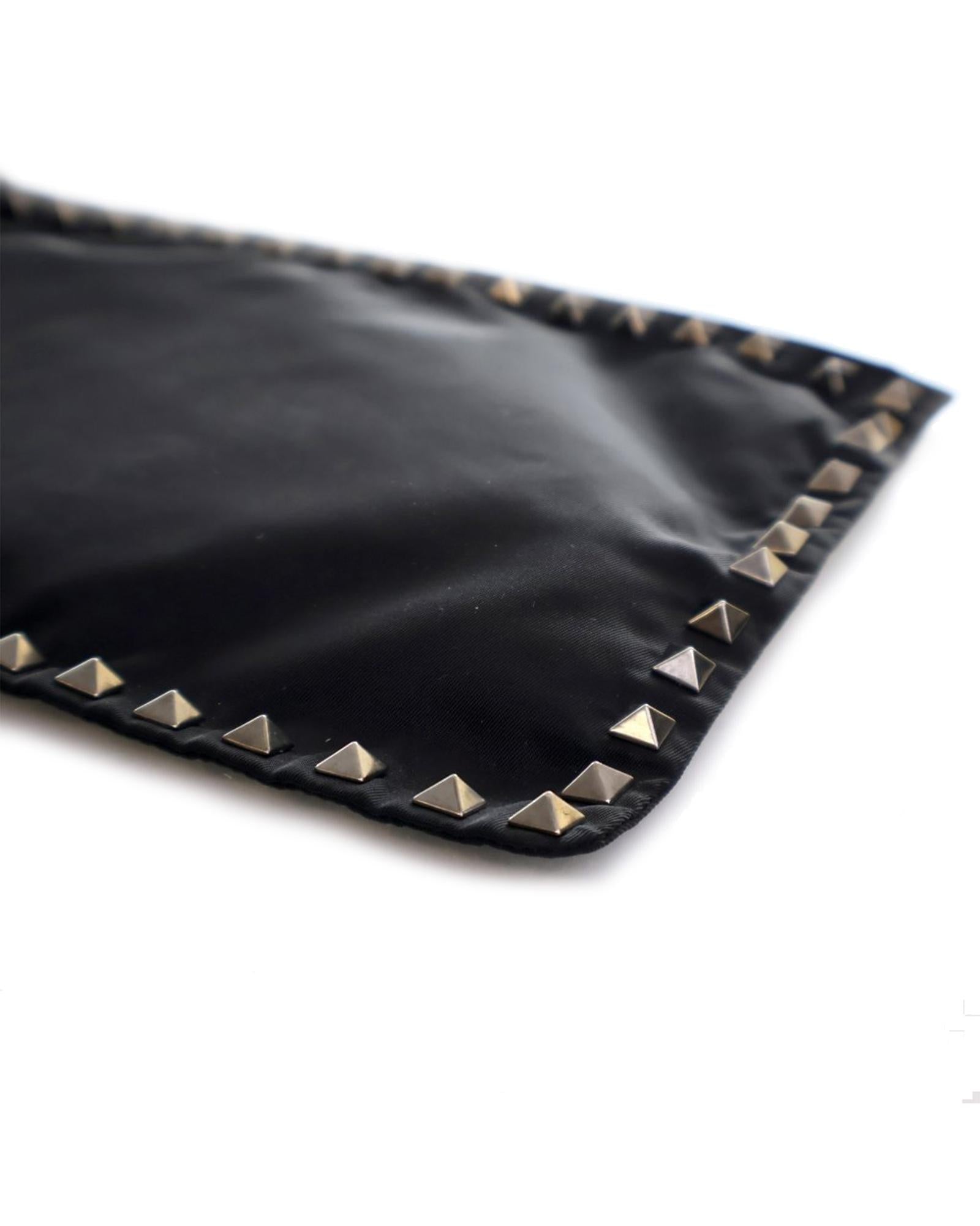 The Rockstud clutch bag features a nylon body with metal studs and a top zip closure.Brand: Valentino Vintage