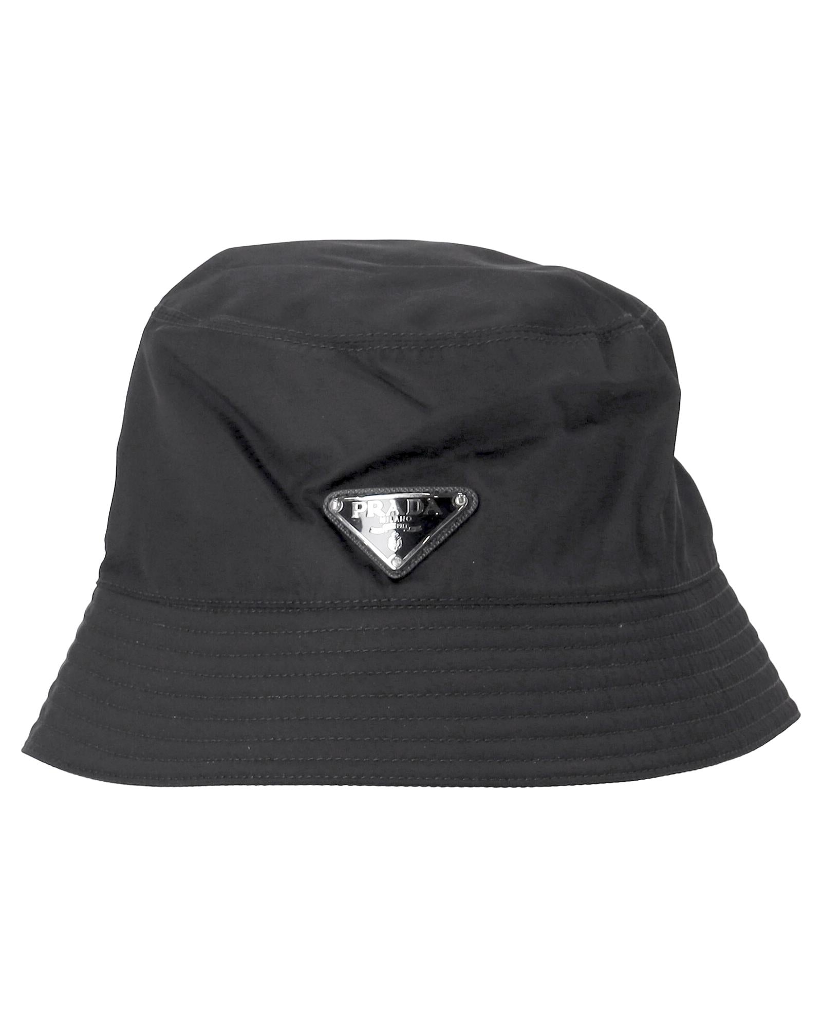 - Nylon Metal Triangle Logo Bucket Hat in Black Nylon