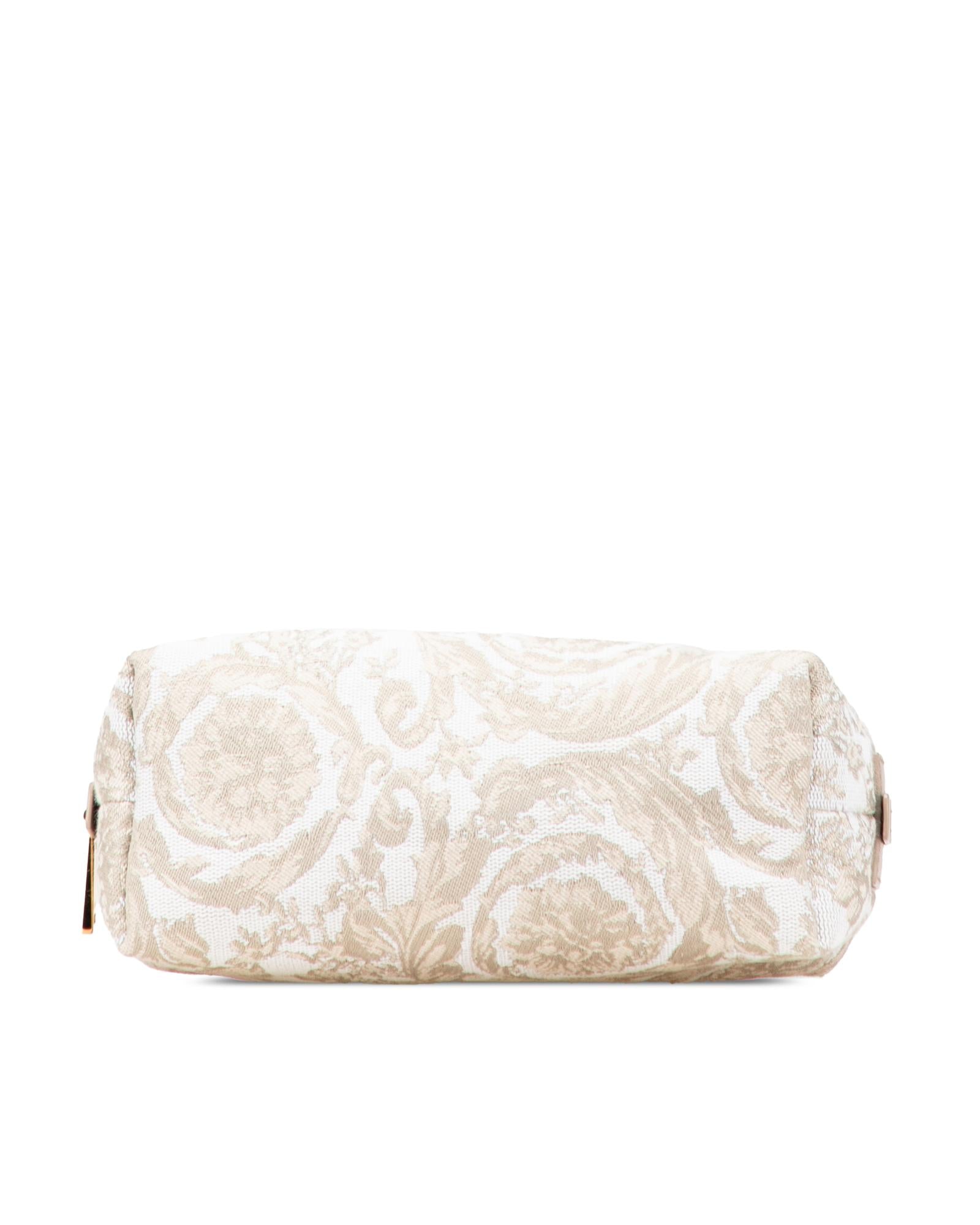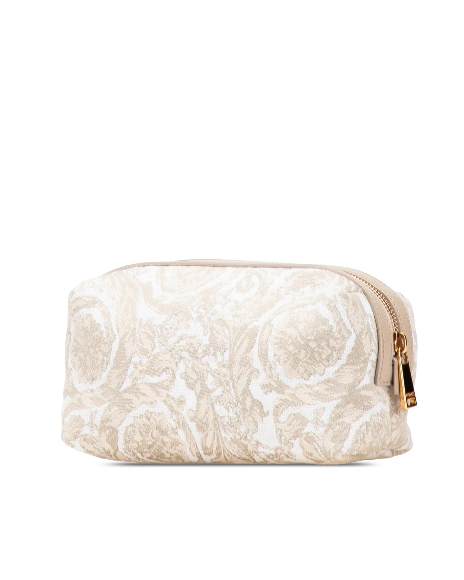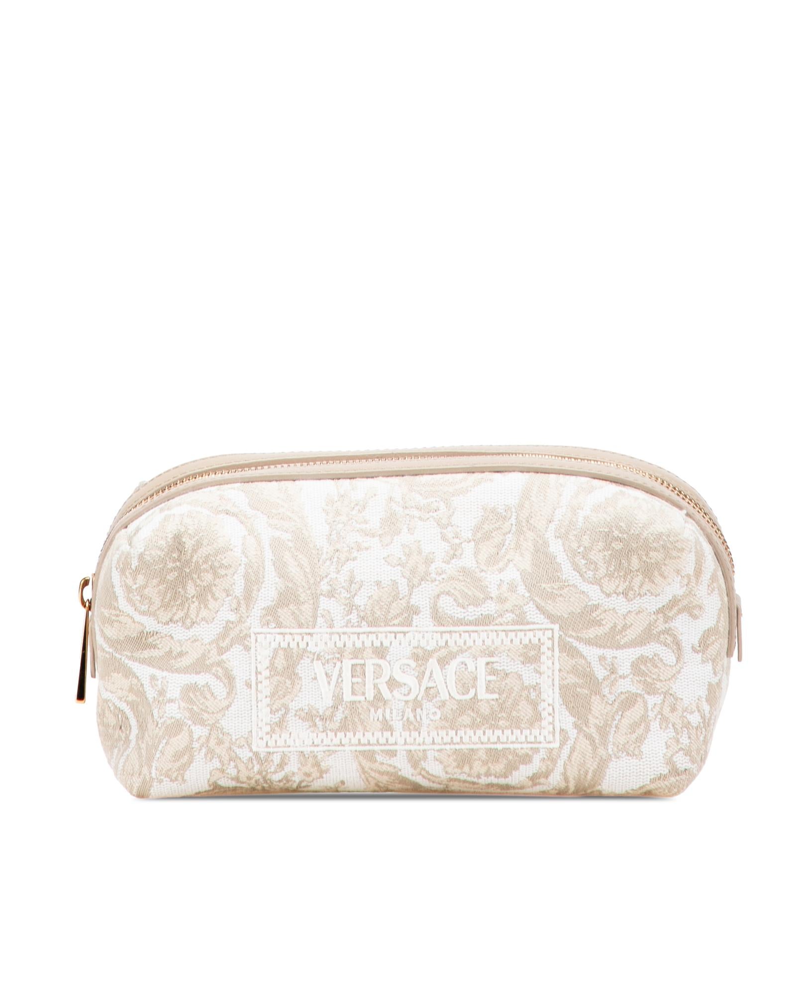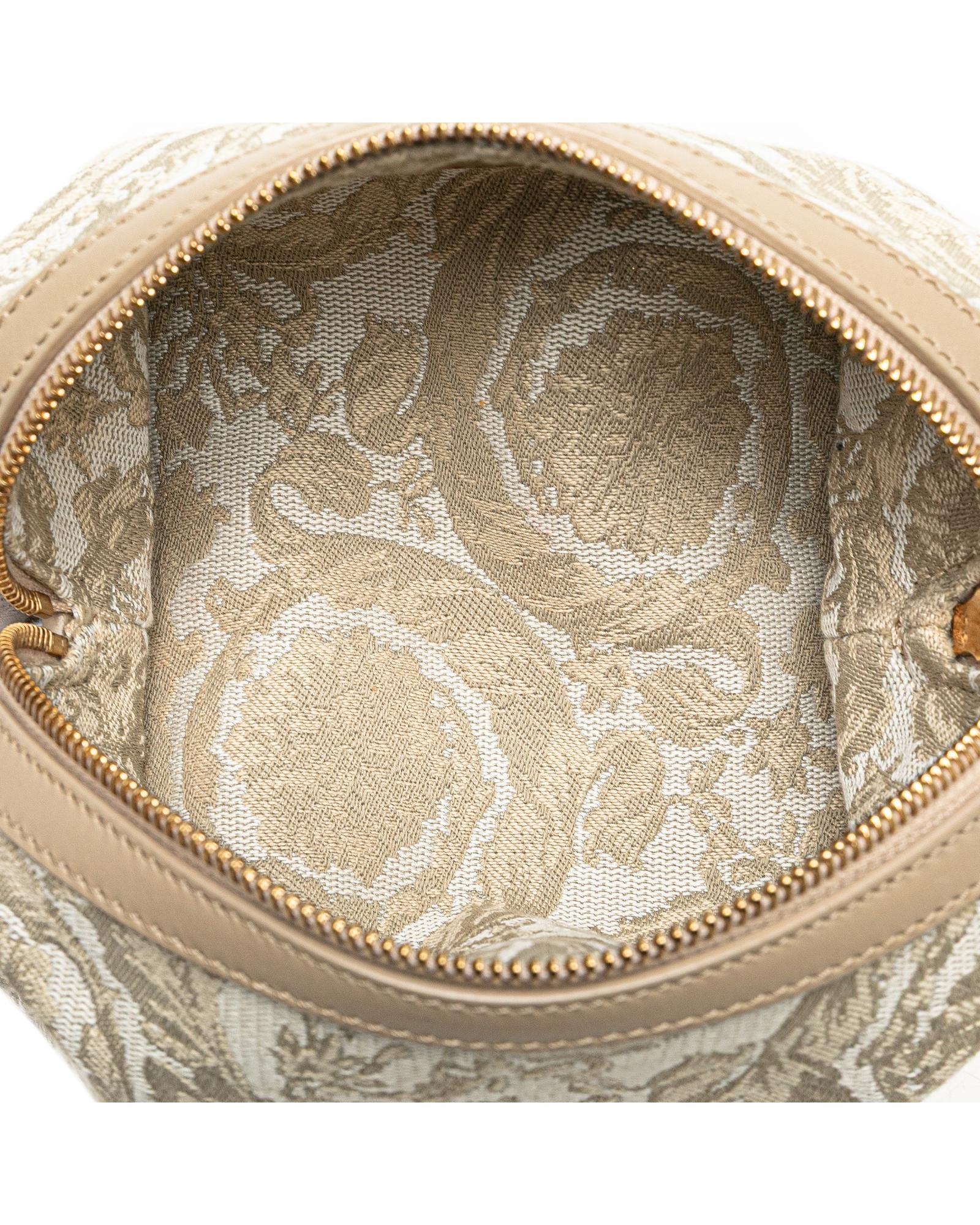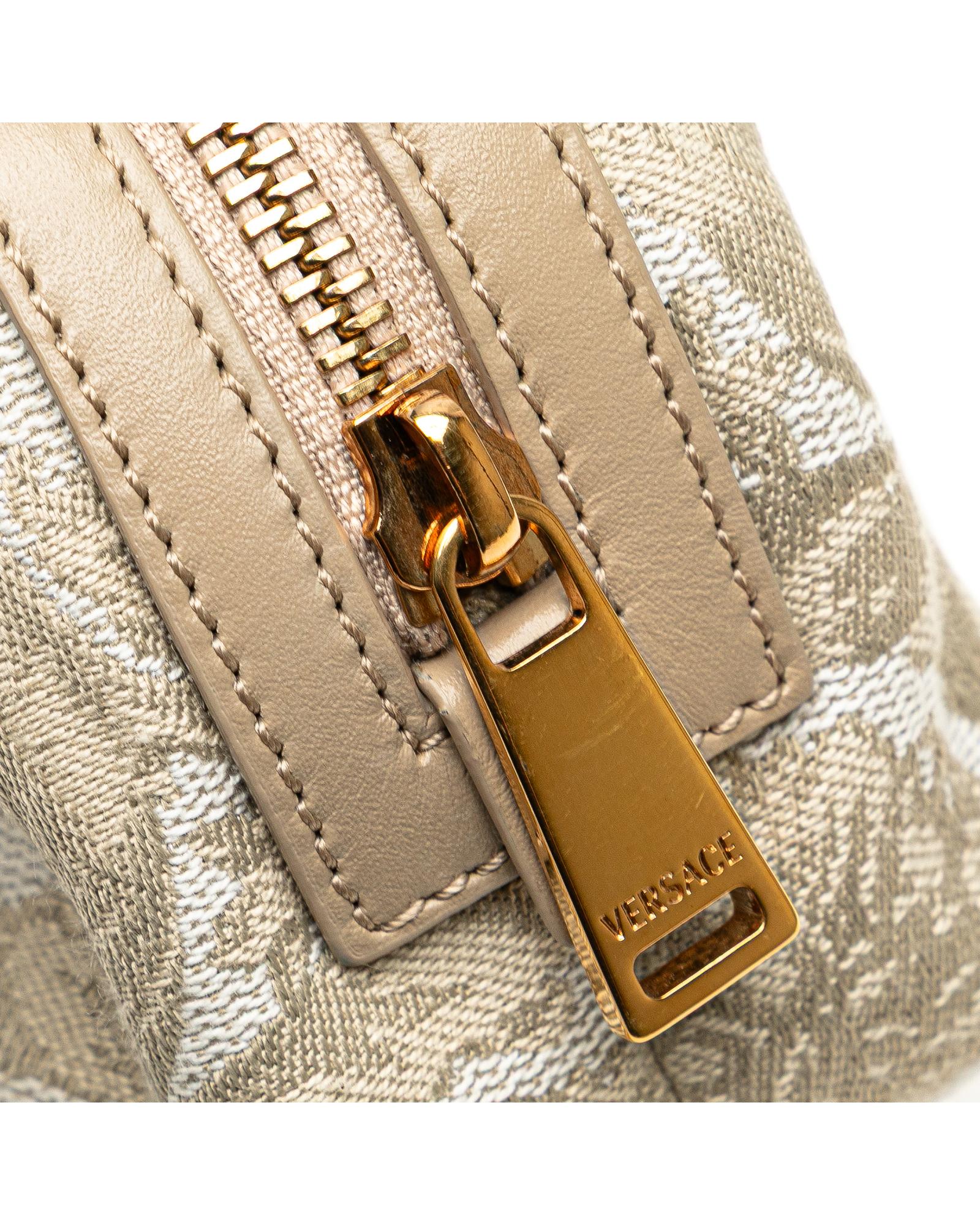This pouch features a canvas body with leather trim and a top zip closure.Brand: Versace Vintage